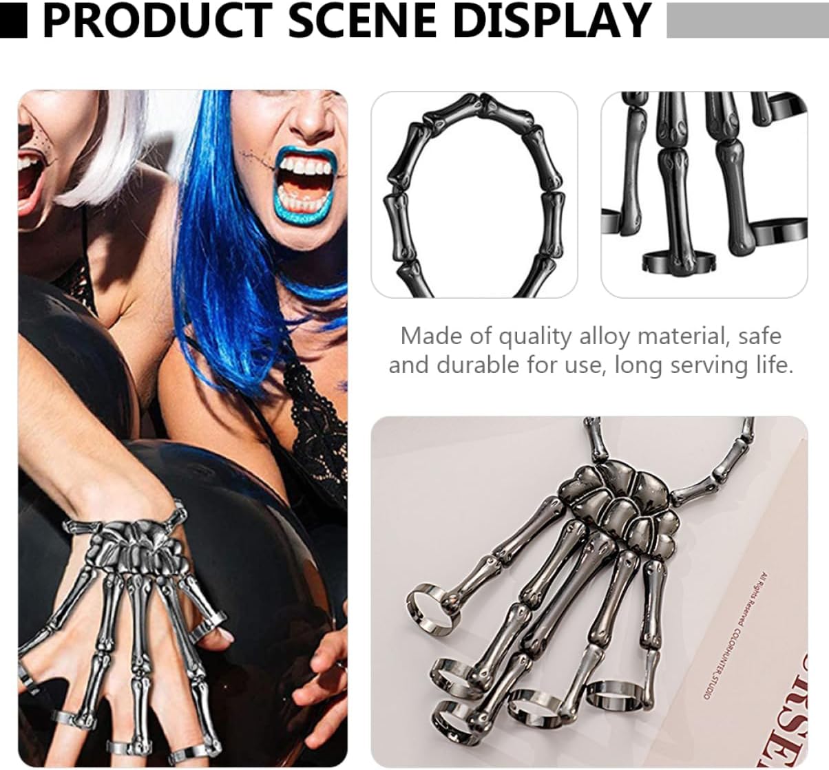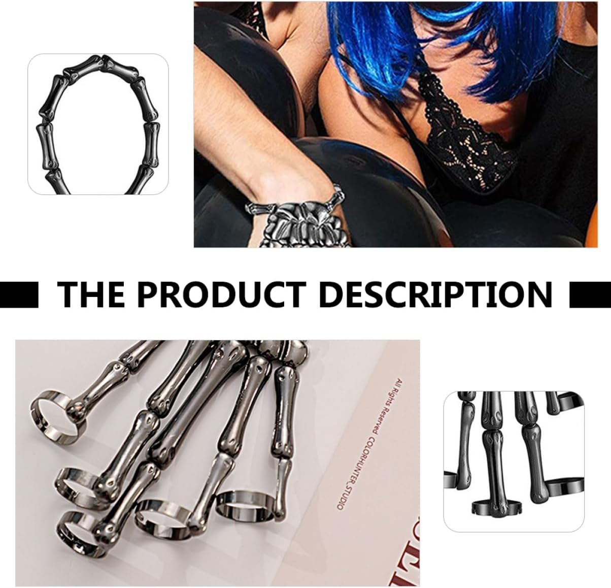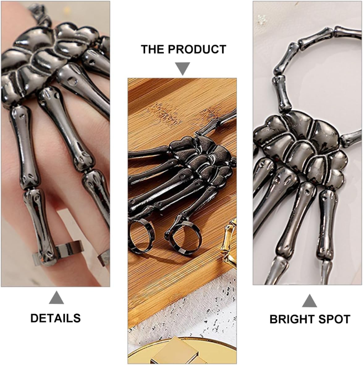 Ossa di scheletro gotico: artigianato eccellente, curato in ogni dettaglio per conferirgli un aspetto elegante e bello. Braccialetti da donna: braccialetto con articolazione dell'osso del dito del cranio: questo delicato braccialetto è semplice ma elegante con l'esclusivo design a forma di scheletro. Anelli per bracciale gotico-- ?[Servizio clienti] fornisce un servizio clienti 24 ore su 24, non esitare, il tuo è garantito. Dita scheletriche in metallo-- 【gioielli di Halloween】il design del braccialetto con le dita è speciale, la forma delle ossa delle mani fantasma, abbinata alla trama punk, emette una lucentezza alla luce, evidenziando il gusto personale. Catena per anello con teschio: puoi regalarla ai tuoi amici o familiari, dare loro una piccola sorpresa.