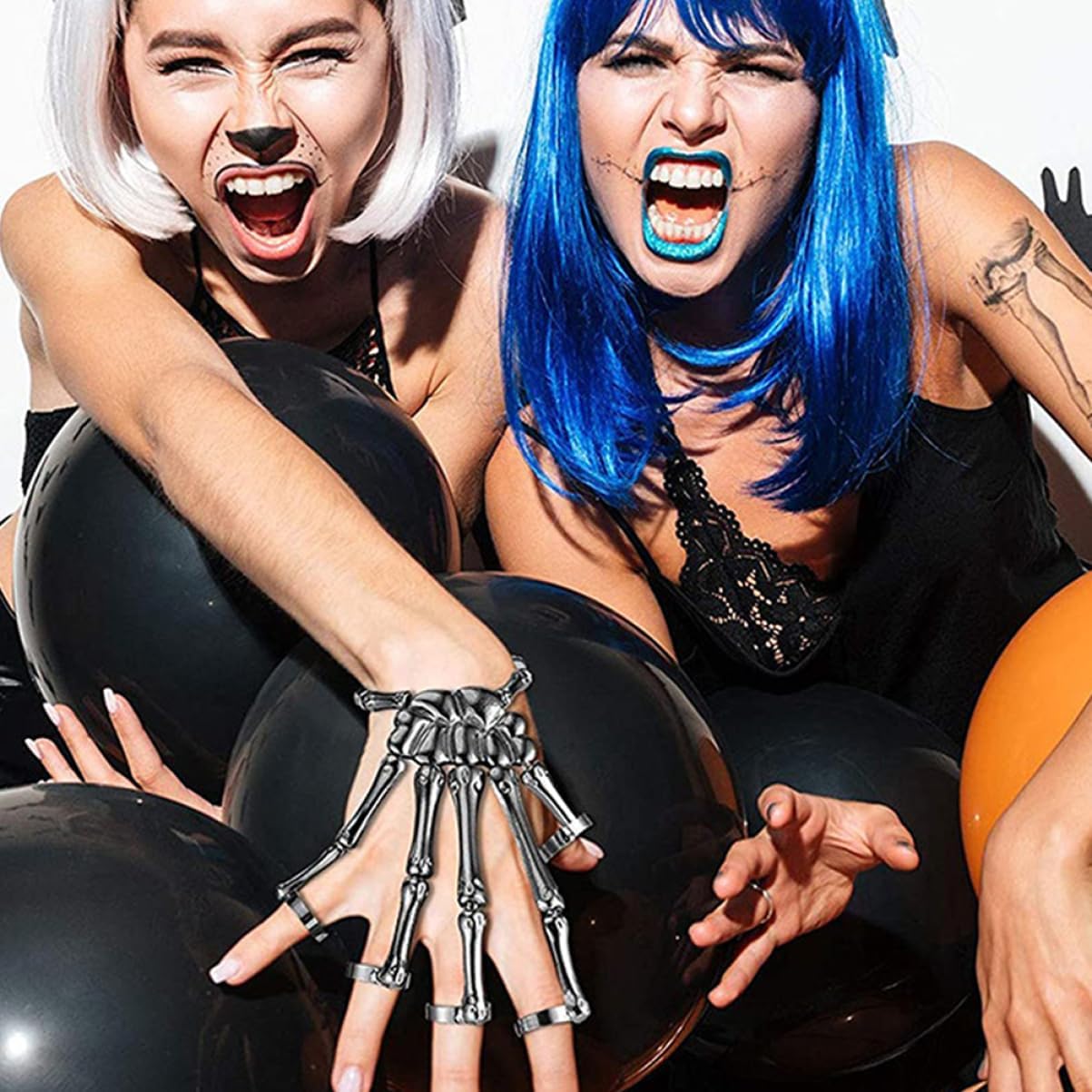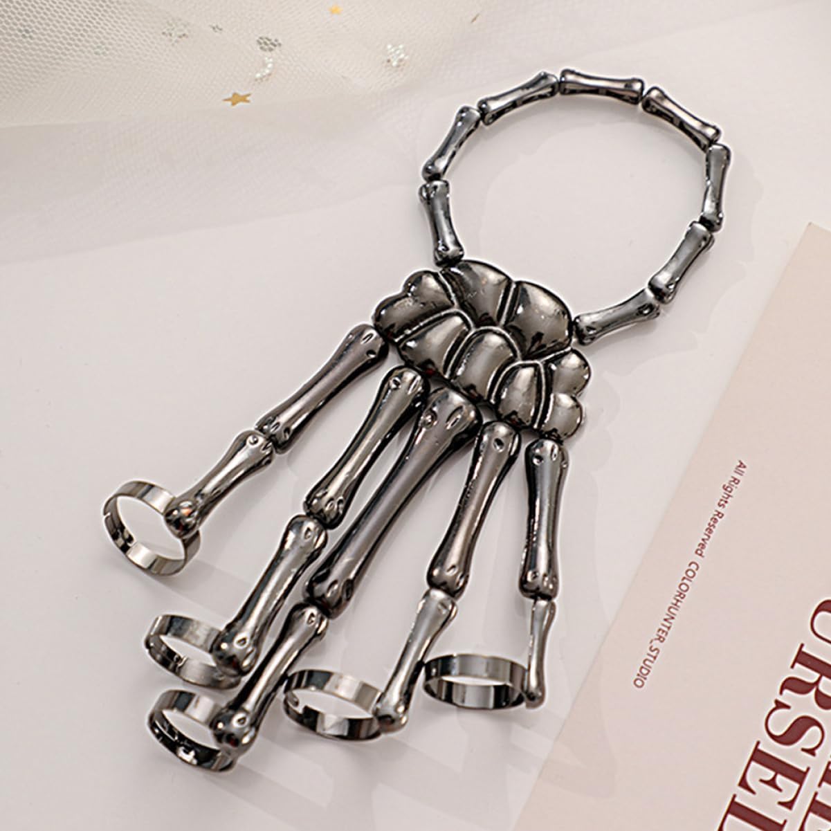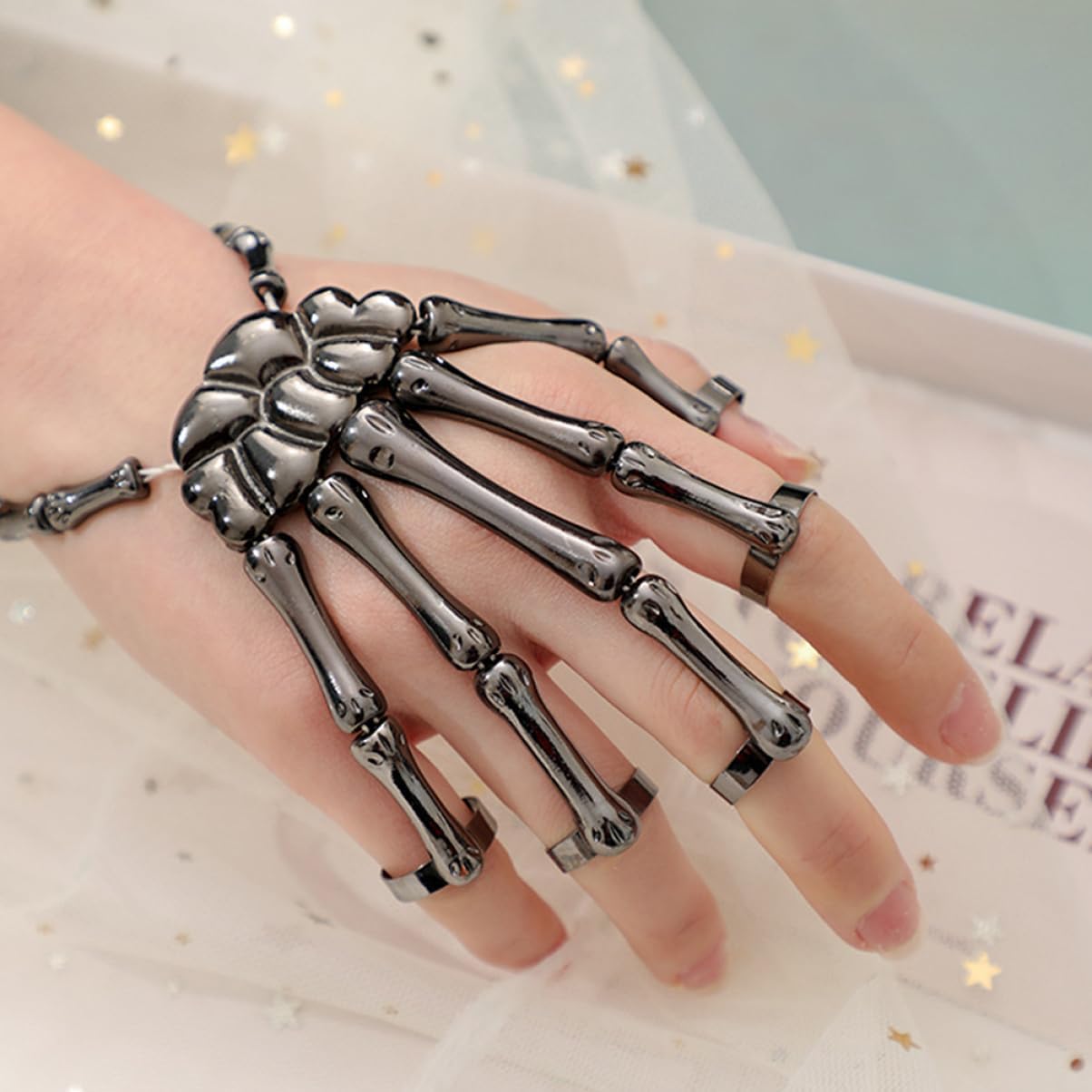 Ossa di scheletro gotico: artigianato eccellente, curato in ogni dettaglio per conferirgli un aspetto elegante e bello. Braccialetti da donna: braccialetto con articolazione dell'osso del dito del cranio: questo delicato braccialetto è semplice ma elegante con l'esclusivo design a forma di scheletro. Anelli per bracciale gotico-- ?[Servizio clienti] fornisce un servizio clienti 24 ore su 24, non esitare, il tuo è garantito. Dita scheletriche in metallo-- 【gioielli di Halloween】il design del braccialetto con le dita è speciale, la forma delle ossa delle mani fantasma, abbinata alla trama punk, emette una lucentezza alla luce, evidenziando il gusto personale. Catena per anello con teschio: puoi regalarla ai tuoi amici o familiari, dare loro una piccola sorpresa.
