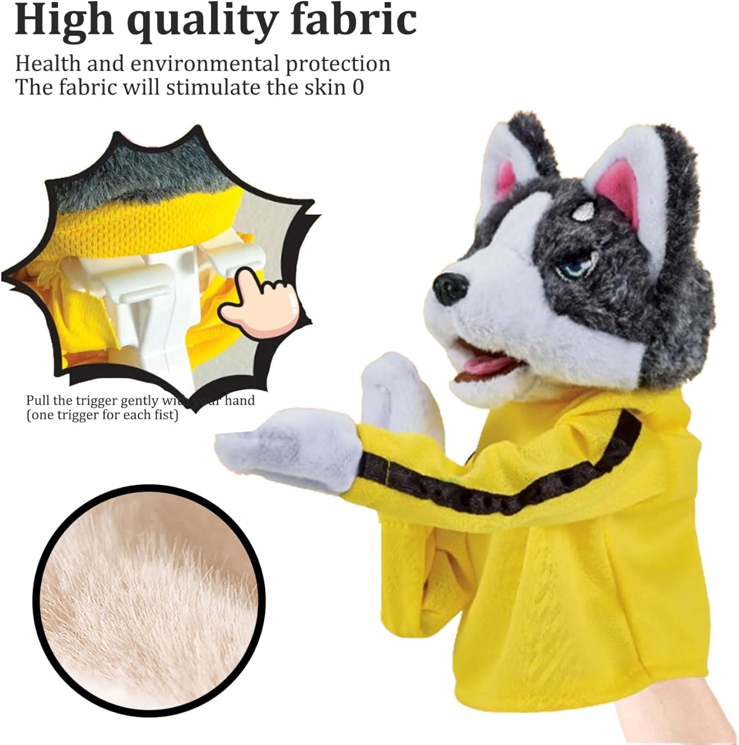 Giocattolo per animali Kung Fu: la marionetta per cani è il giocattolo versatile per eccellenza per tutte le età, offrendo vari stili di gioco che soddisfano le tue preferenze..Se cerchi divertimento, relax, questo burattino è il tuo punto di riferimento..Incoraggia i giochi di gruppo, fornendo interazioni sociali coinvolgenti. Emozionante gioco di boxe con cani: preparati per un'esperienza di gioco esaltante con il burattino a mano Kung Fu Dog!.Attraverso energiche azioni di Kung Fu, i giocatori possono impegnarsi in un emozionante gioco di boxe con cani, sfidandosi a vicenda per mettere alla prova le proprie abilità in una competizione divertente e amichevole. Peluche di gioco interattivo: le marionette per cani offrono esperienze di gioco coinvolgenti..Questi pupazzi incoraggiano l'immaginazione e lo sviluppo delle abilità, permettendo ai bambini di esplorare la propria creatività mentre godono innumerevoli ore di intrattenimento con amici o familiari. Materiale peluche: realizzato in materiale peluche di qualità, il burattino per cani garantisce un ambiente morbido e confortevole per tutti..Il suo design lavabile consente una facile pulizia, rendendolo perfetto sia per bambini che per adulti. Utilizzo interattivo e divertente: la marionetta è dotata di mani mobili ed effetti sonori accattivanti, che consentono ai bambini di creare storie fantasiose durante il gioco..Mentre interagiscono con il burattino, migliorano le loro capacità di comunicazione e creatività, rendendola un'esperienza divertente ed educativa.