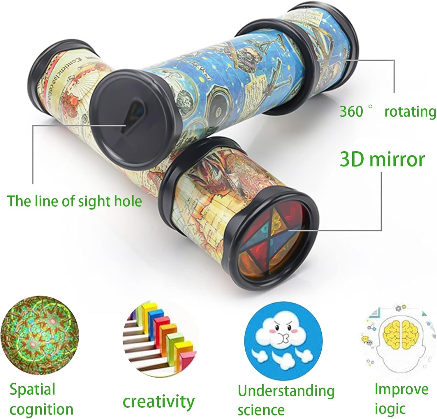 Materiale di alta qualità:Il corpo del caleidoscopio è realizzato in pannello di cartone duro, trattamento opaco, liscio e senza sbavature, e non è facile da rompere. Divertente da giocare:Ruotando il caleidoscopio, puoi vedere il variegato scenario attraverso il buco, affascinante e creativo. Fatto per durare:Realizzato in stagno, il nostro caleidoscopio ha un rivestimento esterno resistente abbastanza robusto da sopportare il gioco quotidiano e che non arrugginirà nel lungo periodo. Giocattoli educativi:I giocattoli Kaleidoscope fanno sì che i bambini guardino il mondo in un modo nuovo e più artistico, ispirando la curiosità di kdi di esplorare il mondo. Regalo perfetto:Il giocattolo caleidoscopio può stimolare l'immaginazione e il pensiero logico dei bambini. Perfetto come regalo di compleanno, Natale o altri regali di festa per i bambini.