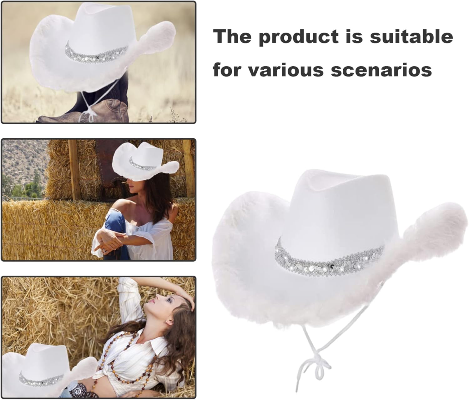 DESCRIZIONE: INTRODURE I NOSTRI TACCHI COWGIRL per le donne - l'accessorio perfetto per completare il tuo look ispirato alla cowgirl!.Sia che ti stia vestendo per una festa di eleganza, frequentando un festival o semplicemente stai cercando di aggiungere un tocco di talento occidentale al tuo outfit, questo soffice cappello da cowboy bianco brim è un must..Realizzato con attenzione ai dettagli, questo cappello è progettato per catturare l'essenza del selvaggio West..Il colore bianco aggiunge un tocco fresco ed elegante al tradizionale cappello da cowboy, mentre il soffice bordo crea un accento giocoso e accattivante..Il cappello è adornato con cuciture e abbellimenti intricati, aggiungendo un tocco di eleganza e autenticità al tuo ensemble Cowgirl..Realizzato con materiali di qualità, questo cappello offre comfort e durata..La costruzione robusta garantisce che mantenga la sua forma anche dopo un uso prolungato, permettendoti di indossarlo per più occasioni ed eventi.. FAINS:.. cappello da cowgirl.. -Color: bianco.. -materiale: tessuto.. -size: circa 40x33x14 cm/15.75x12.99x5.51 pollici.. NOTA: Misurazione manuale, si prega di consentire lievi errori sulla dimensione.. I colori possono esistere una leggera differenza a causa di schermi diversi.. pacchetto incluso 2 * Cappelli da cowgirl