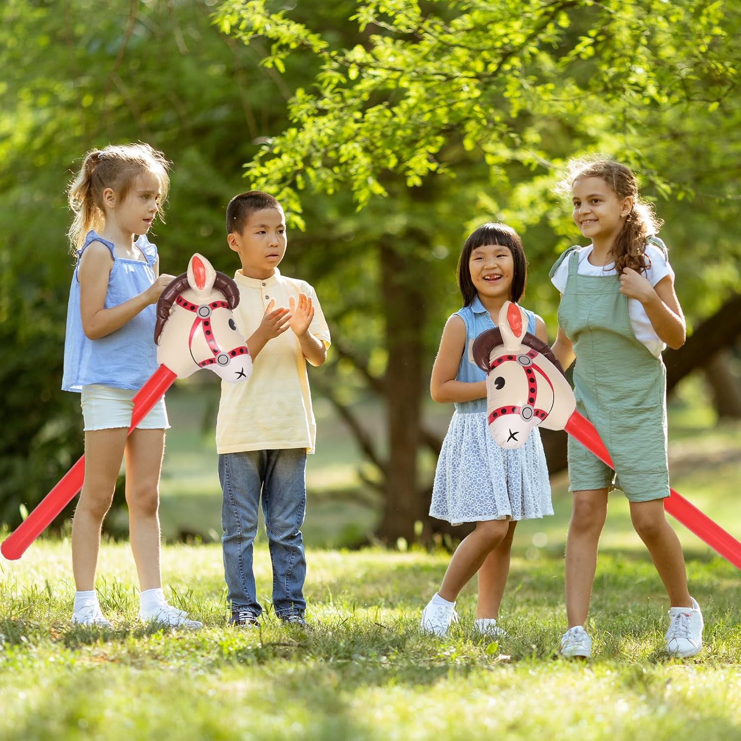 Set di cavalli per hobby: 2 cavalli per hobby, lunghi circa 95 cm, adatti al gioco quotidiano, alle decorazioni per feste di compleanno a tema cavalli, agli oggetti di scena per bomboniere, agli oggetti di scena per lo sport dei bambini e così via Materiale di alta qualità: Il cavallo di legno è realizzato in materiale sicuro e atossico, morbido e confortevole, di bella forma. Gli amici possono giocarci in tutta sicurezza e amarlo Design unico: il cavallo gonfiabile per bambini è progettato per assomigliare a un cavallo animale, il che lo rende una bella decorazione da esterno. Il cavallo per hobby può anche essere utilizzato come un vero e proprio cavallo gonfiabile, in modo che gli amici possano godere di più lo sport Facile da usare: gonfiare il cavallo gonfiabile con il suono attraverso la pompa d'aria, chiudere la valvola gonfiabile quando è pieno. Quando si sgonfia, aprire la valvola gonfiabile e premere il fondo del cavallo gonfiabile, dopo lo sgonfiaggio, lavare e asciugare per salvare, può essere riutilizzato Ampia applicazione: il cavallo di Troia è adatto a varie occasioni, come feste a tema cavallo, pony party, carnevale, Natale, feste di compleanno, incontri sportivi e così via. Il cavallo di Troia in legno darà un tocco di colore alla festa