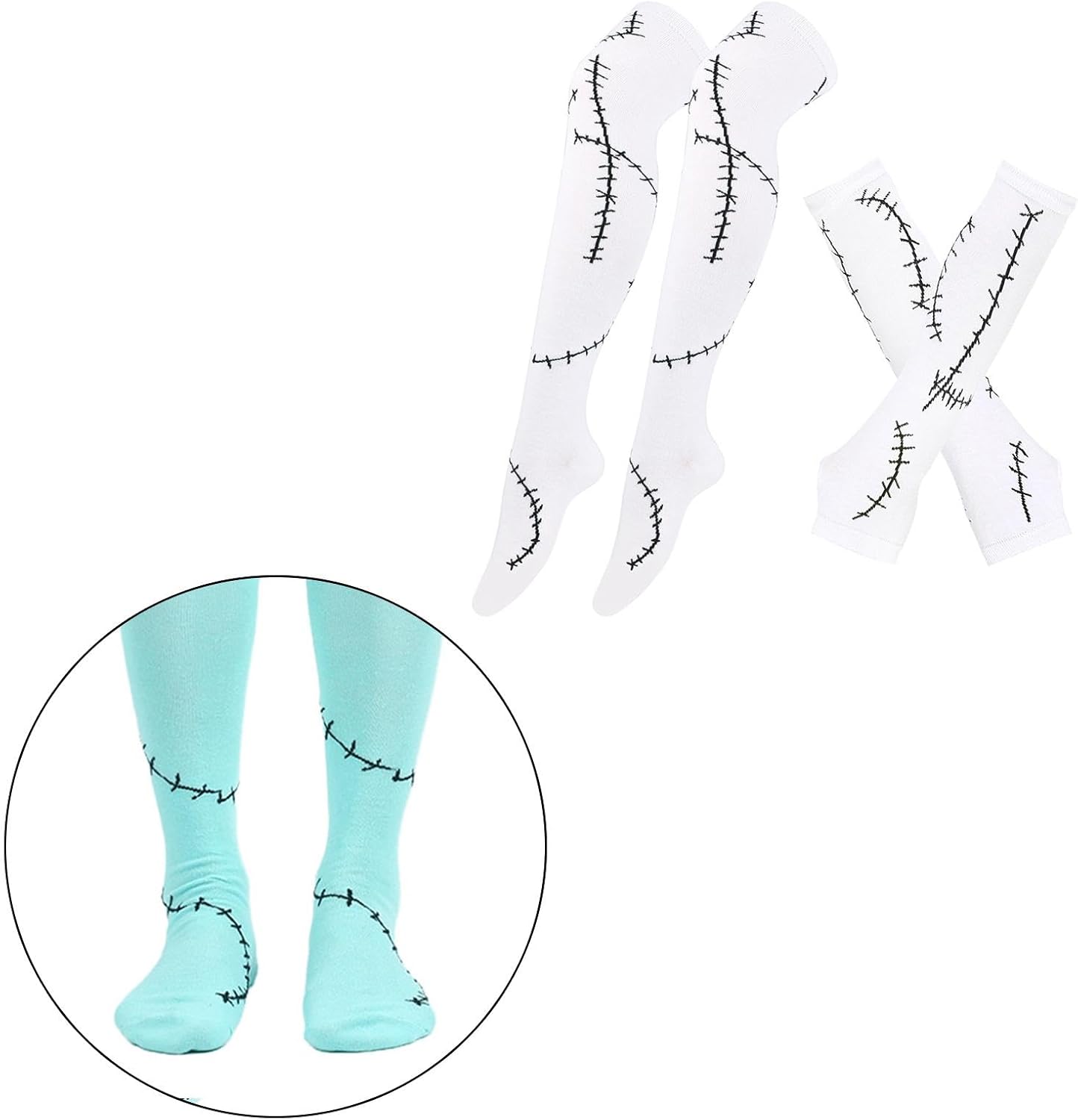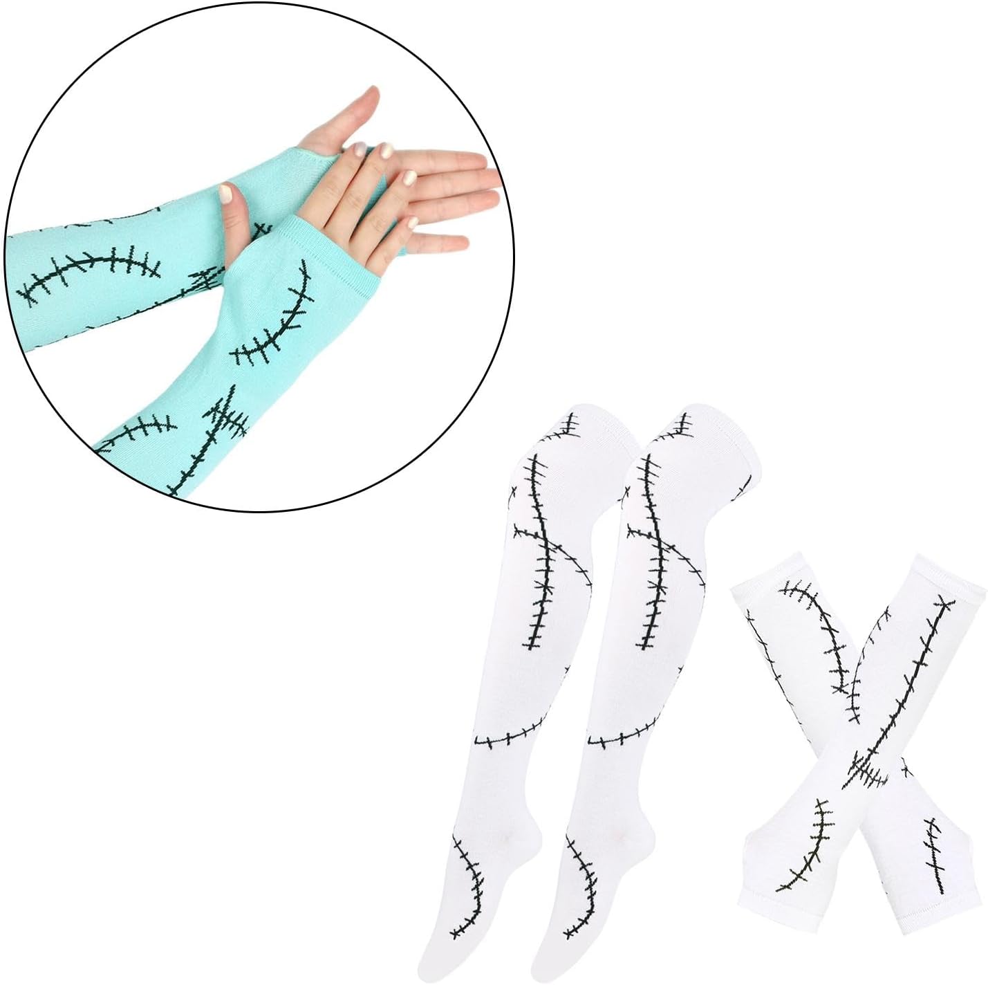 【Informazioni sulle taglie】La manica del braccio misura circa 30 cm x 9 cm / 11,81 pollici x 3,54 pollici, il calzino lungo circa 50 cm x 8 cm / 19,69 pollici x 3,15 pollici 【Vestibilità】Maniche con cicatrice cucita di Halloween e calzini lunghi con taglia standard da donna adatti alla maggior parte degli adolescenti e degli adulti 【Materiale in poliestere】I calzini lunghi e i guanti per costumi di Halloween sono realizzati in poliestere, leggeri e resistenti all'usura 【Applicazione】Accessori per costumi di Halloween adatti per , feste di Halloween e giorni in maschera e così via 【Set di costumi di Halloween per donne】Incluso 1 paio di maniche per le braccia e calzini lunghi con cicatrice cucita stampata