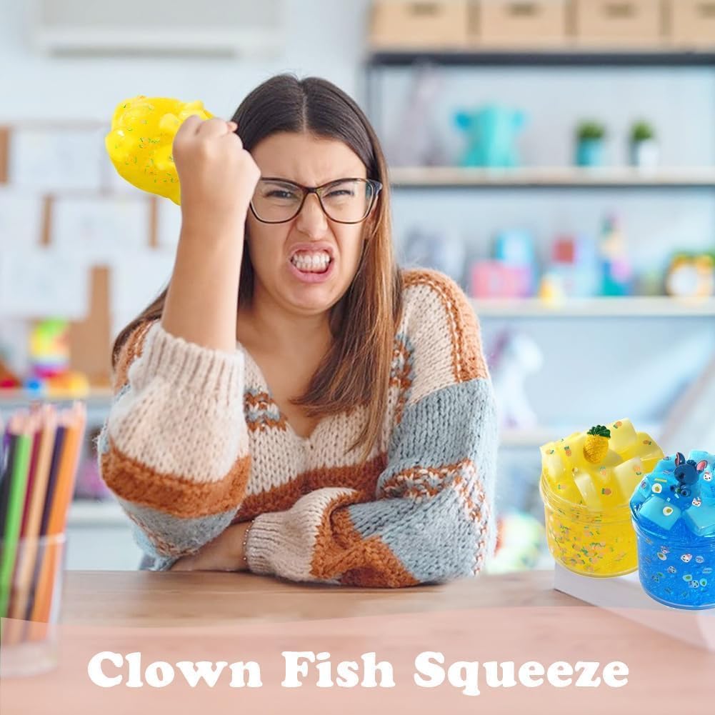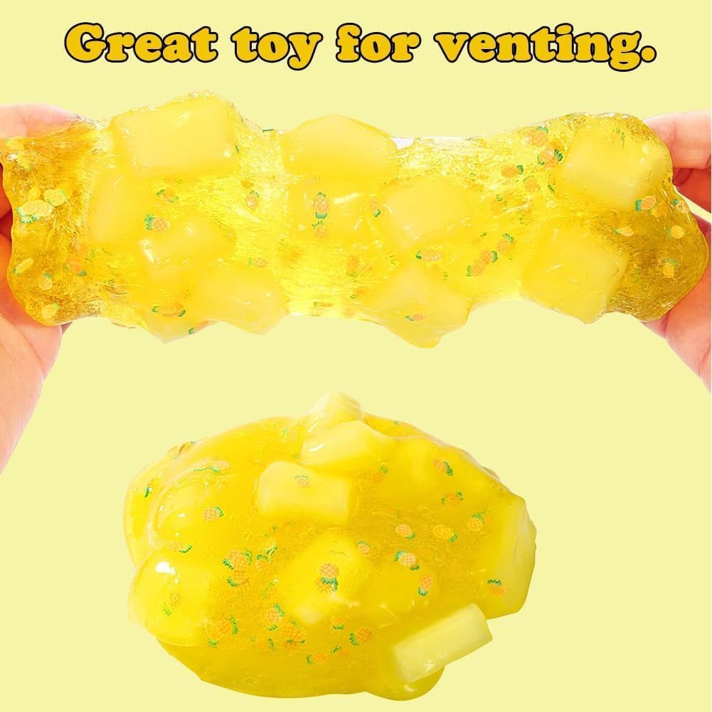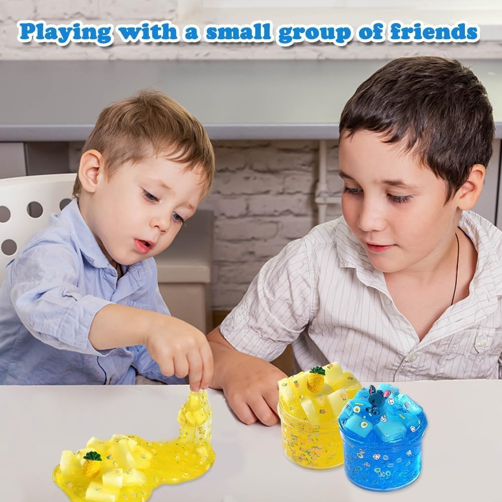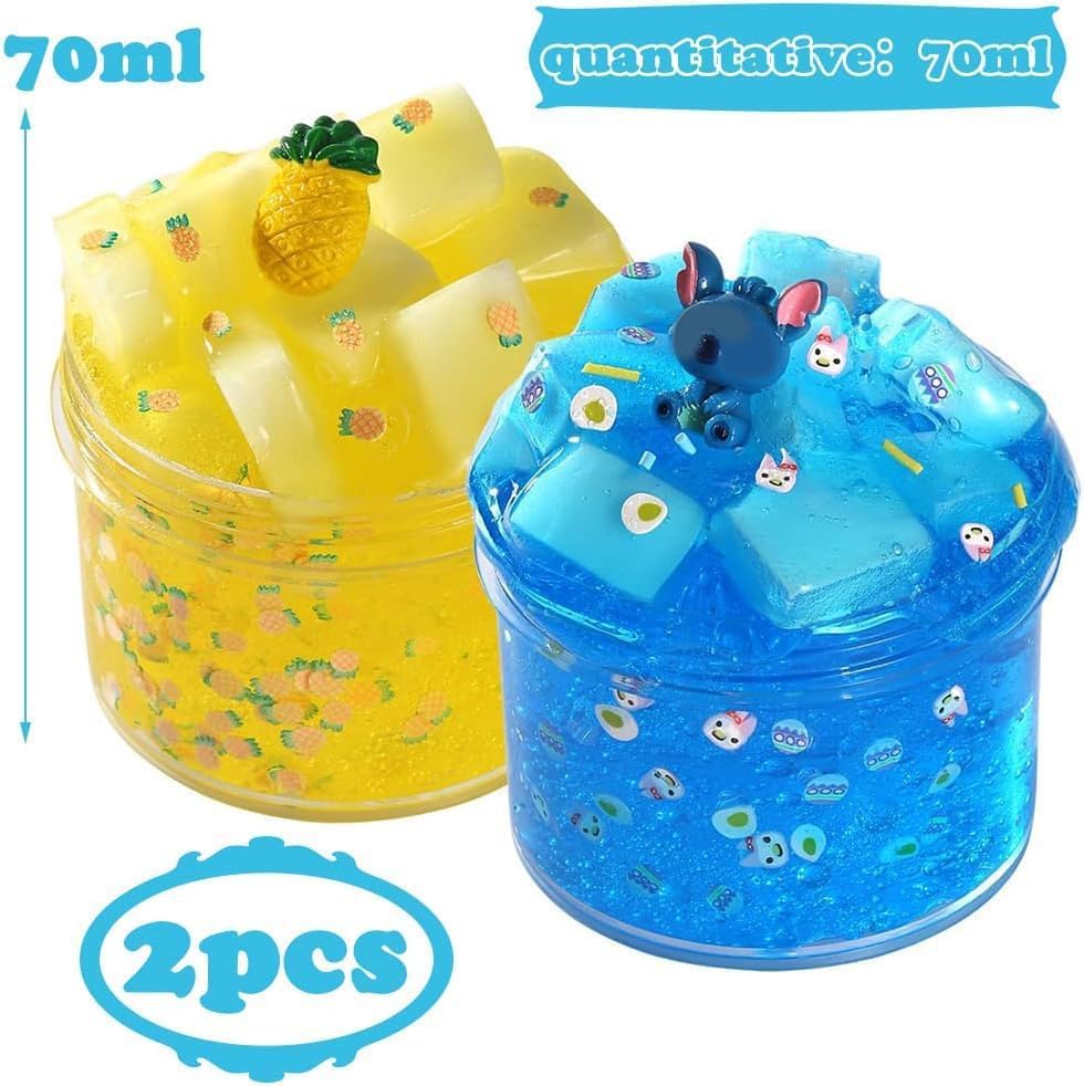 【Melma di gelatina di buona consistenza】2 confezioni di melma di cristallo trasparente, tra cui bambole blu e ananas gialle. Ottimo kit di bricolage per i bambini per fare la melma di gelatina, la melma di mica e la melma di ghiaccio. 【Super morbido ed elastico】 Questi slime trasparenti sono molto morbidi, non si sporcano e si allungano. Se si tira lentamente, si allunga in modo super sottile. Divertitevi, ma per favore non mangiate! 【Impara giocando e divertiti 】 La melma è un grande strumento educativo e il più interessante dei lavori manuali per bambini. Può stimolare la creatività e l'immaginazione dei bambini e allenare la motricità fine. Inoltre, è un'attività perfetta per promuovere le abilità sociali e il lavoro di squadra dei bambini. 【Comodo da riporre 】Quando non si gioca, rimettere la melma trasparente nel contenitore e coprirla per evitare che si secchi. Un fenomeno sorprendente è che quando si gioca, la melma inizia a diventare torbida, ma se la si mette da parte, la torbidezza scompare. 【Un grande regalo per i bambini 】Uno dei preferiti per le feste dei bambini. Questo è un gioco semplice e non elettronico per bambini di tutte le età. Un grande regalo per ragazzi e ragazze per compleanni, Pasqua, Natale e Capodanno.