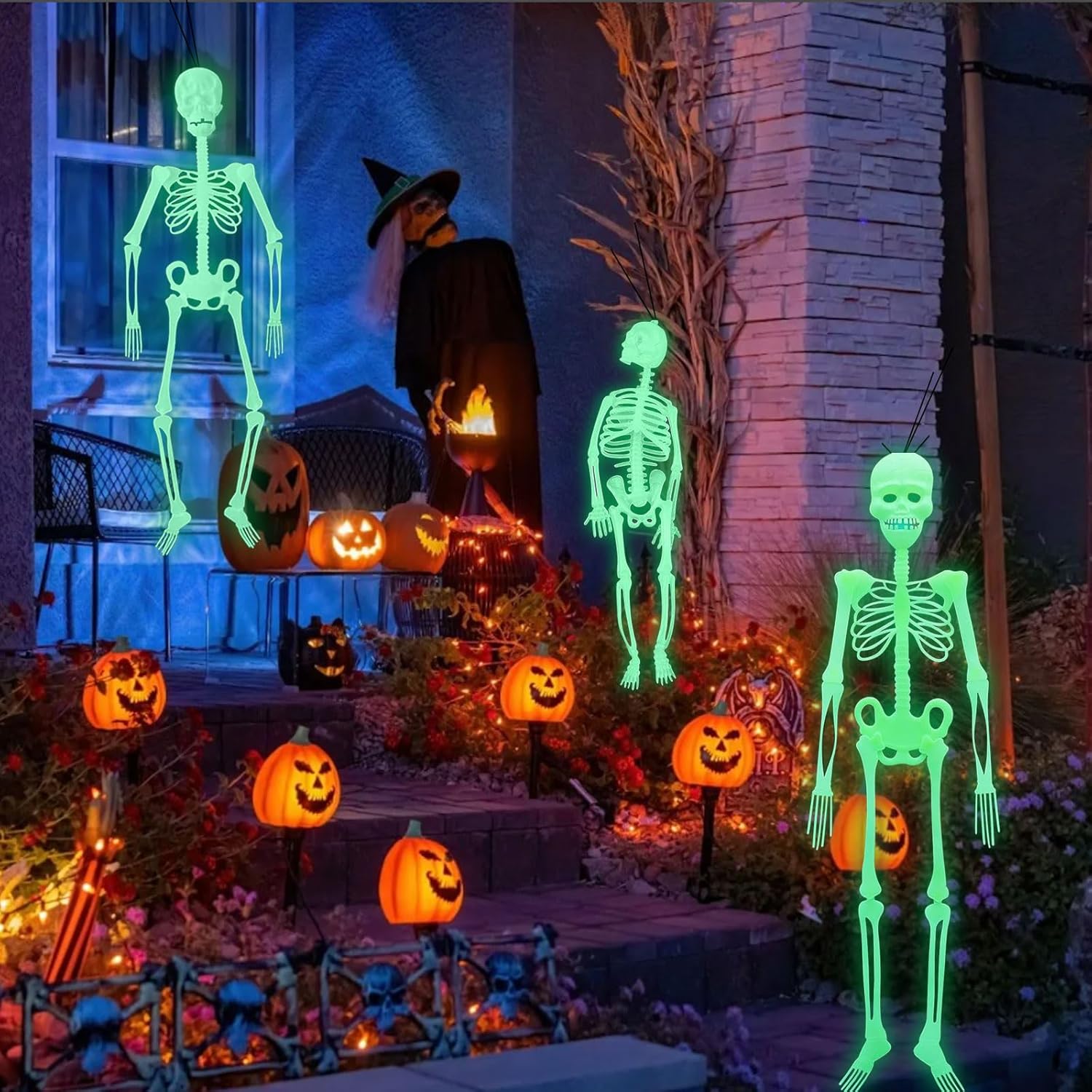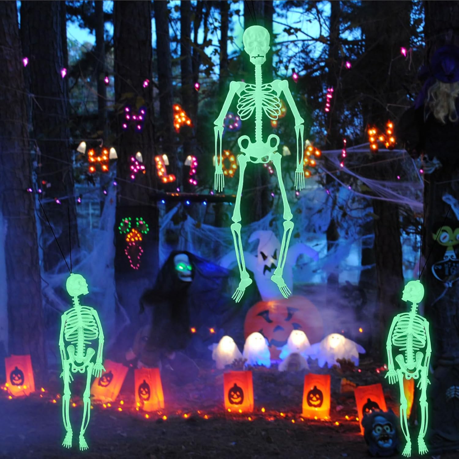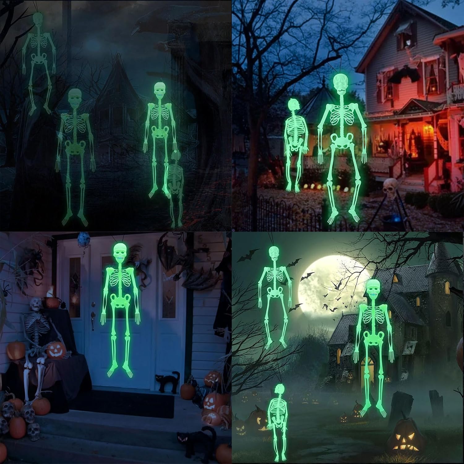 Decorazione scheletro di Halloween: riceverai 2 scheletri di Halloween sospesi con funzioni luminose nelle dimensioni 20 cm e 32 cm. Lo scheletro fluorescente da appendere ha piccoli fori che possono essere facilmente assemblati o appesi per ottenere l'effetto desiderato. Materiali di alta qualità: queste decorazioni scheletriche di Halloween sono realizzate in PVC, leggero, resistente e riutilizzabile. È realizzato con cura per garantire una lunga durata. È molto morbido e ogni articolazione può essere piegata in modo flessibile. Effetto luminoso notturno: gli scheletri fluorescenti sembrano più freschi di notte rispetto agli scheletri normali. Lo scheletro del teschio luminoso di Halloween ha piccoli fori, puoi appenderlo o metterlo in una posa fissa per farlo risaltare nell'oscurità di Halloween. Giunti mobili: lo scheletro luminoso ha giunti mobili che ti consentono di regolare diverse pose e posizioni. Puoi regolarlo secondo i tuoi desideri e dargli un aspetto realistico e spaventoso. Ampiamente usato: puoi appendere scheletri su cime di alberi, case, finestre e lampade da tavolo con corde per la decorazione del giardino di Halloween, decorazioni esterne, decorazioni del soggiorno, decorazioni della casa stregata, feste a tema horror, feste a tema scheletri, ecc. Con corde