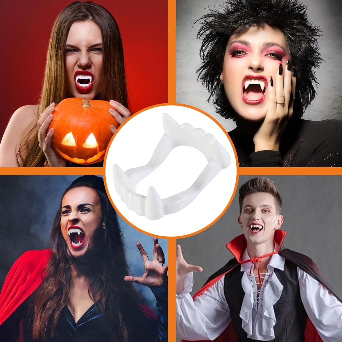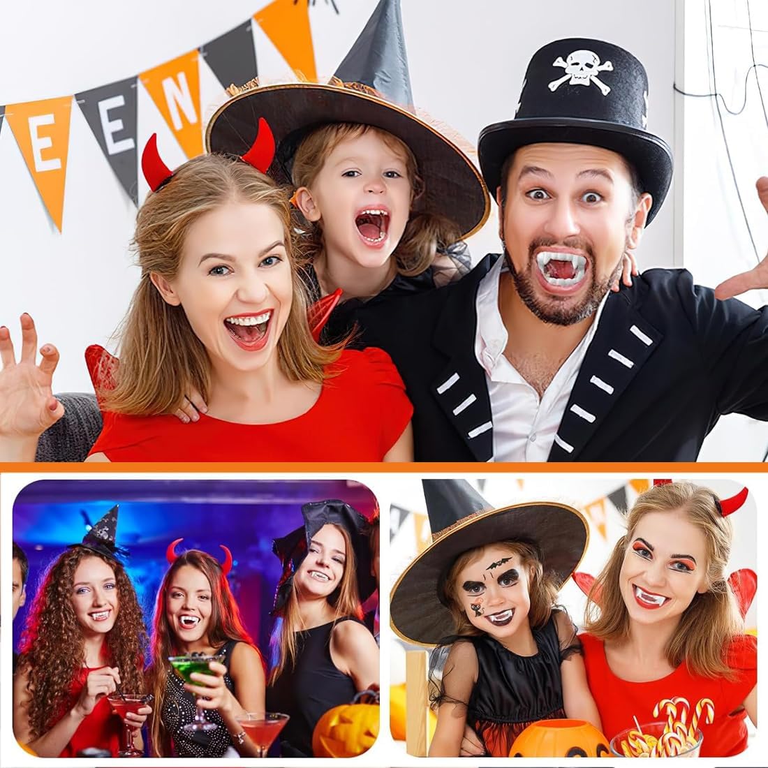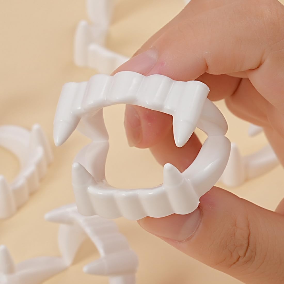Design autentico con zanne da vampiro: questo set di zanne da vampiro con 2 paia di denti e 6 tappi rossi (per un effetto sanguinolento) crea un look da vampiro realistico e spaventoso, perfetto per costumi e feste di Halloween. Alta qualità e comfort: realizzate in materiale morbido e di alta qualità, le zanne da vampiro si adattano comodamente alla bocca e sono comode da indossare, anche per lunghi periodi di tempo. Facile da usare: i denti possono essere inseriti in modo rapido e semplice e tengono bene senza allentarsi o intralciare: ideali per rapidi aggiornamenti del costume. Perfetto per tutte le età: il design è universale e adatto a bambini e adulti che vogliono decorarsi con stile durante eventi di Halloween, feste in maschera o carnevali. Utilizzo versatile: non solo come parte di un costume da vampiro, ma anche per decorare biscotti di Halloween, ciambelle o altri dolci per rendere i festeggiamenti ancora più emozionanti.
