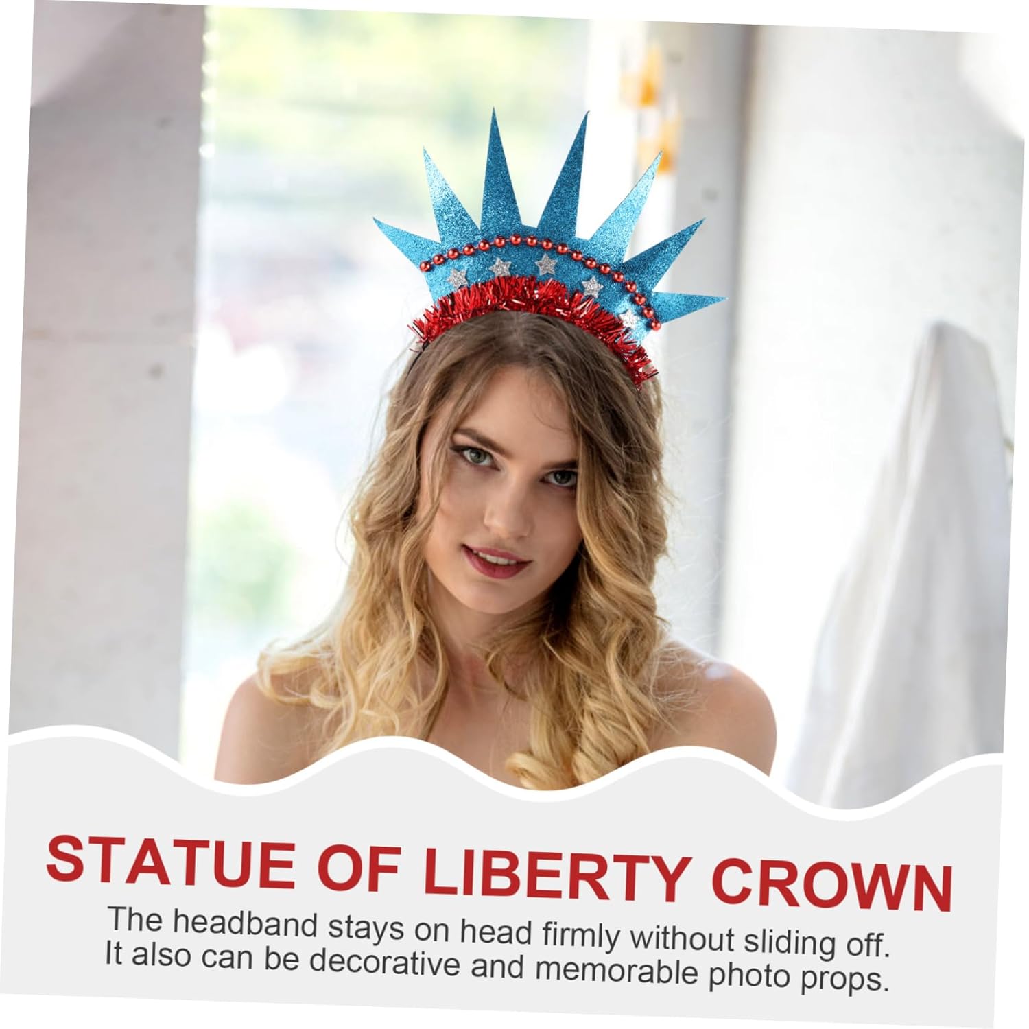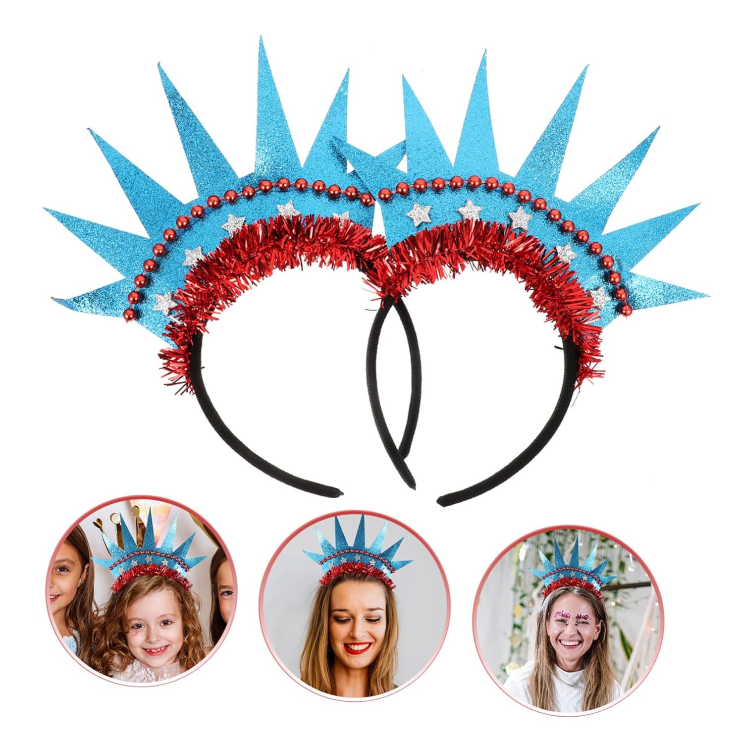 Copricapo per feste - la fascia rimane saldamente sulla testa senza scivolare via, copricapo da festa Fasce per capelli da festa - può anche essere usato come accessorio fotografico decorativo e memorabile o capelli per il Giorno dell'Indipendenza Capelli del Giorno dell'Indipendenza - realizzati in materiale, leggeri, con dettagli e lavorazione squisiti, copricapo per le feste Copricapo da festa - ti rendono più accattivante e bella alle feste, copricapo da esibizione per il Giorno dell'Indipendenza - con il design della Statua della Libertà e della Corona, è bello creare un'atmosfera divertente e felice, acconciatura per il Giorno dell'Indipendenza