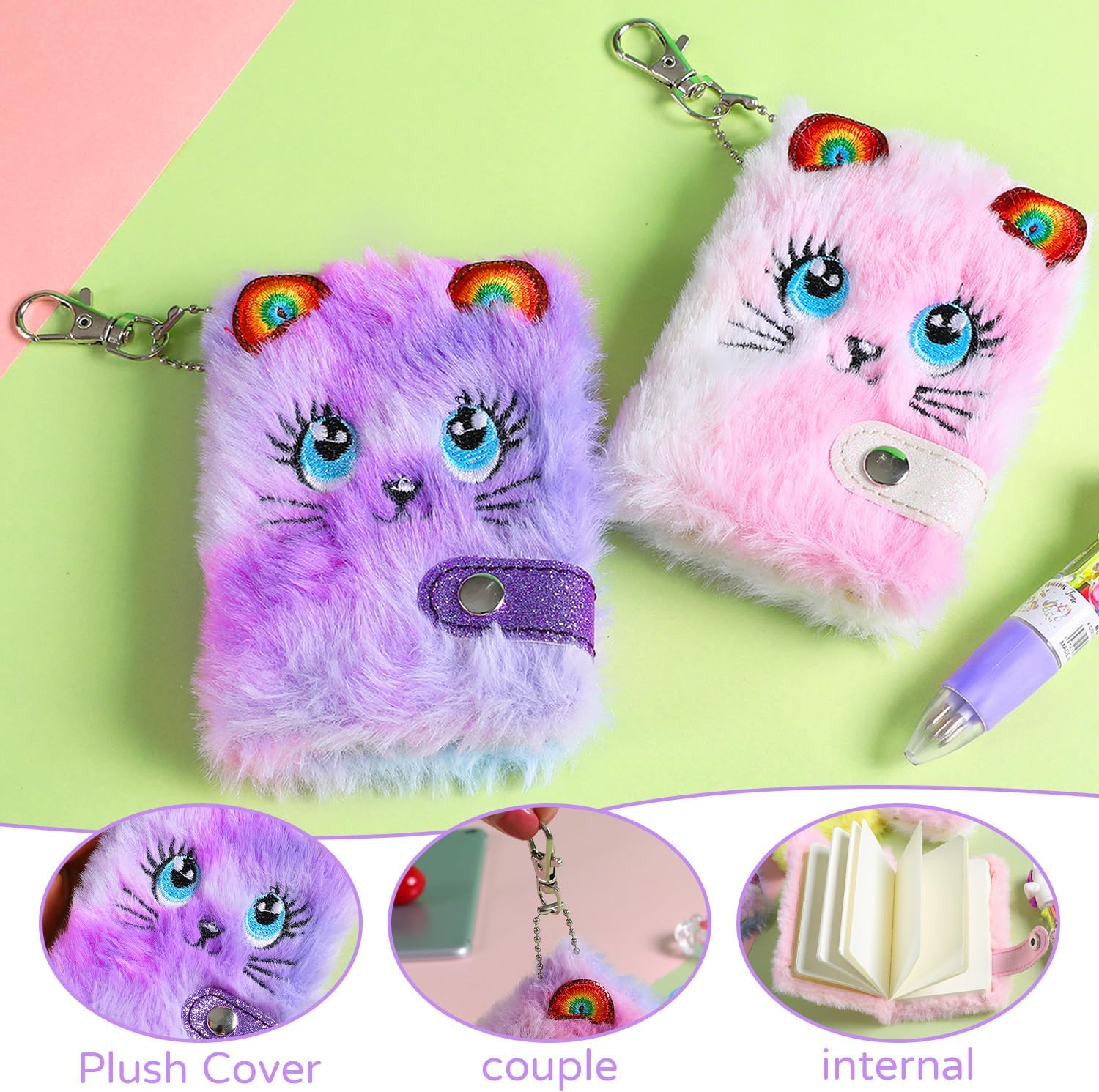【Contenuto Del Prodotto】 Ottieni 2 Note Di Peluche Carine. Ogni Taccuino Ha Una Dimensione Di 10*7 Cm Ed È Rosa E Viola Nei Colori, Che È Adatto Al Diario Dei Bambini O Registra Piccoli Segreti. 【Materiale Del Prodotto】 Questo Prodotto È Realizzato In Materiale Morbido, Morbido E Conveniente Troppo Toccante E Ha Una Copertura Carina Adatta Ai Bambini Da Utilizzare E Allo Stesso Tempo Aumentare La Durata E Il Divertimento Dell'Uso Del Prodotto. 【Design Unico】 Questo Prodotto È Unico, Con Un Aspetto Carino E Colori Che Attirano L'Attenzione Dei Bambini E La Combinazione Rosa -Lila È Piacevole, Il Che È L'Ideale Come Diario O Un Taccuino Per I Bambini. 【Uso Multifunzionale】 Questo Prodotto Non Può Essere Usato Solo Come Diario Che Registra La Vita Quotidiana E I Piccoli Segreti Dei Bambini, Ma Anche Adatto Come Libri Di Graffiti, Note Appiccicose, Ecc. Per Soddisfare Le Diverse Esigenze Di Scrittura Dei Bambini. 【Regalo Ideale】 Questo Prodotto È Un Regalo Ideale Per Ragazze E Bambini. È Adatto Come Regalo Di Compleanno, Regalo Per Le Vacanze O Regalo A Scuola. Non È Solo Pratico, Ma Stimola Anche L'Interesse Dei Bambini Nella Scrittura E Nel Desiderio Creativo.
