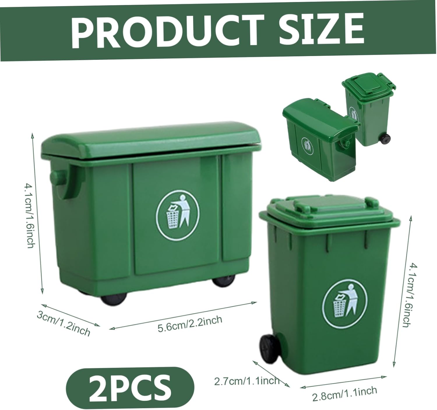Prop versatile decorativo: ideale per vari mestieri fai -da -te, configurazioni di mobili per case o scene all'aperto in miniatura, queste bidoni della spazzatura completano qualsiasi collezione di accessori per la casa delle bambole, contribuendo a creare mini ambienti dettagliati e vivaci. Cestino di miniatura Mini Cash lattina lattina Design in miniatura realistica: realizzati con precisione, questi bidoni della spazzatura in miniatura da 2 pezzi presentano un'autentica finitura verde e trame dettagliate, abbinando perfettamente gli accessori per bambole in scala 1:12 per dare vita a scene all'aperto e bambole con fascino e stile realistici..Mini Cesti Cash 1 Accessori per la casa delle bambole a 12 scale Materiale affidabile: realizzato in plastica robusta ed ecologica, queste bidoni della spazzatura in miniatura sono progettati per resistere alla manipolazione durante i progetti artigianali o il gioco delle bambole senza danni o sbiadimento del colore..1 Accessori per bambole per la casa delle bambole 12 Accessori per la casa delle bambole Scala e dimensioni perfette: dimensioni per adattarsi perfettamente alle miniature della casa delle bambole 1:12, queste bidoni della spazzatura in miniatura verde si fondono perfettamente con altre cose in miniatura, rendendole un accessorio indispensabile per collezionisti e hobbisti che mirano a dettagli accurati..Accessori per bambole Miniature delle bambole Coperchio di apertura funzionale: ogni mini cestino può includere un coperchio pratico e aperto che aggiunge divertimento interattivo e realismo al tuo casa delle bambole o progetti di artigianato fai -da -te, migliorando l'esperienza complessiva di gioco e visualizzazione..Miniature delle bambole in miniatura
