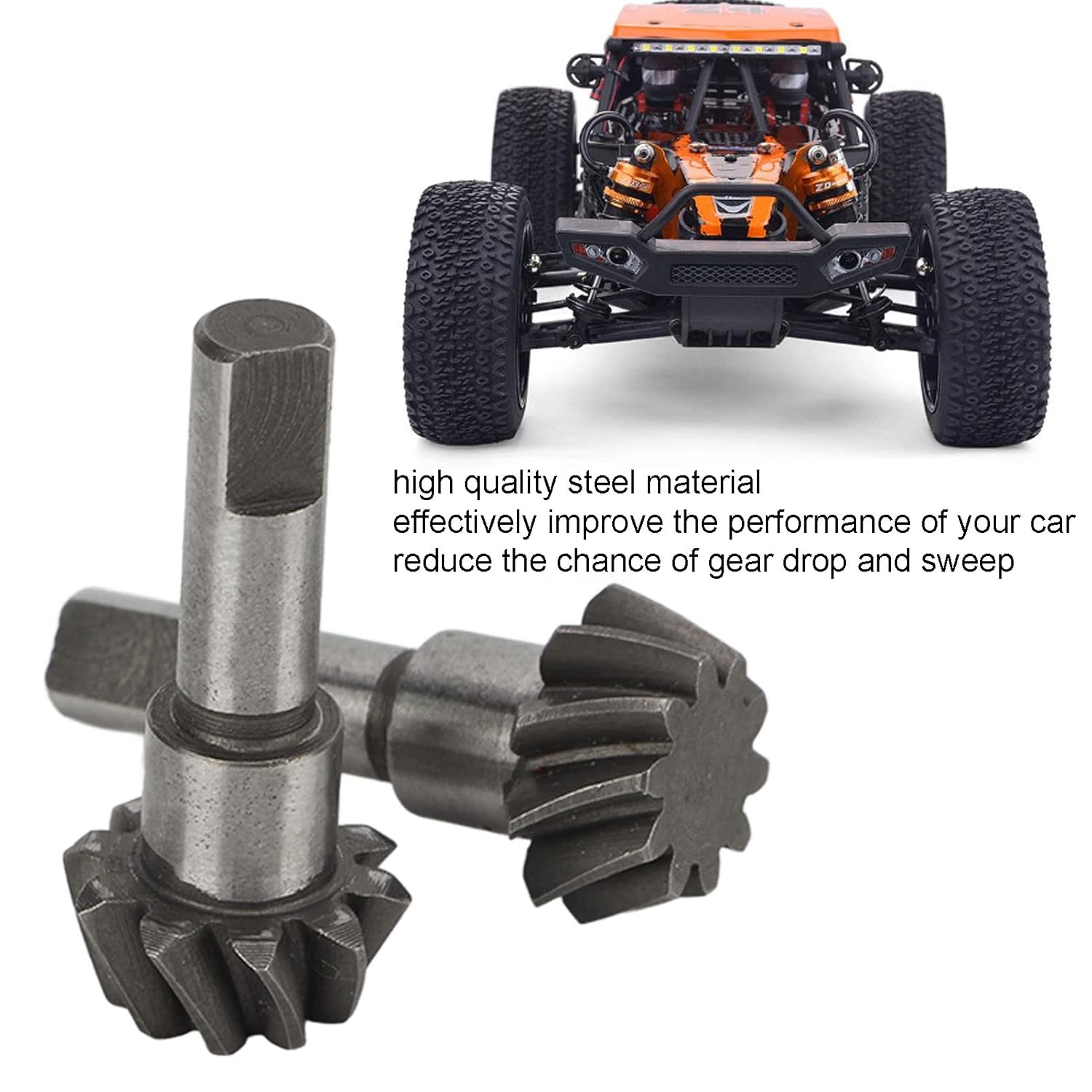 PRESTAZIONI: Il nostro ingranaggio conico RC 10T è progettato per migliorare le prestazioni della tua auto RC, riducendo la possibilità di caduta e spazzata dell'ingranaggio. Realizzato in acciaio, questo ingranaggio è durevole e offre un migliore controllo, rendendolo ideale per progetti pubblicitari ad alta velocità e fuoristrada. STABILE E: l'ingranaggio di trasmissione in acciaio RC presenta una struttura leggera ma solida, che garantisce stabilità senza aggiungere ulteriore carico alla tua auto telecomandata. Il suo design robusto si deforma, garantendo affidabilità e prestazioni. GUIDA PIÙ LISCIA: prova un giro evr con il nostro ingranaggio conico differenziale RC. L'efficiente sistema di trasmissione della potenza migliora la forza motrice della tua auto RC, garantendo prestazioni perfette su vari terreni, dalle piste desertiche ai sentieri accidentati. SOSTITUZIONE: questa sostituzione dell'ingranaggio RC è progettata per una facile installazione e smontaggio, consentendo di sostituire rapidamente le parti danneggiate. L'ingranaggio conico 10T è compatibile con D Racing 10 7502 1/10 Resert Car, garantendo una vestibilità perfetta e una configurazione senza sforzo. PREMIUM L: realizzato in acciaio, questo ingranaggio conico per auto RC offre resistenza e durata. L'ingranaggio color argento misura circa 27 x 12 mm (1,1 x 0,5 pollici) e viene fornito in una confezione da 2, offrendo un eccellente rapporto qualità-prezzo per gli appassionati di RC.