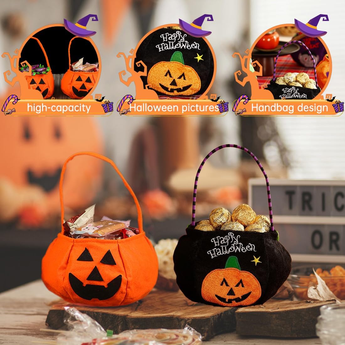 Set pratico e colorato: riceverai due sacchetti di caramelle di Halloween, uno nero e uno arancione. Queste borse sono perfette per raccogliere dolcetti durante i festeggiamenti di Halloween, rendendo ogni festa ancora più colorata e divertente. Design tematico: i sacchetti di caramelle di Halloween presentano un design ispirato alle zucche, simbolo iconico della festa di Halloween. Queste borse non sono solo funzionali, ma aggiungono anche un tocco festoso alle attività dolcetto o scherzetto. Materiale durevole: realizzati in materiale non tessuto di alta qualità, i nostri porta caramelle sono leggeri ma robusti. Non si strappano facilmente e sono progettati per essere riutilizzati anno dopo anno, rendendoli una scelta ecologica. Versatili e Multifunzionali: Oltre a raccogliere caramelle, questi cestini di Halloween possono essere utilizzati per conservare piccoli regali, decorazioni per feste e oggetti di scena per eventi a tema. Ideali per le feste di Halloween, saranno un'aggiunta perfetta a qualsiasi celebrazione. Regalo ideale: questi sacchetti di caramelle sono un regalo perfetto per i bambini, contribuendo a creare un'atmosfera festosa. Sorprendi i tuoi piccoli con questi divertenti accessori che renderanno le loro avventure di Halloween ancora più memorabili.