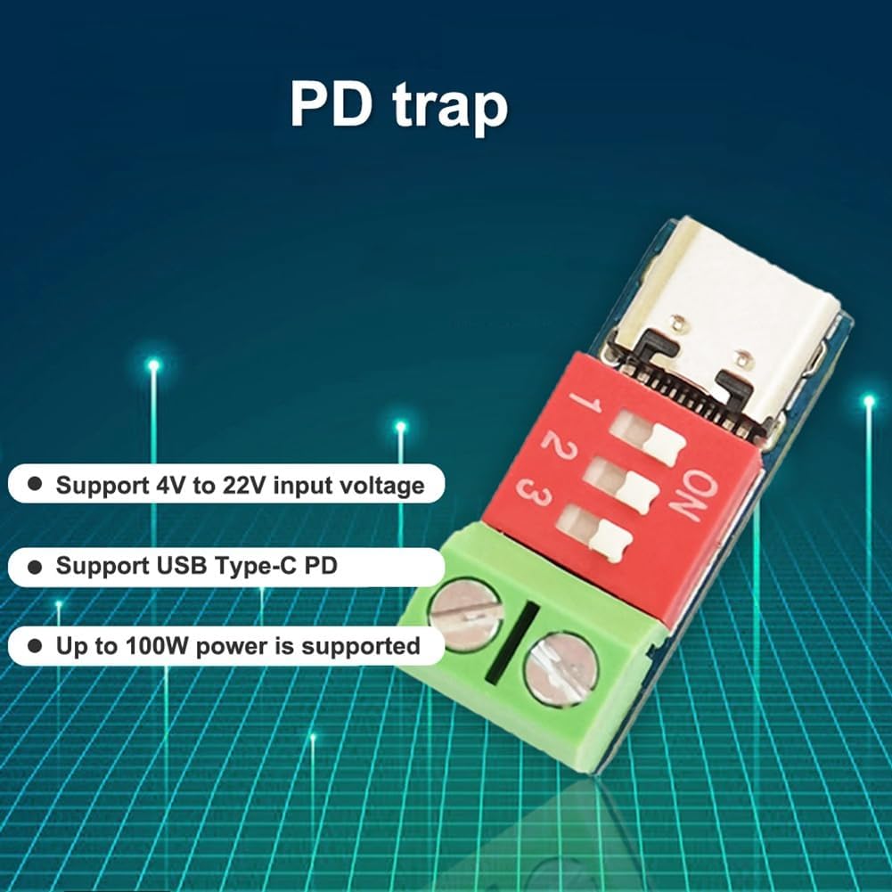 Supporta protocolli di ricarica rapida come PD3.0/2.0 e BC1.2 Il decoy PD supporta i protocolli Boost Fast Charging come PD3.0/2.0 e BC1.2 con una potenza massima di 10 watt e offre funzionalità come il surriscaldamento e . La tensione può essere regolata tramite l'interruttore DIP e la tensione di uscita massima è di 20 V. Supporta USB Type-C PD, supporta il rilevamento 'inserimento avanti e indietro e commutazione automatica Supporta tensioni di ingresso da 4 V a 22 V