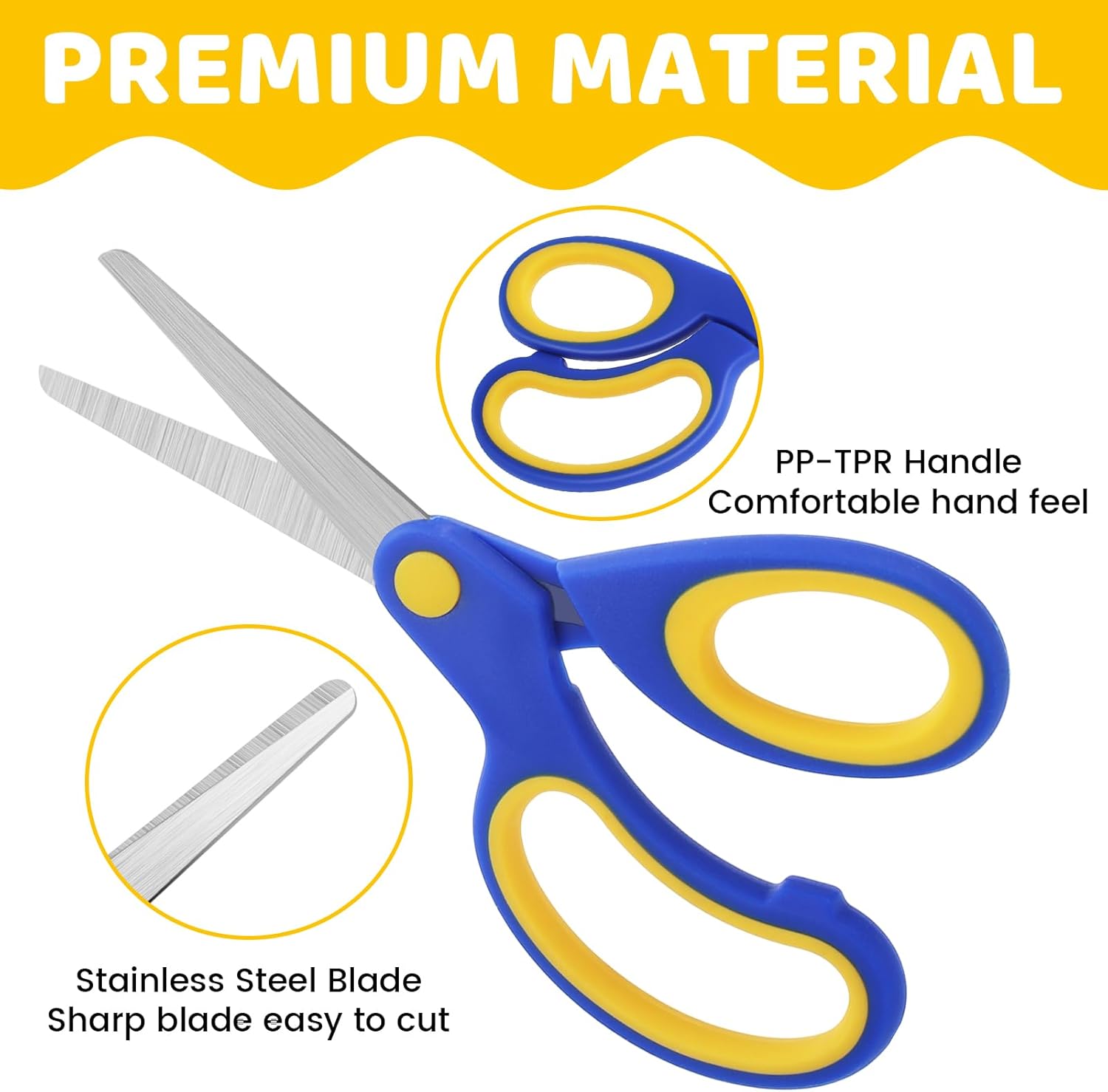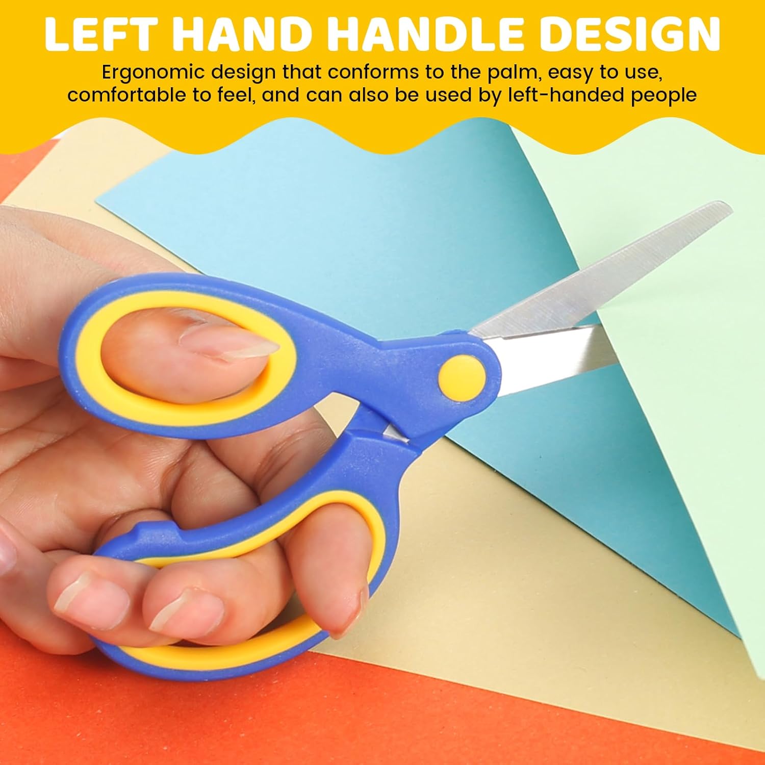 【Alta Qualità】La lama di questa forbici per bambini è realizzata in acciaio inossidabile con buona durezza e l'impugnatura della forbici per mancini a punta smussata è realizzata in PP-TPR, dal design ergonomico e confortevole al tatto. 【Affilato e Pratico】La lama in acciaio inossidabile di questa forbici per bambini è stata sottoposta a trattamento di tempra, rendendola affilata e facile da tagliare. È una forbici fatte a mano per la scuola molto pratica. 【Design a Lancio Rotondo】La lama di questa forbici per mancini a punta smussata per bambini adotta un design a testa rotonda, che non è facile da ferire alle mani ed è più sicuro per i bambini. 【Comodo da Usare】L'impugnatura morbida ed ergonomica della forbici fatte a mano per la scuola può aiutare i bambini a tagliare facilmente la forma desiderata e risparmiare energia. Ed è una forbici per mancini a punta smussata per bambini, adatta ai mancini. 【Ampia Applicazione】Questa forbici per bambini è molto adatta per attività in classe e progetti artigianali. Possono essere utilizzate come forbici per lavori artigianali, forbici da ufficio, forbici da cucina, forbici per la carta, forbici per la scuola, ecc.