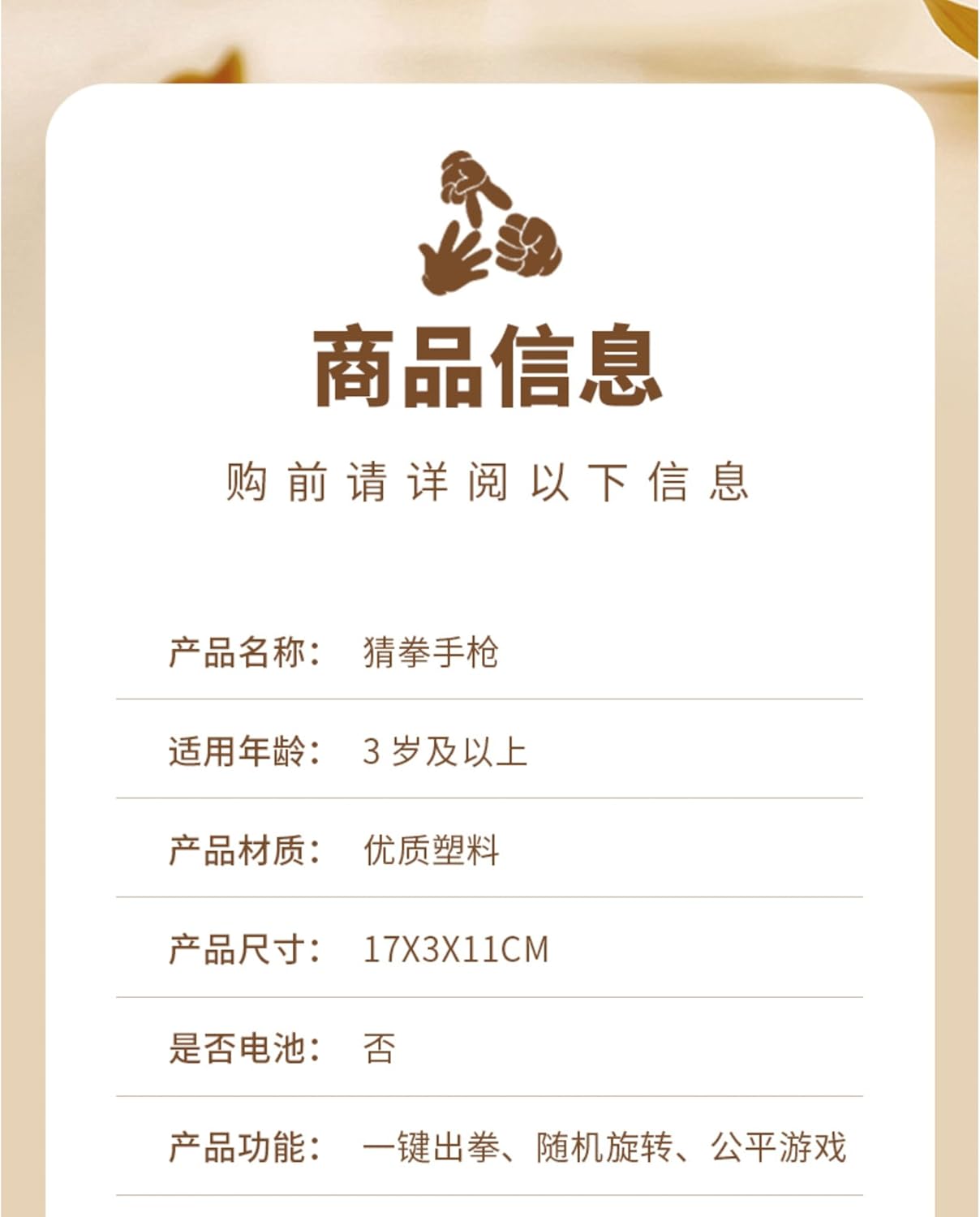 Divertimento multigiocatore: questo gioco di indovinelli consente un coinvolgente gioco multigiocatore, favorendo la competizione amichevole e l'interazione sociale. Decompressione: questo giocattolo offre un'esperienza spensierata e divertente ed è un modo piacevole for rilassarsi e alleviare lo stress. Atmosfera da festa: con i suoi colori vivaci e la sua natura interattiva, questo giocattolo può contribuire a creare un'atmosfera vivace e festosa durante feste o riunioni. Sfida di indovinelli: metti alla prova il tuo ingegno e la tua intuizione indovinando le opzioni corrette nel classico gioco carta-sasso-forbici, aggiungendo un elemento di suspense ed eccitazione. Compatto e portatile: progettato pensando alla portabilità, questo giocattolo può essere facilmente trasportato e utilizzato in diverse situazioni, il che lo rende una scelta comoda for il divertimento in movimento.