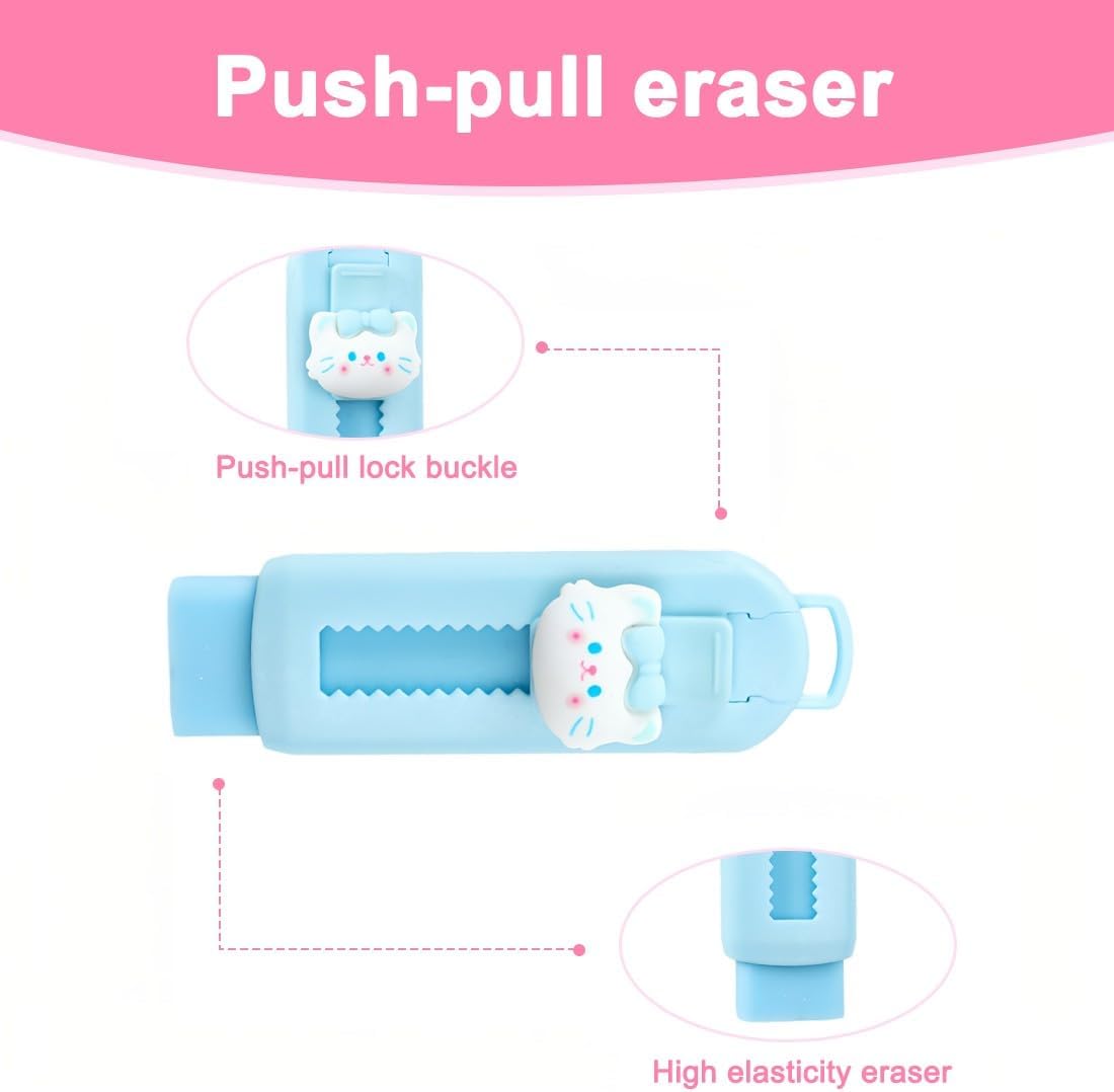 Descrizione: la gomma push-pull può rendere l'uso quotidiano più semplice e conveniente per i tuoi bambini. Spingere la gomma nel momento in cui non viene utilizzata può anche evitare macchie sulla gomma. Materiali: realizzati in gomma. Il materiale è sicuro e non tossico, quindi i tuoi bambini potranno usarlo con sicurezza. Tuttavia, evita che i tuoi bambini mangino accidentalmente la gomma. Dimensioni: diametro 2,5 cm, altezza 8,8 cm. Caratteristiche: Queste gomme da cancellare a forma di coniglietto e gattino sono carine e infantili e i tuoi bambini le adoreranno. Buon regalo per i bambini: un'ottima scelta per i regali dei festival per bambini come Natale o un piccolo premio per gli studenti. Queste adorabili gomme da cancellare con motivi di animali attireranno l'attenzione dei bambini e saranno molto felici.