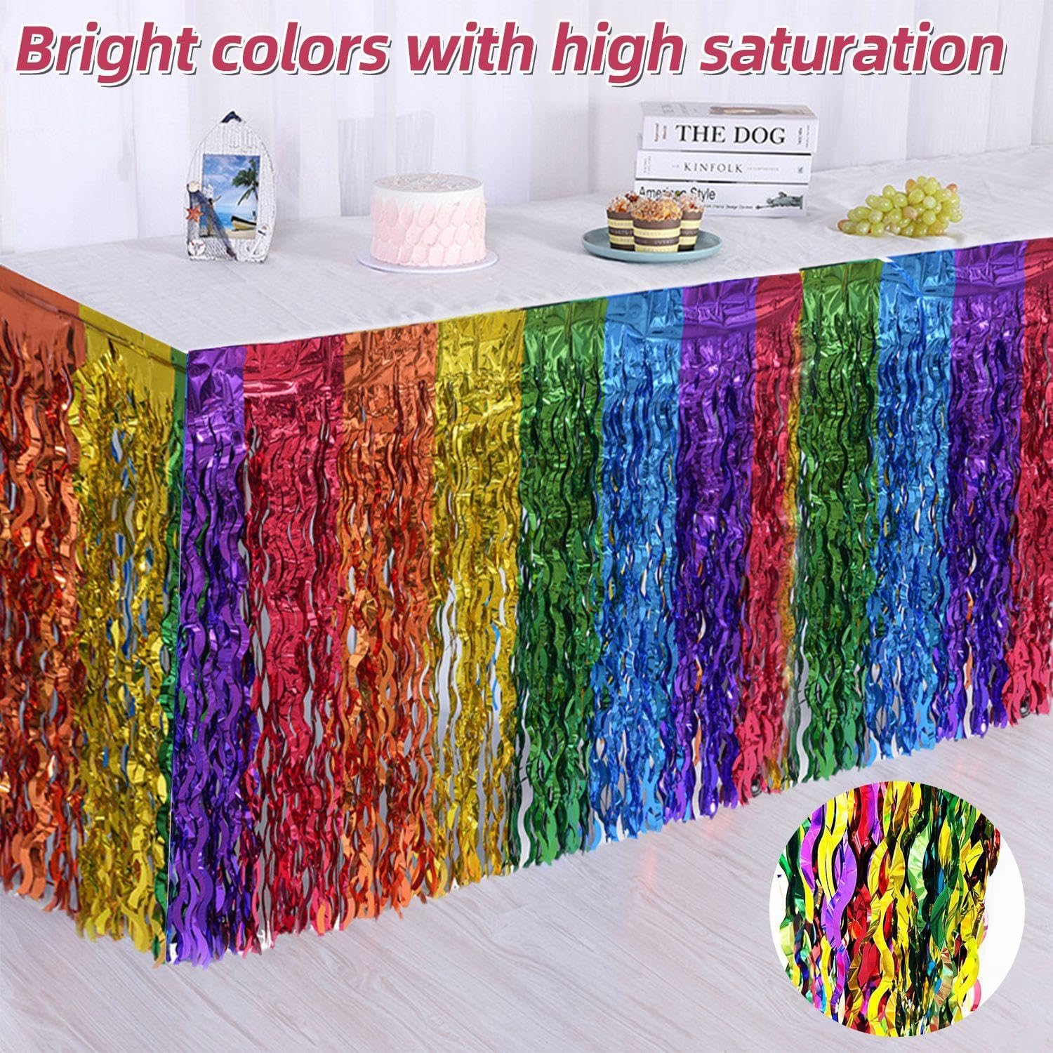【Contenuto del prodotto】 Riceverai 2 pezzi di gonne da tavolo arcobaleno, dimensioni 275 x 75 cm, colorate, adatte per decorazioni da tavola alle feste, aggiungendo un'atmosfera festosa ai tuoi eventi. 【Materiale del prodotto】 Questa gonna da tavolo arcobaleno è realizzata in materiale per animali domestici, leggero e resistente. È impermeabile e garantisce che rimanga in ordine dopo un uso a lungo termine. È adatto per l'uso in una varietà di scene interne ed esterne. 【Design Brillante】Questa gonna da tavolo ha un design unico con effetto nappa e colori vivaci, che possono migliorare immediatamente l'atmosfera della scena della festa. È una decorazione ideale per feste, matrimoni, compleanni e altre occasioni. 【Facile da installare】 Questo prodotto è molto facile da usare. È dotato di striscia adesiva sul retro e può essere facilmente fissato al bordo del tavolo per creare rapidamente effetti decorativi colorati senza bisogno di strumenti aggiuntivi. 【Adatto a più scene】 Che si tratti di una festa di compleanno, di una festa, di un matrimonio o di un anniversario, questa gonna da tavolo arcobaleno può aggiungere colori vivaci alla tua occasione e abbinarsi perfettamente a qualsiasi incontro felice.