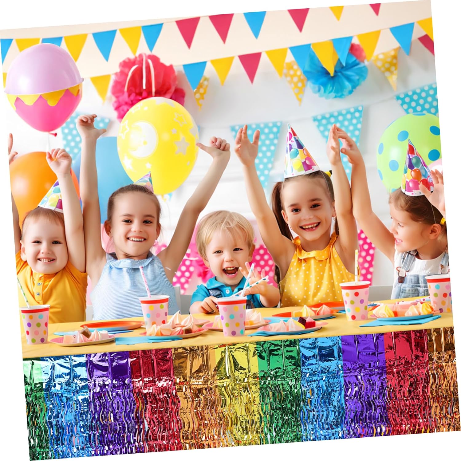 Design ondulato: la trama ondulata aggiunge un tocco in più alle tradizionali gonne da tavolo, conferendo ai tuoi tavoli un aspetto dimensionale e vivace, decorazioni per festival, decorazione della gonna da tavolo Motivi ondulati: la forma ondulata di queste gonne da tavolo festive conferisce una qualità vivace e tridimensionale ai vostri tavoli, migliorandone l'attrattiva visiva, decorazioni per feste, gonna da tavolo per laurea Colori arcobaleno: con una tavolozza di colori brillanti, la gonna da tavolo per feste porta un tocco immediato di divertimento ed eccitazione alle tue impostazioni del tavolo, gonna da tavolo di carnevale, decorazioni per feste con gonna da tavolo Festività migliorata: perfette per vari eventi celebrativi, carnevali alle feste all'aperto informali, queste gonne da tavolo portano un'atmosfera e una festa, gonna da tavolo con frange, decorazione da tavolo per feste E riutilizzabili: realizzati in plastica leggera ma resistente, questi decori da tavolo resistono a varie condizioni e possono essere utilizzati più volte, decorazioni per feste, frange da tavolo