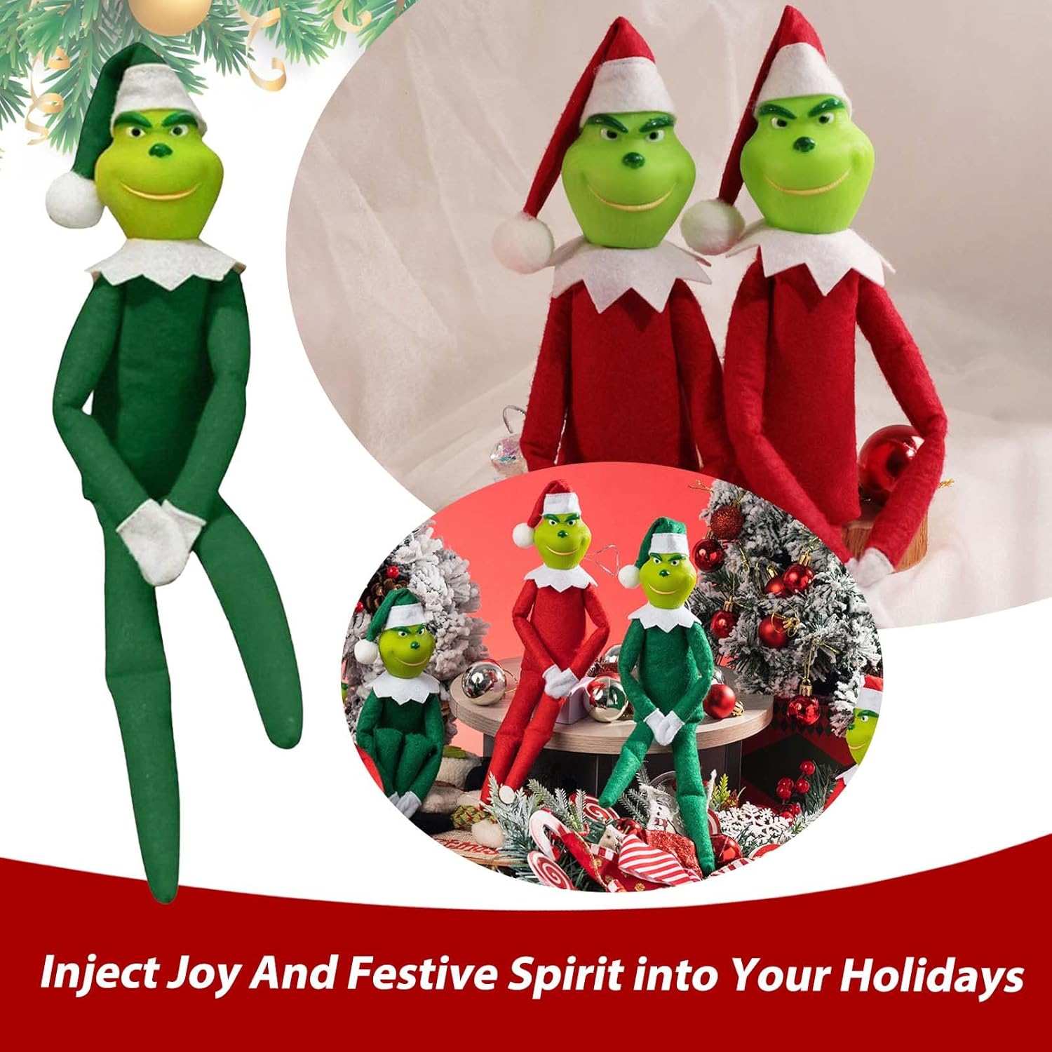 Design: L'elfo Gri-nch ha un design che ricorda quello del Gri-nch e indossa un abito da Babbo Natale rosso o verde e un cappello da Babbo Natale. Questo peluche natalizio del Gri-nch è realizzato a mano, intagliato, dipinto e cucito in modo unico. Materiale: Il peluche natalizio del Gri-nch è realizzato in PVC e tessuto non tessuto, resistenti e resistenti allo sbiadimento. È ecologico e innocuo, morbido e coccoloso. Le braccia e le gambe possono essere regolate in qualsiasi angolazione e puoi metterle in posa come preferisci! Decorazione: L'elfo di peluche verde con cappello da Babbo Natale è l'aggiunta perfetta all'arredamento della tua casa. Questa bambola elfo natalizia da 30 cm può essere posizionata su scrivanie, tavoli, divani, librerie, mensole, tavoli da pranzo, ecc. per creare un'atmosfera familiare calda e allegra, esprimendo al contempo lo spirito natalizio. Peluche natalizio: Questo peluche elfo è perfetto per giocare e dormire. Il tessuto morbido e grazioso, la forma raffinata e il colore lo rendono una gioia al tatto, rendendolo un giocattolo ideale per i bambini che vogliono creare bei ricordi. Regalo perfetto: Questo adorabile peluche dell'elfo di Natale è l'ideale per i tuoi amici, genitori e colleghi. Crea un'atmosfera festosa per creare ricordi affettuosi. Perfetto per completare le tue decorazioni natalizie!