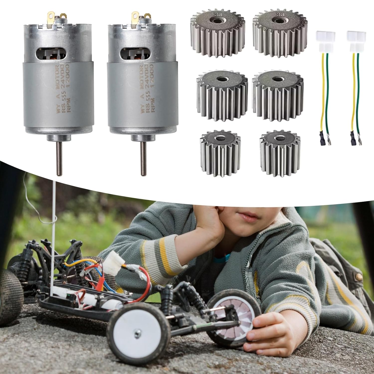 Il motore elettrico RS555 24V offre prestazioni stabili e un'accelerazione superiore, perfetta per migliorare le auto con telecomando per bambini con grandi capacità di arrampicata su terreni diversi Progettato per i genitori in cerca di aggiornamenti, questo potente motore garantisce un'avventura all'aperto sicura per bambini dai 3 ai 12 anni Questo motore a protezione termica è adatto per un viaggio telecomandato in auto e combina una struttura resistente agli urti con prevenzione dei cortocircuiti per garantire operazioni libere Potenza attraverso sentieri sul cortile, pendii erbosi o superfici irregolari, mantenendo l'efficienza energetica per un uso duraturo Utilizzare materiale metallico