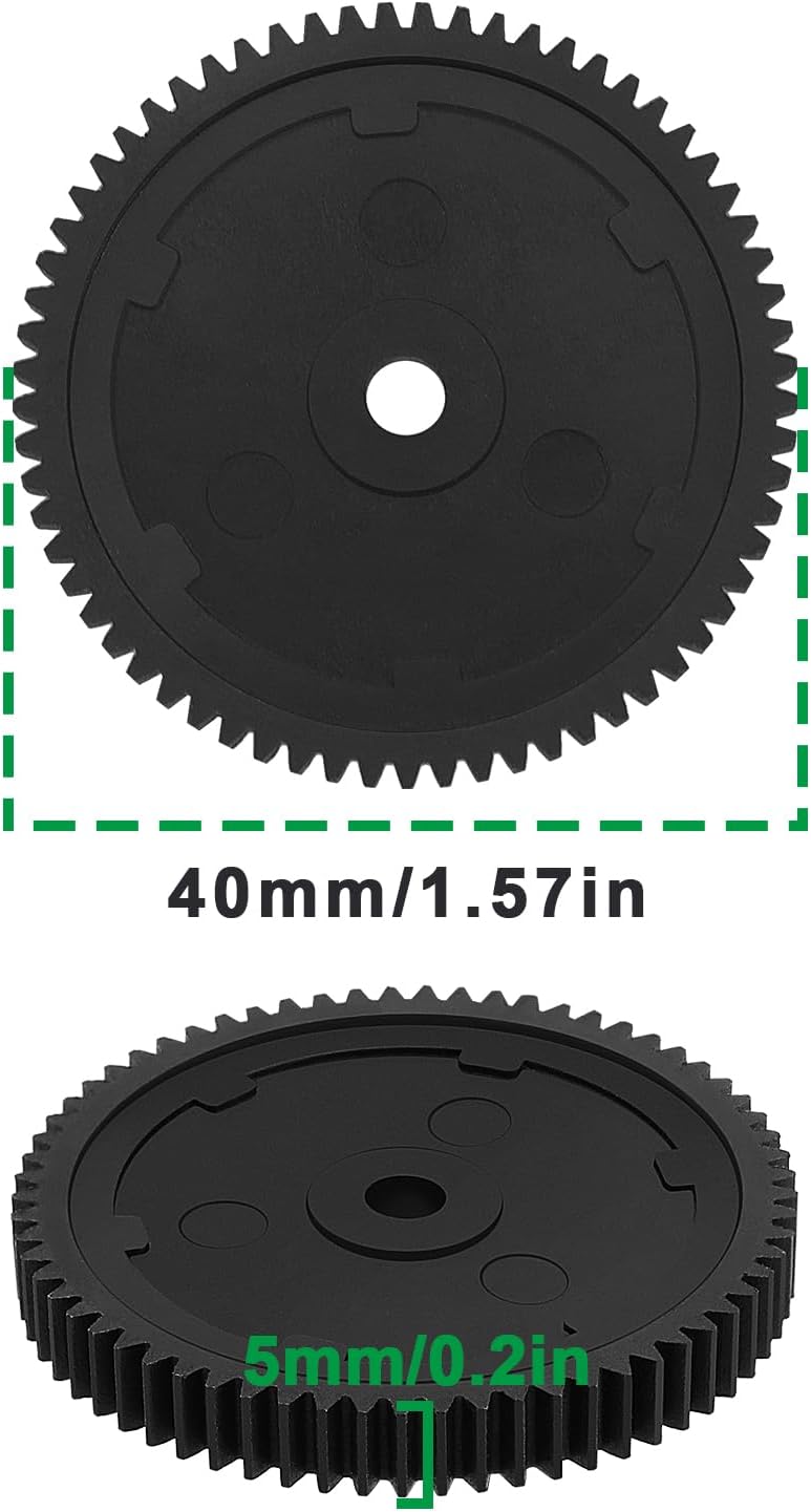 [Materiale] : L'ingranaggio 65T di questo motore RC è realizzato in plastica temprata durevole, ad alta resistenza, resistente all'usura, effetto di trasmissione più elevato e più stabile, lunga durata. [Esecuzione squisita] : L'ingranaggio cilindrico 65T è prodotto professionalmente, con dimensioni precise, prestazioni stabili e alta affidabilità. [Compatibile con] : Questo ingranaggio cilindrico principale in acciaio temprato ha un'elevata compatibilità ed è compatibile con FTX Vantage e Carnage. [Funzione] : Una buona lavorazione fa sì che gli ingranaggi ruotino senza intoppi e hanno la capacità di resistere a forze elevate, offrendo alla tua auto RC buone prestazioni di guida. [Pacchetto] : Il pacchetto include 2 ingranaggi cilindrici 65T.