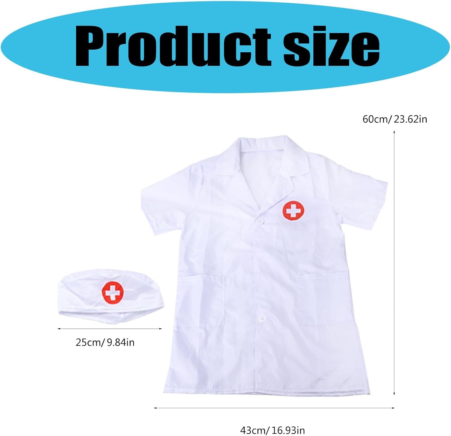 Kit medico 2 pezzi cappotto medico infermiera tappi medico fingere gioco accessori costume Halloween Fancy Dressing Set ragazzi ragazze Caratteristiche: Materiali, set per giochi di ruolo da medico realizzato in fibra di tessuto, morbido, traspirante, comodo da indossare. Il pacchetto include: cappotto medico, cappello. Dimensioni: adatto per la maggior parte dei bambini, ragazzi e ragazze. Regalo meraviglioso, dolce amico famiglia te stesso. Il costume da medico di Halloween adatto per giochi di ruolo, costume da giorno della carriera per bambini, feste di compleanno o feste a tema ospedaliero e così via. Specifiche tecniche: Materiale: tessuto. Colore: 01,02. La confezione include: 1 set costume da dottore per fingere di Nota: Considerare un margine di errore di 1-2 cm dovuto alla misurazione manuale. A causa delle differenze tra i diversi monitor, l'immagine potrebbe non rispecchiare il colore reale dell'articolo.