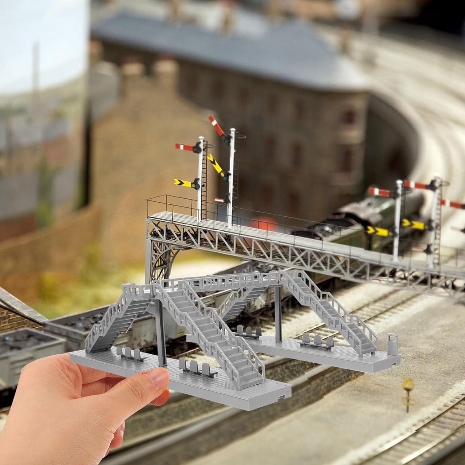 Design realistico: il modello in miniatura del ponte pedonale riproduce un ponte pedonale sopraelevato con dettagli intricati, migliorando l'autenticità dell'arredamento del tuo tavolo di sabbia o del plastico ferroviario Facile da montare: questo modello di passerella fai da te è dotato di una struttura robusta, semplice da montare e smontare, il che lo rende ideale per gli appassionati di modellismo e per scopi didattici Materiali durevoli: realizzati in plastica, i componenti della passerella in plastica garantiscono durata e colori vivaci, per esposizioni interne o modelli architettonici Aggiunta scenica interattiva: la passerella per modellini ferroviari aggiunge un elemento dinamico alle configurazioni dei ponti dei binari del treno, creando scene coinvolgenti per la costruzione di modellini di treni e oggetti di scena ferroviari Valore educativo: questo giocattolo di costruzione di modelli ispira la creatività e il pensiero spaziale, rendendolo un ottimo strumento per insegnare ai bambini i concetti di pianificazione urbana e progettazione architettonica