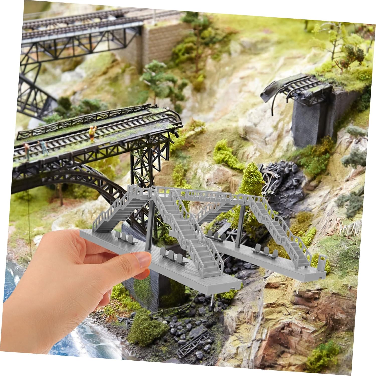 Design: il modello di passerella ferroviaria riproduce strutture, migliorando l'autenticità dei modelli architettonici in miniatura o dei modelli di tavoli da sabbia, modelli architettonici in miniatura, modello di passerella in miniatura Qualità: realizzata con materiali durevoli, la passerella in miniatura conserva i suoi colori vivaci e i dettagli raffinati, per la decorazione di scenari ferroviari o decorazioni per tavoli di sabbia, modello di passerella sospesa, mini ponte ferroviario Montaggio senza : il modello di passerella fai da te è facile da usare, consentendo agli appassionati e agli educatori di smontare facilmente i modelli di passerella da tavolo di sabbia o gli oggetti di scena ferroviari, passerella modello ferroviario, ponte Realismo migliorato: il modello del ponte ferroviario e il design del ponte danno vita all'arredamento del tracciato ferroviario, creando un'esperienza visivamente accattivante e coinvolgente per gli spettatori, ponte in miniatura, modello di passerella da tavolo di sabbia Facile da montare: questo modello di passerella fai da te è dotato di struttura robusta, semplice da montare e smontare, il che rende per gli appassionati di modellismo e per scopi didattici, modello di passerella fai da te, modello architettonico