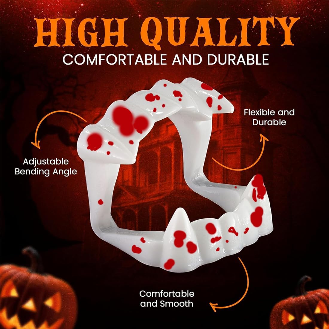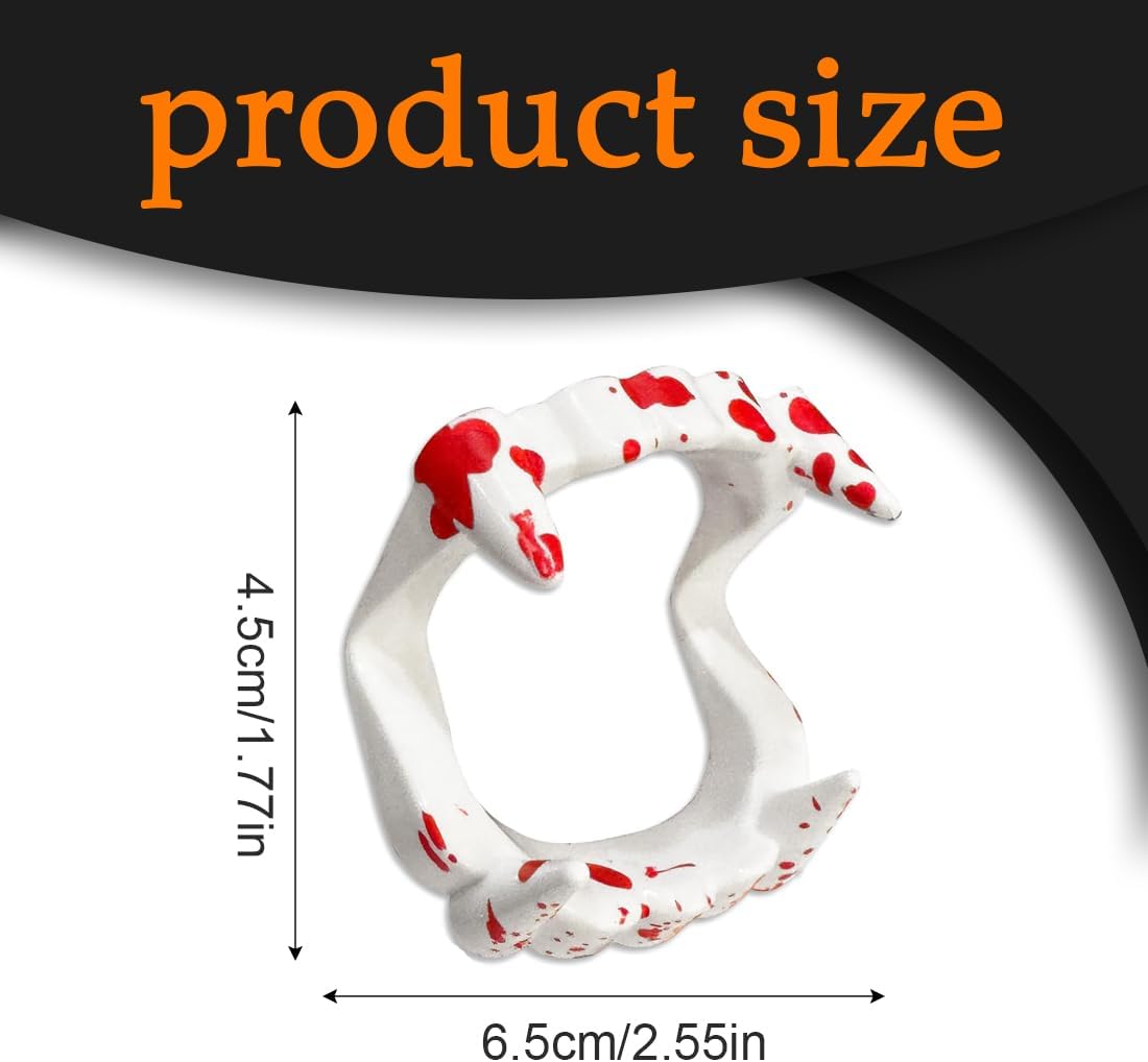 Sicure e innocue, adatte ai bambini: le nostre dentiere macchiate di sangue di vampiro non contengono sostanze nocive, sono adatte ai denti e sono ideali per i bambini dai 10 anni in su. Vestibilità perfetta: la dentiera macchiata di sangue misura 6,5 x 4,5 x 1,7 mm, adatta a bambini dai 10 anni in su, tenendo conto dello sviluppo dentale individuale e delle dimensioni della bocca. Riutilizzabili e resistenti: i denti da vampiro in plastica di alta qualità possono essere riutilizzati per vari costumi da Dracula o da vampiro e resistono alla normale usura. Facili da usare: i denti da vampiro sono semplici da indossare e da togliere, rimanendo comodi anche durante un uso prolungato. Accessori versatili: perfetti per Halloween, carnevali, compleanni o raduni a tema. Basta aggiungere sangue finto e un cappuccio con zanne per un look davvero autentico.