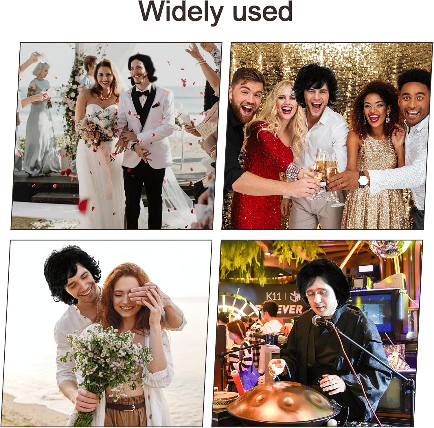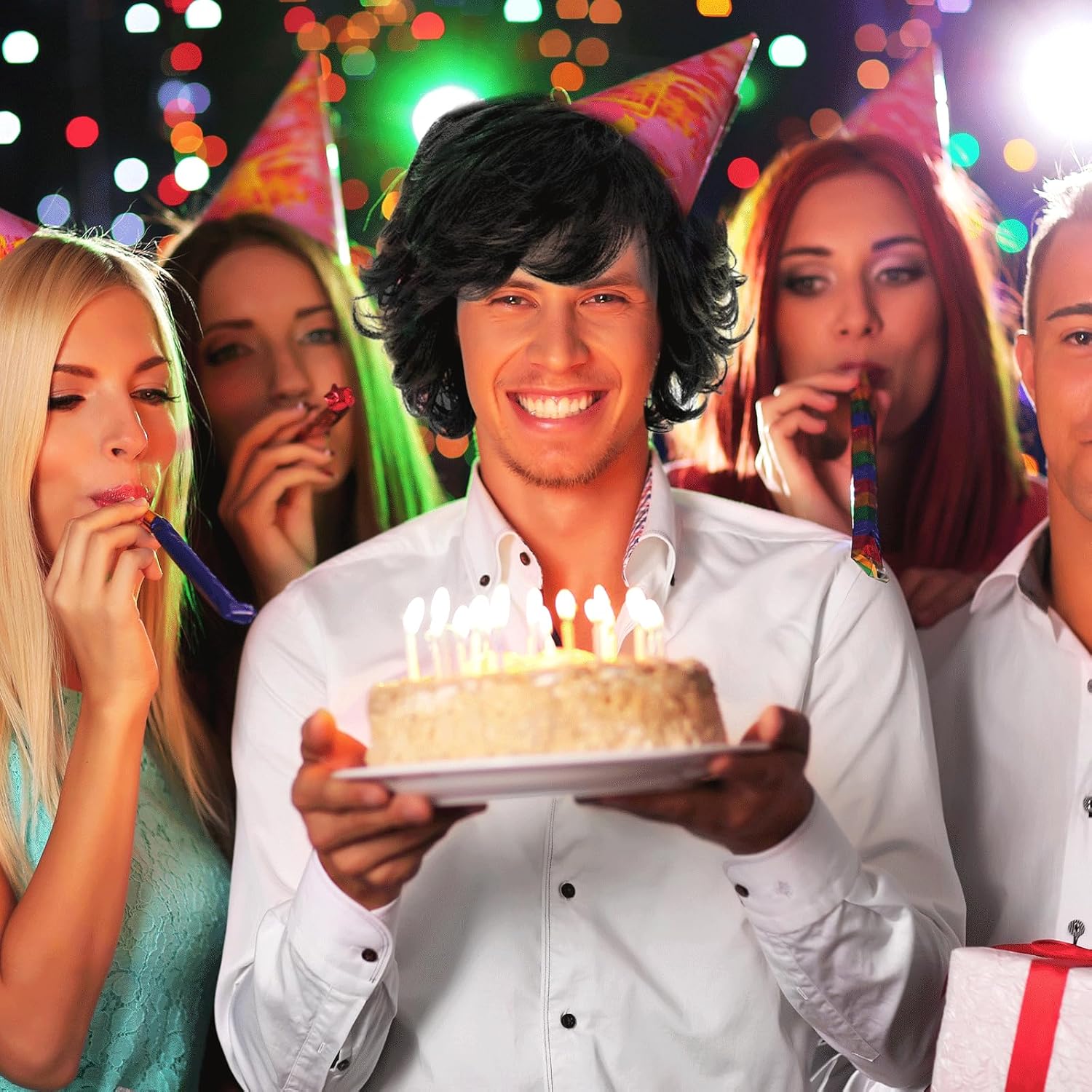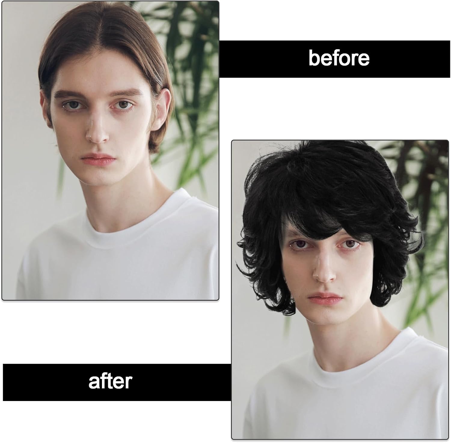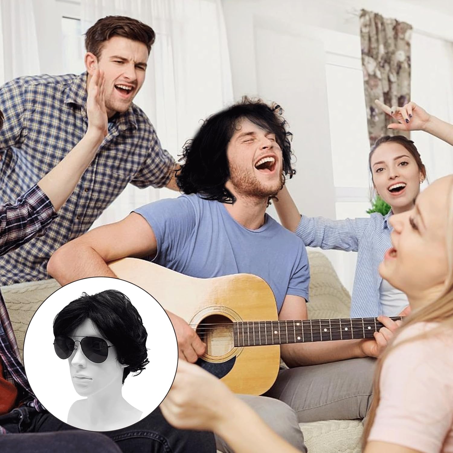 Quantità della confezione: 1 parrucca nera corta, 1 paio di occhiali. MATERIALE: La parrucca è realizzata in fibra di alta qualità resistente al calore, morbida e realistica, si sente come i capelli naturali. Dimensioni della parrucca: la parrucca è adatta a persone con circonferenza della testa di 56-62 cm/22,05-24,41 pollici, regolabile e comprensiva, adatta alla maggior parte degli adolescenti e degli adulti. Design a piacere: la parrucca è piatta quando la si riceve, è possibile utilizzare la cera per capelli per sgranocchiare la forma che si desidera in base alle proprie esigenze di vestizione. OCCASIONI APPLICABILI: Questo set è adatto per feste a tema anni '70 e '80, feste in discoteca, mascherate, cosplay, festival musicali, Halloween, cosplay, convention di anime o abbigliamento quotidiano.