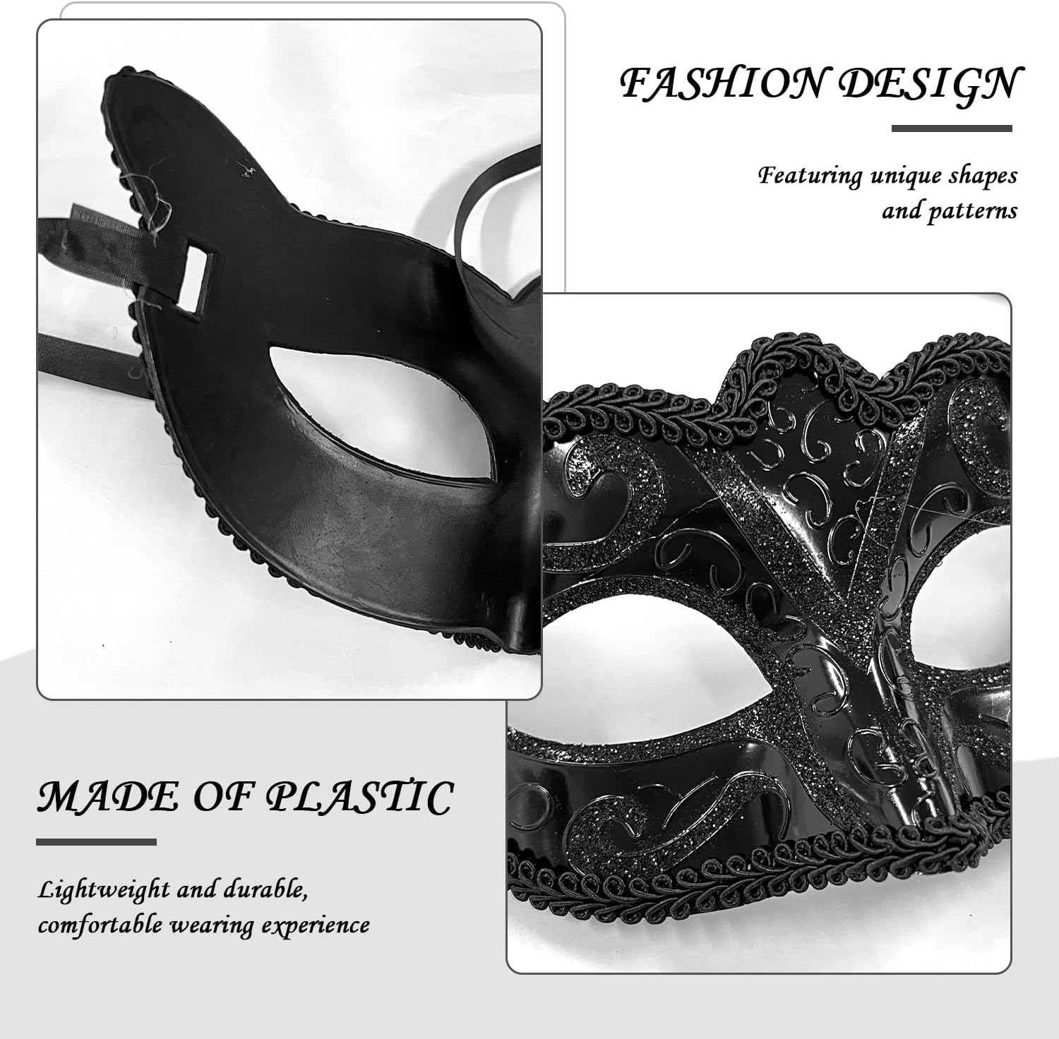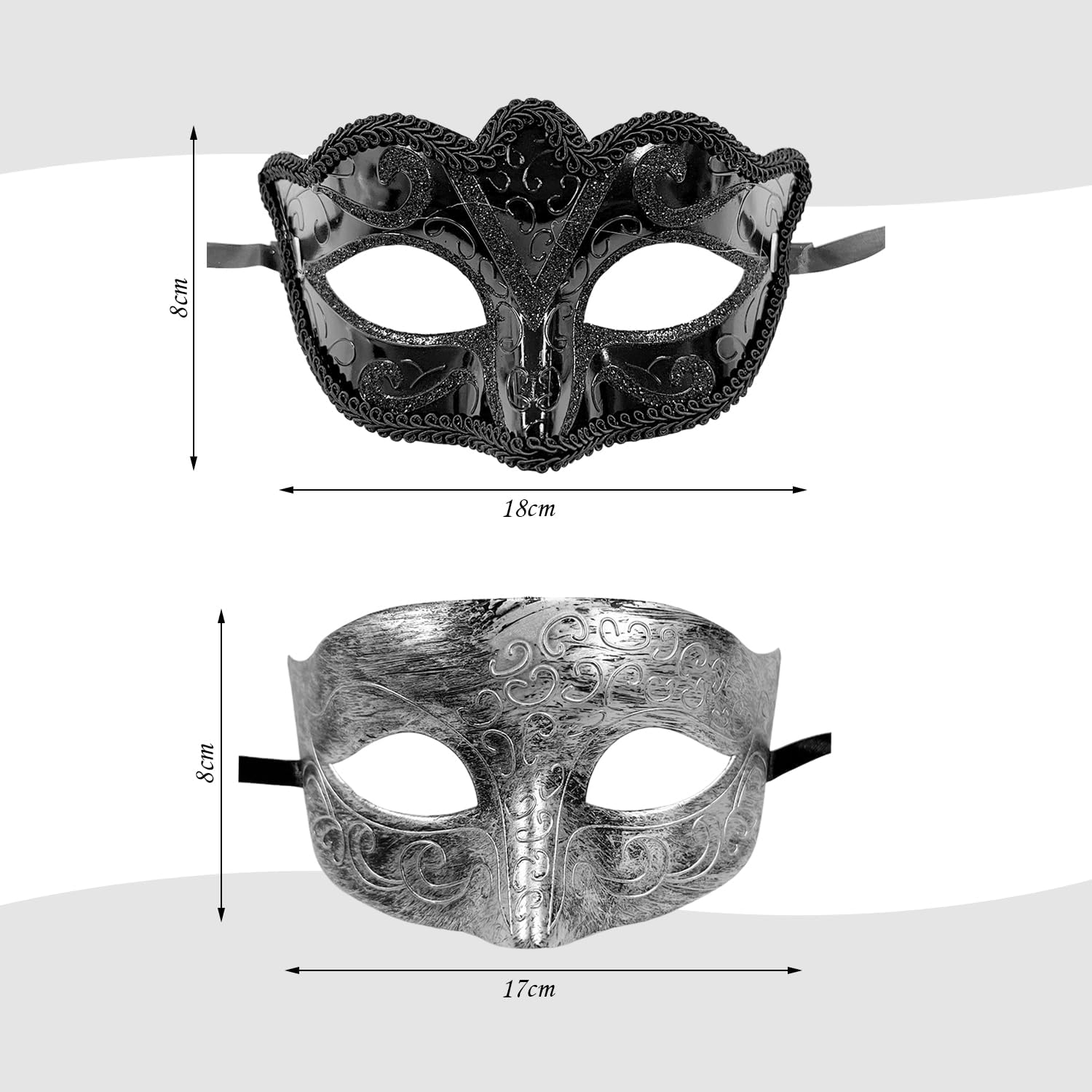 【Contenuto Del Prodotto】 Riceverai 2 Maschere Da Uomo, In Colori Neri E Argentati, Adatti Per Il Gioco Di Ruolo E La Decorazione Delle Feste. 【Materiale Del Prodotto】 Questo Prodotto È Realizzato In Plastica Ed È Leggero E Resistente. Il Materiale Plastico Non Solo Garantisce L'Uso A Lungo Termine Della Maschera, Ma Offre Anche Un'Esperienza Di Usura Comoda. 【Fashion Design】 Questo Prodotto È Progettato Con Stile E Colori Unici. Che Si Tratti Di Una Festa Da Ballo, Di Una Festa O Di Un Evento Di Gioco Di Ruolo, Queste Maschere Possono Aggiungere Divertimento E Mistero Al Tuo Outfit. 【Ampiamente Utilizzato】 Questo Prodotto È Molto Adatto Per Varie Occasioni, Tra Cui Feste Di Danza, Feste Di Trucco, Attività Di Gioco Di Ruolo, Ecc. Non Può Essere Usato Solo Come Decorazione Personale, Ma Anche Come Evento Di Gruppo Per Aumentare Il Divertimento Dell'Interazione. 【Facile Da Indossare】 Questo Prodotto È Semplice Nel Design E Facile Da Indossare. La Maschera È Leggera E Non Scivola Facilmente, Permettendoti Di Stare A Tuo Agio Durante Gli Eventi E Goderti La Festa.