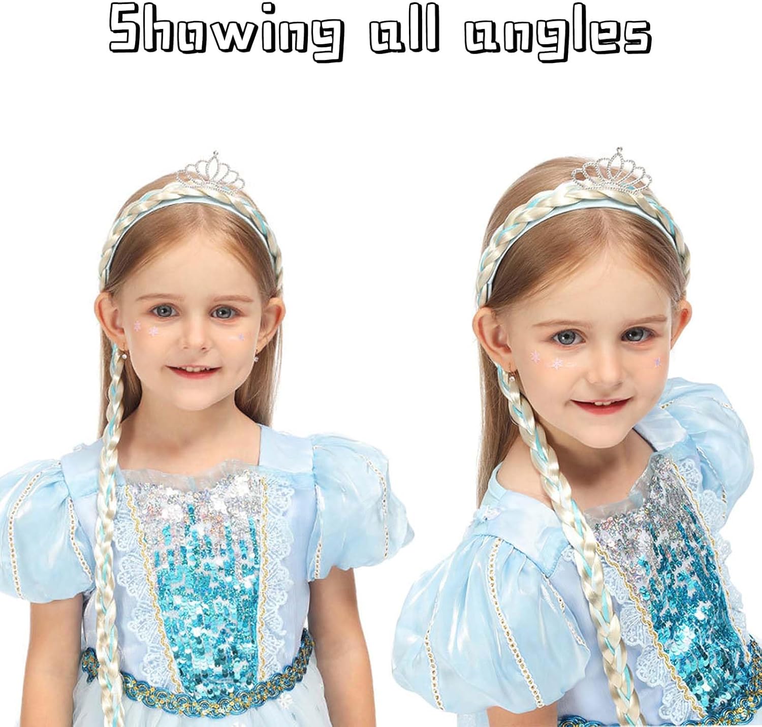 Materiale Pregiato: La fascia per capelli a treccia è realizzata in fibre sintetiche ecologiche, che garantiscono sicurezza e assenza di odori. Leggere e facili da indossare, le trecce sono morbide e lisce, con una buona consistenza. Facile da Indossare: La fascia per capelli a treccia è un modello a cerchio che si adatta rapidamente e in modo sicuro alla testa, con cuscinetti antiscivolo su entrambi i lati della fascia per evitare che la fascia cada. Sicuro: Il vantaggio è che non è necessario rifilarla, la forma è resistente e non si deforma. Assicuratevi che la vostra bambina indossi estensioni per capelli durevoli e chic per tutto il giorno senza alcun rischio. Dimensioni: Riceverete 2 pezzi di parrucche da principessa, il diametro della fascia per capelli è di circa 4,72 pollici e la lunghezza della treccia è di circa 26,37pollici. Ambito di Applicazione: La fascia per capelli intrecciata è adatta a varie occasioni, come laurea, carnevale, festa a tema, concerto, festa all'aperto, ecc.