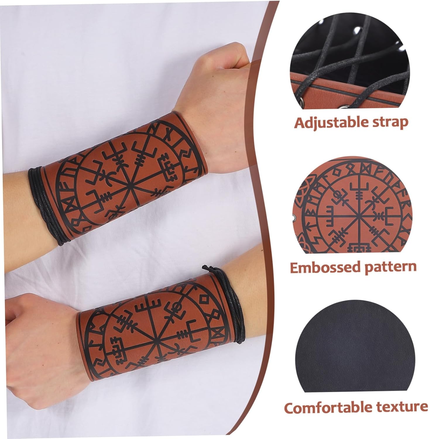 Motivo in rilievo: i nostri braccialetti presentano un design in rilievo, aggiungendo un tocco di autenticità e dettaglio al tuo costume medievale, guardia da polso vintage in rilievo, braccialetto medievale. Stile medievale: i braccialetti sono progettati per aggiungere un tocco di stile storico al tuo look con il loro design classico e colore vintage. Protezioni per i polsi, bracciali medievali Comfort indossabile: Realizzati in materiale PU di alta qualità, i polsini medievali forniscono una consistenza morbida che è vicina alla pelle, rendendoli ideali da indossare tutto il giorno, bracciali, oggetti di scena Accessorio versatile: perfetti per vestirsi come una figura medievale, i nostri bracciali medievali sono una grande aggiunta al tuo guardaroba, bracciali medievali, cinturino da polso medievale Regolazioni di vestibilità: dotati di pratici cinturini I nostri braccialetti ti danno la flessibilità di adattare i tuoi braccialetti al tuo braccio, protezioni per braccia medievali, supporto per il polso
