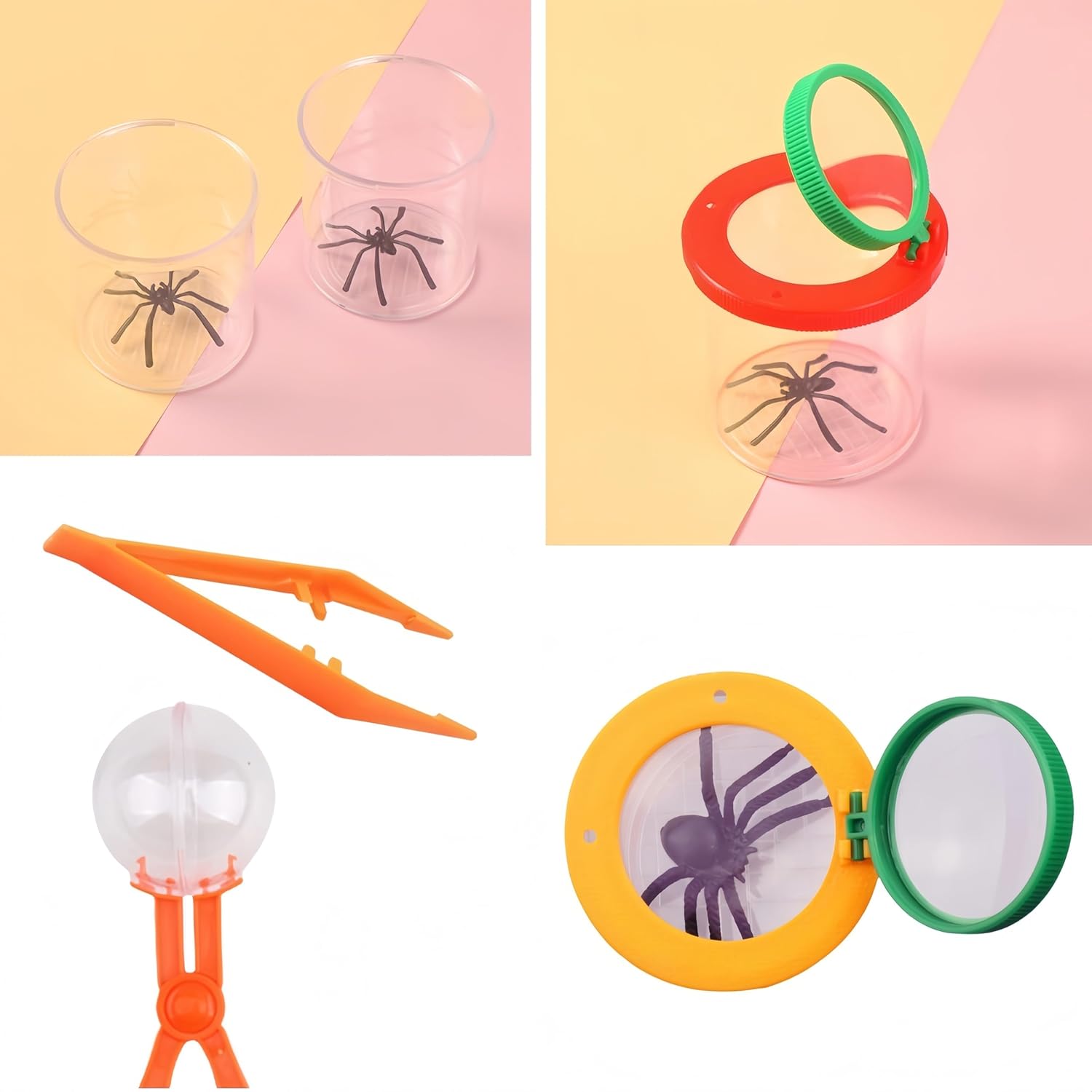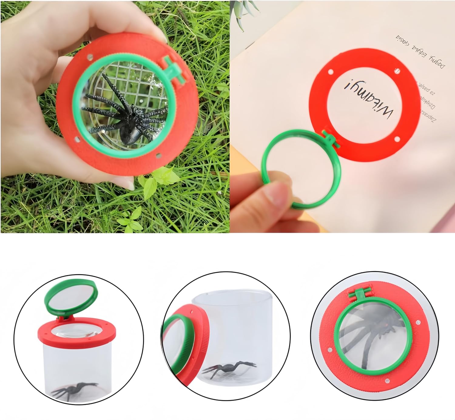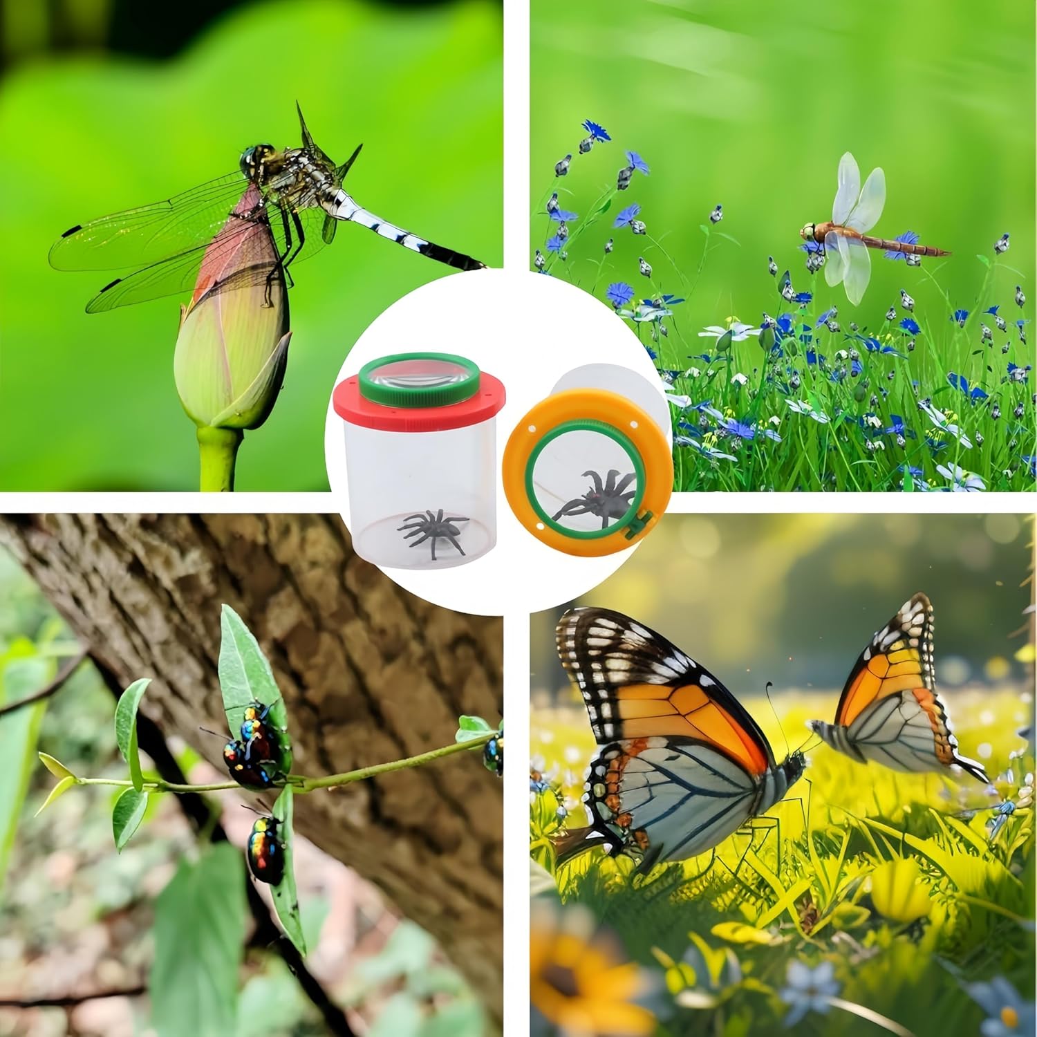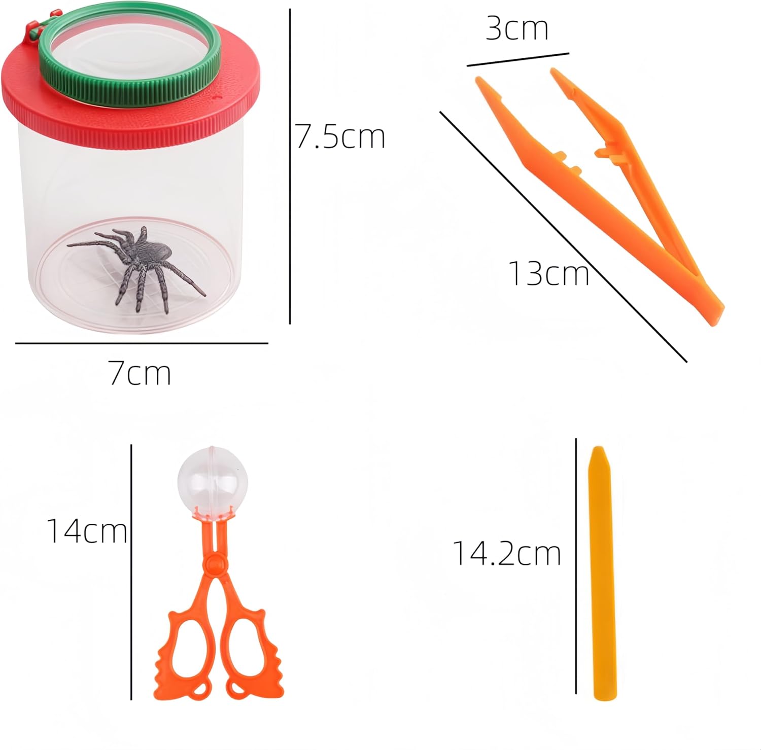 Doppia lente d'ingrandimento: questo set di lenti d'ingrandimento per bambini comprende due lenti trasparenti, ciascuna dotata di una lente d'ingrandimento indipendente da 3x e 6x, per facilitare l'osservazione degli insetti da parte dei bambini. Design ventilato: le lenti d'ingrandimento sono realizzate in robusto plastica ABS e dotate di un coperchio ventilato per garantire un adeguato apporto d'aria agli animali catturati. I bordi arrotondati e la superficie antiscivolo garantiscono una presa sicura per le mani dei più piccoli e incoraggiano il rispetto per gli esseri viventi. Pratico set di 3 accessori per la cattura degli insetti: il set di bicchieri con lente d'ingrandimento per bambini include una pinza per insetti, che consente di catturare delicatamente farfalle o coleotteri; una pinzetta, che consente di afferrare in modo sicuro piccoli oggetti come petali di fiori; e una punta, che consente di trasportare facilmente gli insetti senza danneggiarli. Facile da pulire e resistente: dopo l'uso, la pinza e gli strumenti possono essere facilmente lavati con acqua. Le lenti antigraffio e i materiali resistenti garantiscono un divertimento duraturo senza compromettere la qualità. Facile da trasportare: grazie alle sue dimensioni compatte, il set di lenti di ingrandimento e contenitori per insetti può essere facilmente riposto in uno zaino o in una tasca dei pantaloni, rendendolo perfetto per esplorazioni nella foresta, progetti scolastici o avventure in giardino. I materiali leggeri garantiscono che non ci si stanchi anche dopo un lungo trasporto.