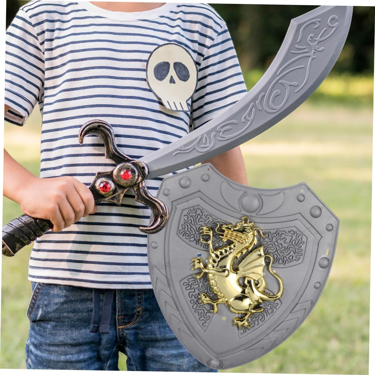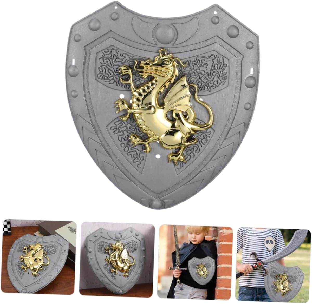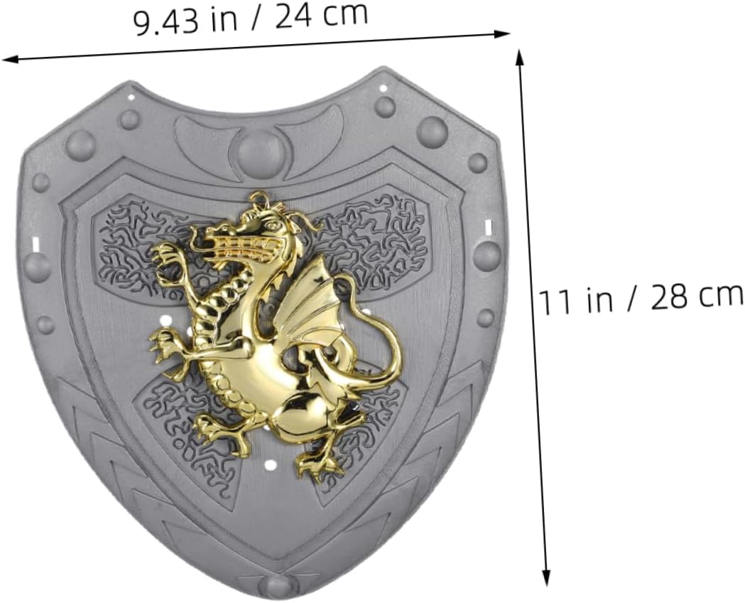Ideale per travestirsi: questo scudo è ideale per travestirsi e giochi di ruolo, aggiungendo un tocco di divertimento a qualsiasi costume, scudo del costume reale o giocattolo del drago medievale Leggero e portatile: facile da trasportare e trasportare, rendendolo una grande aggiunta alla collezione di giocattoli di qualsiasi bambino, travestirsi, vestire lo scudo Design accattivante: il design del drago è accattivante e unico, rendendolo un pezzo straordinario per il gioco dei bambini o eventi in costume, un segno di gioco di ruolo o un accessorio per costumi medievali Design unico: il design a forma di drago è unico e interessante, rendendolo un pezzo eccezionale per tempo di gioco per bambini o evento in costume, cartello per spettacoli, cartello per giocattoli. Ideale per giochi di ruolo: ideale per giochi di ruolo. Questo scudo aggiunge divertimento ed eccitazione nel fingere di essere un cavaliere o un guerriero. Giocattolo scudo per giochi di ruolo, giocattolo scudo vintage