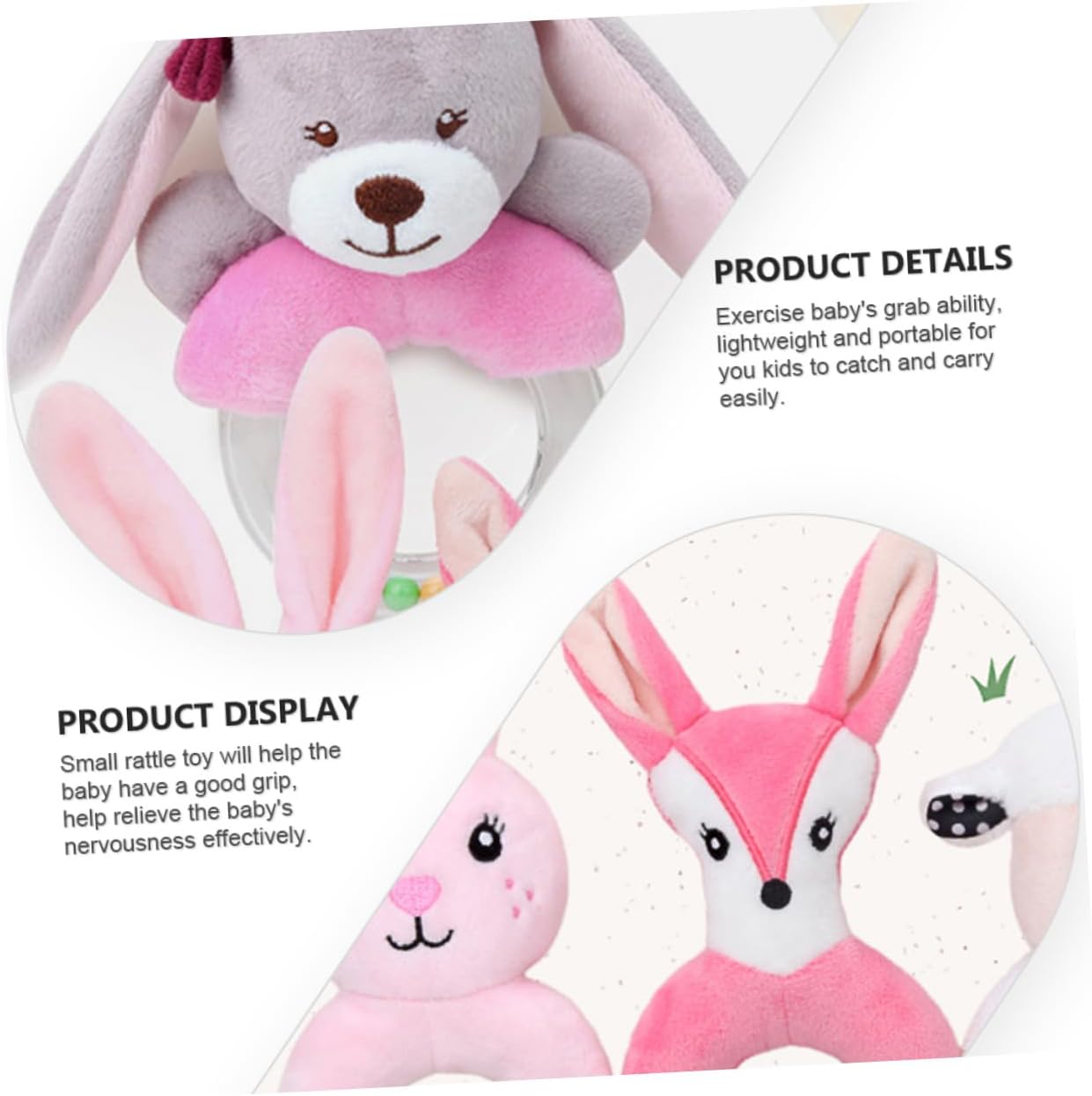 Peluche: realizzato in materiale di peluche di alta qualità e delicato, è durevole e affidabile, sicuro e comodo per l'uso da parte dei , sonaglio a forma di animale dei cartoni animati Sonaglio ad anello: può essere e avrai una delicata sensazione di tocco, il sarà delizioso da tenere e nella sua mano, sonaglio a forma di cartone animato Comodo, portatile e leggero, non sbiadisce né perde dopo il lavaggio, puoi giocare con sicurezza, per neonati A forma di mano per : incoraggia i tuoi a raggiungere con un tocco confortevole, migliora notevolmente la coordinazione occhio-mano del tuo , a forma di cartone animato Per : attirerà notevolmente l'attenzione del , creativo e giocabile per far divertire di più il , ad anello