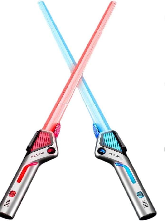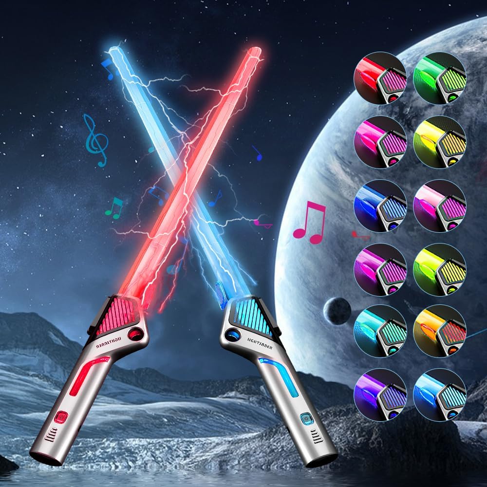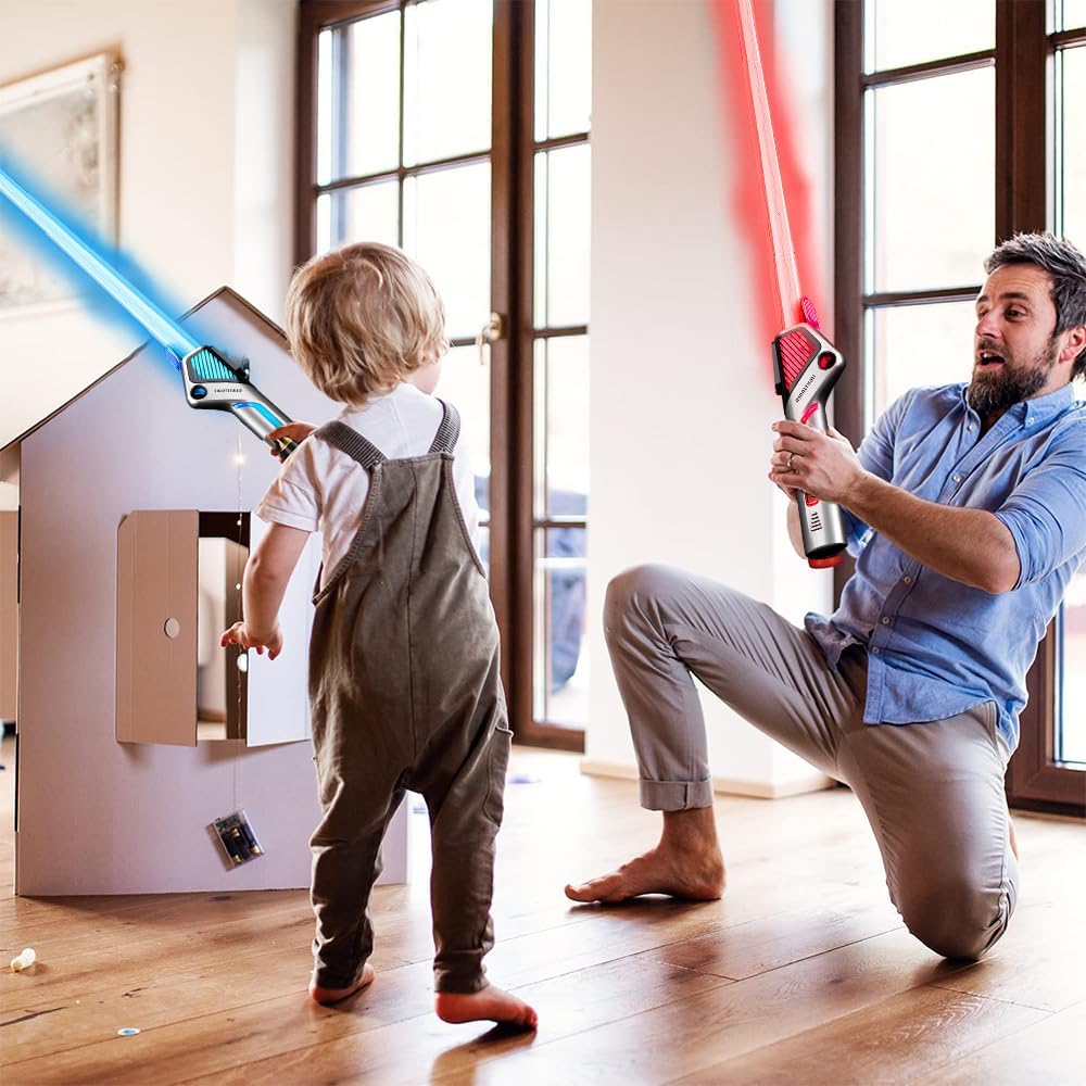 【Spada laser retrattile 2 in 1】 Questo set include due spade laser retrattili per bambini. Ogni spada laser è retrattile; con un solo movimento, la spada laser può essere facilmente estesa fino a 70 cm, consentendo ai bambini di adattare la lunghezza della spada laser alle proprie esigenze e ai requisiti del gioco. 【12 colori ed effetti sonori】 La spada laser per bambini offre 12 diversi colori tra cui scegliere. Un semplice clic sull'interruttore consente di passare da un colore all'altro. È dotata di un generatore di suoni integrato in grado di produrre suoni simulati chiari e realistici quando viene colpita, rendendola l'accessorio perfetto per i giochi di ruolo. 【Ricaricabile tramite USB】 Questa spada laser per bambini è dotata di una batteria integrata ad alta capacità. Una volta ricevuta la spada laser, non sono necessarie batterie; è sufficiente tenere premuto l'interruttore per attivarla. È incluso anche un cavo USB per la ricarica in qualsiasi momento. 【Materiali di alta qualità】Il corpo principale della spada laser per bambini è realizzato in plastica di alta qualità, con un aspetto liscio, una struttura leggera, stabile e resistente, che garantisce che non si rompa facilmente, anche durante intense attività di gioco, rendendola molto resistente. 【Regalo perfetto】La spada laser per bambini è perfetta per feste a tema guerriero cosplay, feste in maschera di Halloween, regali di compleanno, regali di Natale e molto altro! Usa la tua infinita immaginazione con la famiglia e gli amici per creare una meravigliosa esperienza di gioco di combattimento.