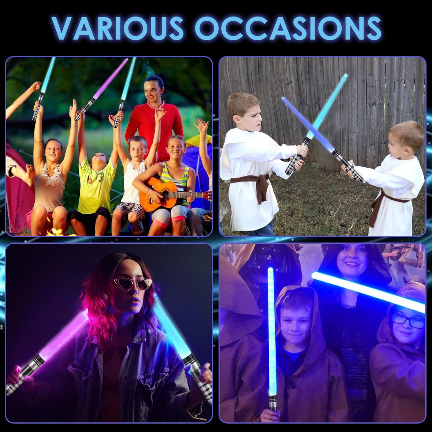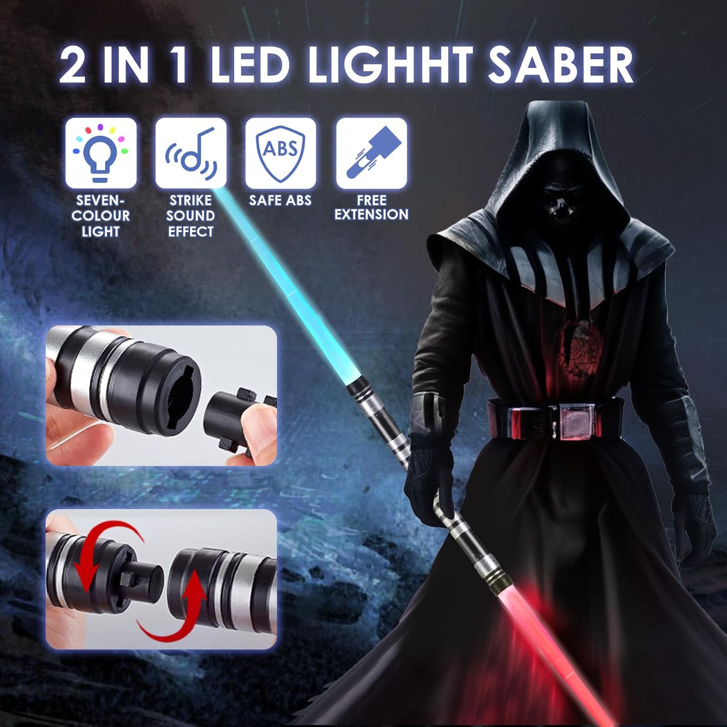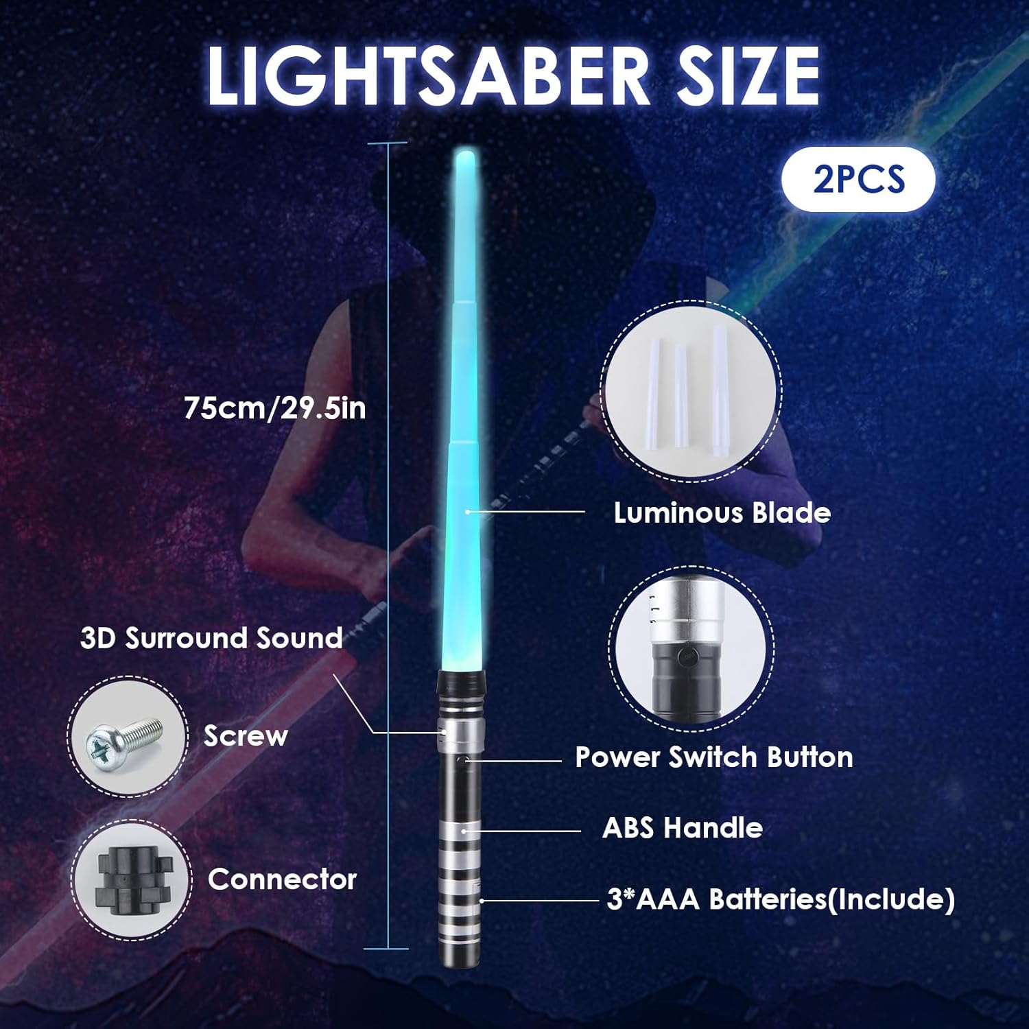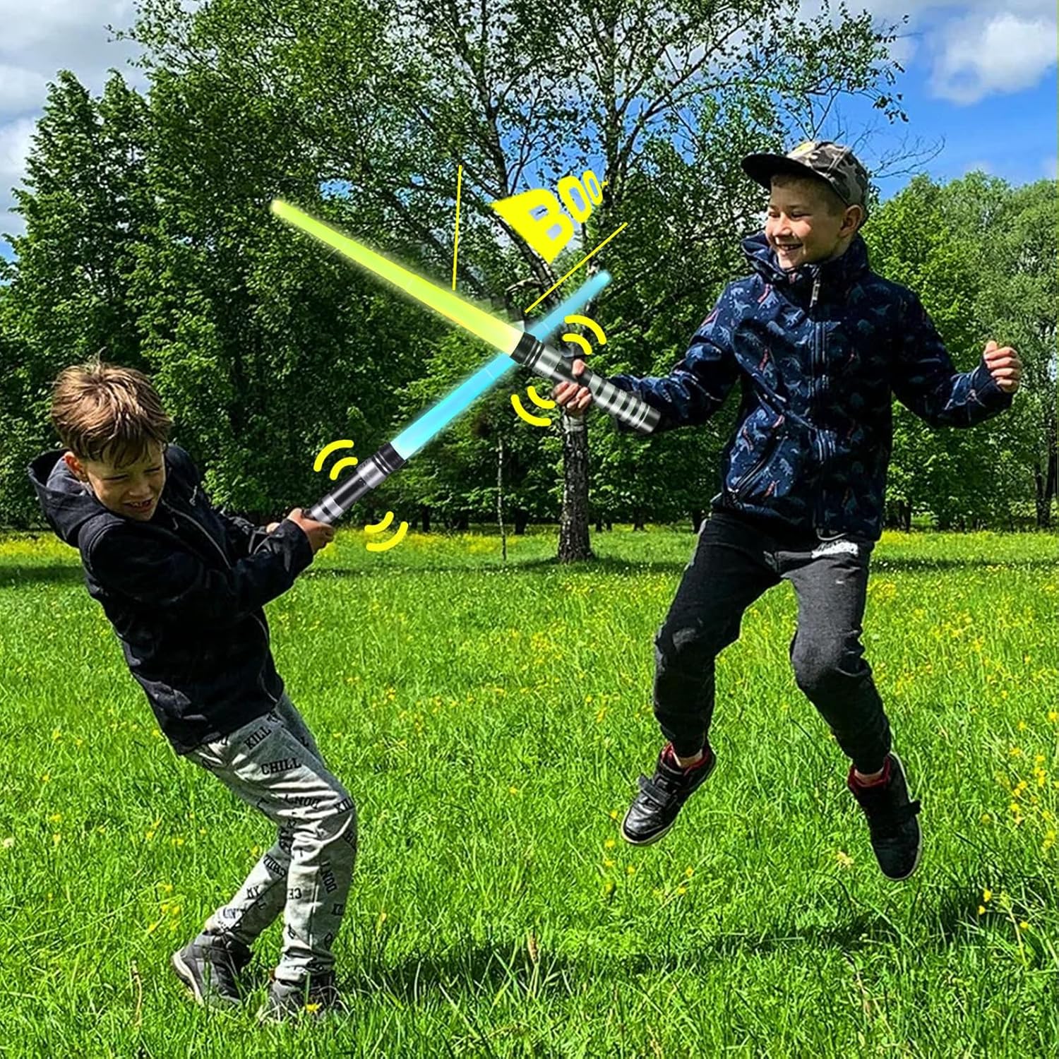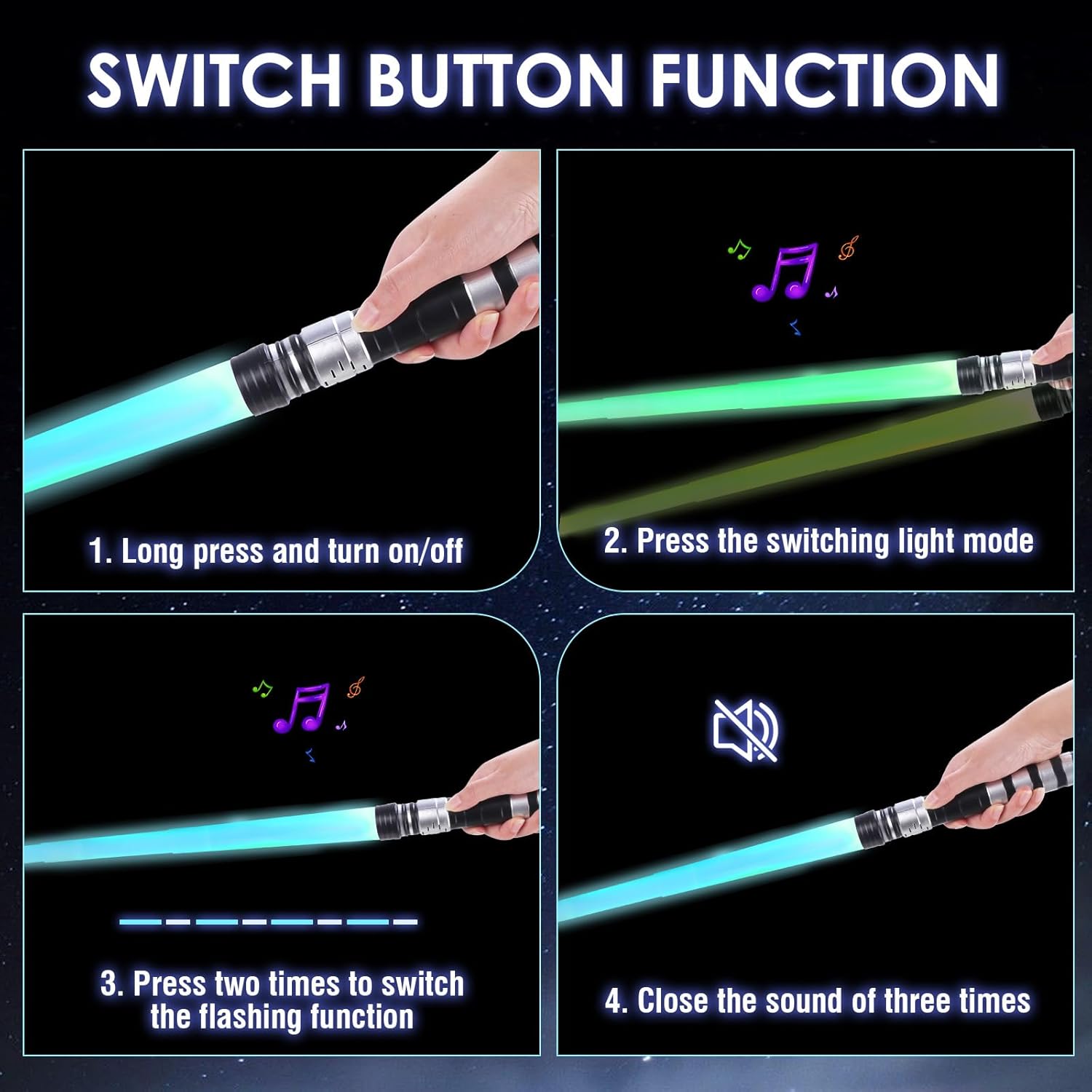 ⚔️【Effetti di luce e suono fantastici】 Il generatore di suoni integrato sull'elsa della spada laser produce un suono chiaro e vibrante quando viene colpita. Offre 7 cambi di colore, modalità di lampeggiamento commutabili, si illumina al buio e illumina la scena, attirando l'attenzione dei bambini.(NOTA: 3 batterie AAA incluse.) ⚔️【Materiali durevoli】 Le spade laser per bambini sono realizzate in plastica di alta qualità e presentano un design antiscivolo, liscio e raffinato. Le spade laser a LED sono comode da riporre e trasportare sia all'interno che all'esterno. Le spade laser possono ridurre il tempo che i bambini trascorrono sui dispositivi elettronici e prevenire la dipendenza dal gioco. Dai libero sfogo alla tua immaginazione e crea una fantastica esperienza di gioco di combattimento con la famiglia. ⚔️【Facile da usare】 Premere a lungo per accendere/spegnere. Dopo l'accensione, la spada laser cambia colore a ogni pressione. Sono disponibili sette colori in totale. Premendo due volte rapidamente si attiva la funzione lampeggiante. Premendo tre volte si disattiva il suono. ⚔️【Usi versatili】 La spada luminosa con suono è adatta per feste a tema battaglia, come accessorio per costumi di Halloween, per alleviare lo stress in ufficio, per spettacoli, film o come oggetto di scena e dolcetto per cosplay. Un regalo ideale per Halloween o compleanno per bambini. ⚔️【Perfetto per i bambini】 Regalo perfetto per bambini dai 3 anni in su. I bambini possono divertirsi con emozionanti giochi di ruolo e battaglie simulate come guerrieri o personaggi di altre serie e film popolari, per feste di cosplay, feste in maschera, feste in maschera di Halloween, feste di compleanno o grandi carnevali. Le spade laser saranno il regalo più popolare!