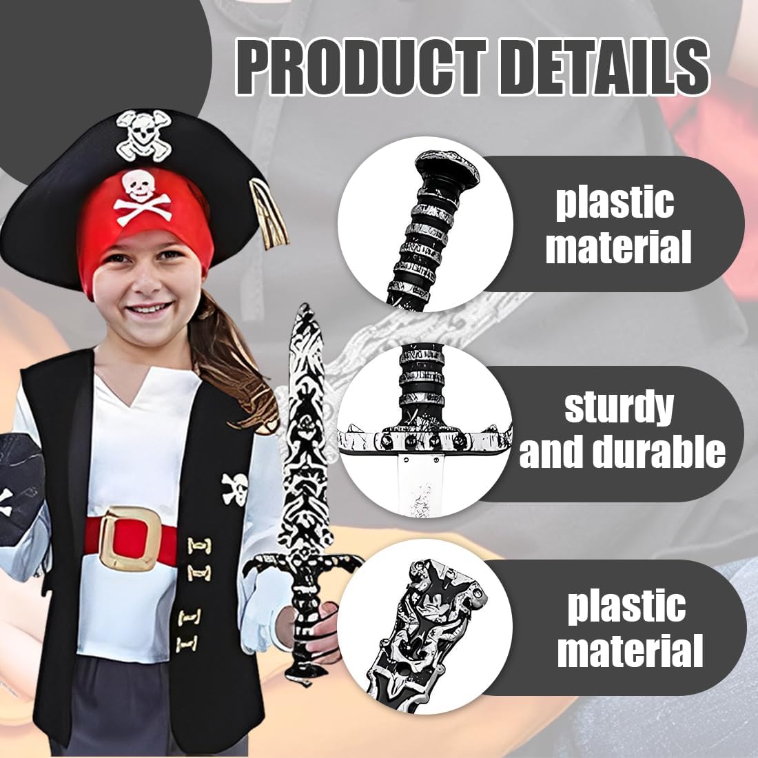 【Materiali di Alta Qualità】 Le nostre spade in plastica sono realizzate con materiali durevoli e resistenti agli urti, garantendo un uso prolungato senza rischio di rottura. I bordi arrotondati mantengono i bambini al sicuro, prevenendo lesioni accidentali e consentendo loro di giocare liberamente e con sicurezza. 【Design abbagliante】Ogni spada presenta un elegante design retrò in argento, ispirato alle antiche armi dei pirati. La sua superficie accuratamente realizzata e le linee fluide invitano i bambini a immergersi nei loro giochi di ruolo, stimolando la loro immaginazione e aggiungendo un tocco di autenticità alle loro epiche avventure. 【Design pratico】 Con una lunghezza di 24,5 cm, questa spada è perfettamente adatta alle mani piccole. Il suo peso leggero e la sua impugnatura ergonomica consentono una facile maneggevolezza, garantendo che i bambini possano giocare per ore senza affaticarsi. Un giocattolo che unisce piacere e comodità! 【Trasporto facile】 Grazie alle sue dimensioni compatte e alla sua leggerezza, questa spada è ideale per essere portata ovunque. Che si tratti di uscite al parco o di feste di compleanno, i bambini potranno portarlo facilmente con sé, permettendo loro di vivere avventure emozionanti ovunque si trovino. 【Regalo perfetto】 Questa spada di plastica è il regalo ideale per tutti i giovani avventurieri. Che si tratti di un compleanno, di una festa a tema o di un'altra occasione festiva, questo accessorio di gioco incoraggia l'esplorazione e la creatività, promettendo ore di divertimento e gioco fantasioso.