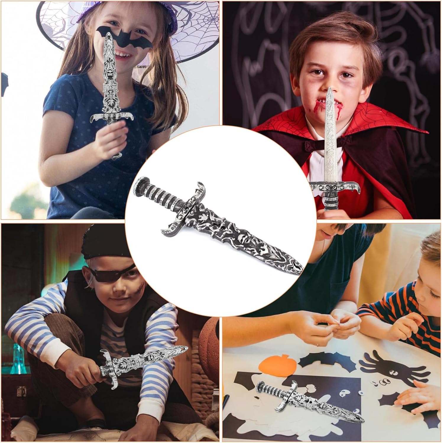 Materiali di Alta Qualità: la spade giocattolo con pugnale di plastica è realizzata in plastica, che è durevole e ha un'elevata resistenza alla pressione e agli urti. Non è facile da rompere o frantumare. I bordi e le punte della spada pirata adulto con pugnale di plastica sono stati elaborati e progettati in una forma arrotondata per evitare graffi accidentali, assicurandoti di non pugnalare accidentalmente te stesso o gli altri durante il gioco Design Unico: la spada pirata con pugnale di plastica utilizza un colore argento retrò attentamente modulato e la superficie è trattata con uno speciale processo. Le linee del corpo della spada sono lisce e naturali, ripristinando perfettamente lo stile classico delle antiche armi dei pirati. L'effetto retrò realistico consente ai bambini di entrare più velocemente nello stato di gioco di ruolo, stimola l'immaginazione e la creatività dei bambini e fa sì che i bambini lo amino Facile da Usare: la spada giocattolo con pugnale di plastica è facile da usare. Basta premere delicatamente il pugnale e i due piccoli grani rotondi sulla parte superiore possono essere incastonati nel fodero. Questo design rende la spada da pirata con pugnale di plastica fissata estremamente stabile, evitando efficacemente il problema della separazione accidentale del corpo della spada durante il gioco. Sia gli adulti che i bambini possono iniziare rapidamente e divertirsi Facile da Trasportare: Questa pugnale a pugnale di plastica è lunga 24,5 cm e leggera, il che è molto adatto per le piccole mani dei bambini da afferrare e maneggiare. L'impugnatura della spada pirata bambino a pugnale di plastica adotta il principio di design ergonomico, che considera pienamente la struttura della mano dell'utente e le abitudini di presa. Anche se la porti per molto tempo, non sentirai affaticamento della mano Regalo Perfetto: Questa sciabola pirata a pugnale di plastica è un regalo speciale per tutti. Può essere utilizzata come oggetto di scena nei giochi per bambini per aumentare il divertimento del gioco e incoraggiare il destinatario a esplorare, creare e sognare. Che si tratti di un compleanno, di una festa o di un'altra occasione celebrativa, la coltello finto a pugnale di plastica è la scelta migliore per trasmettere i tuoi pensieri e la tua gioia
