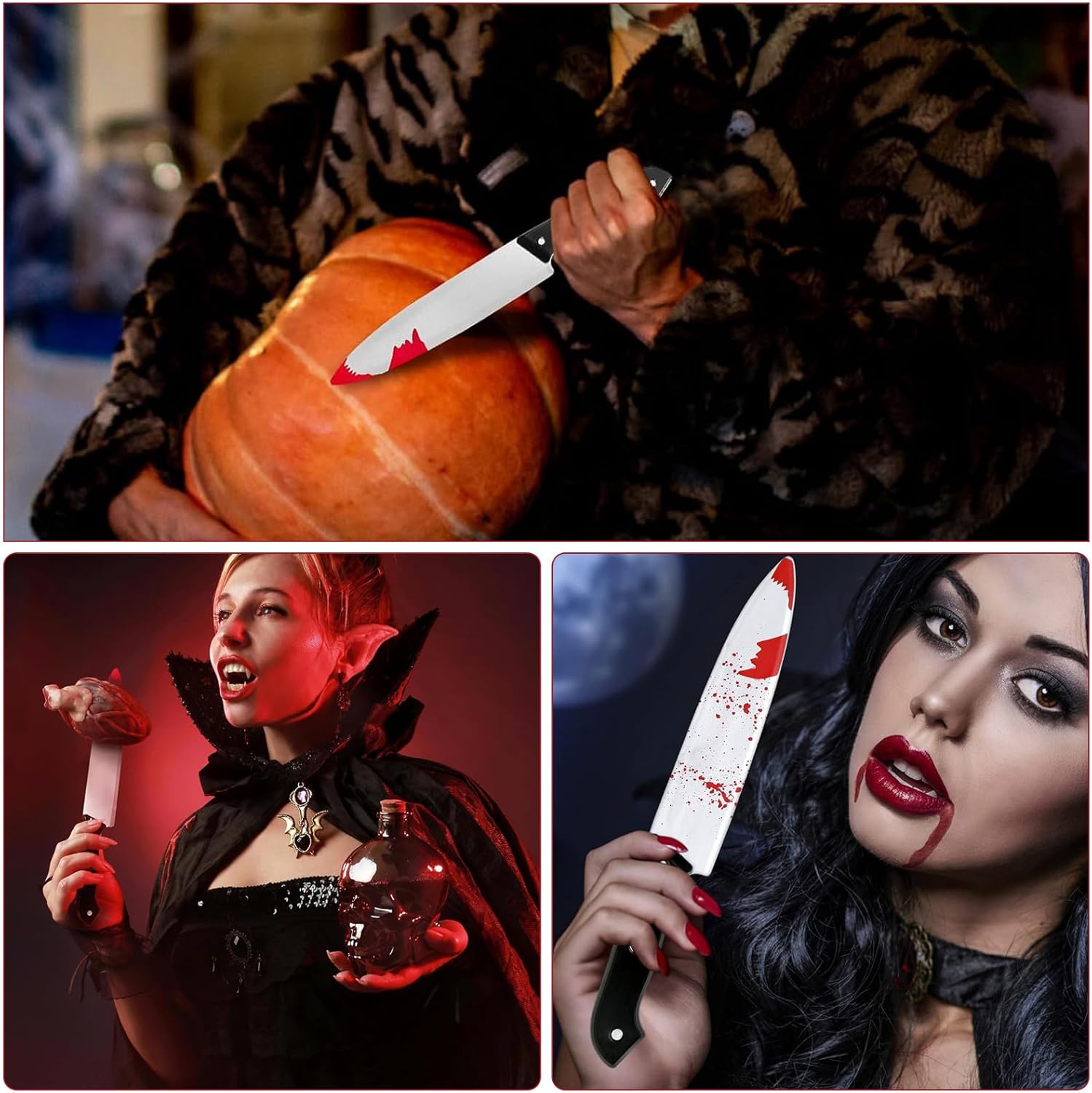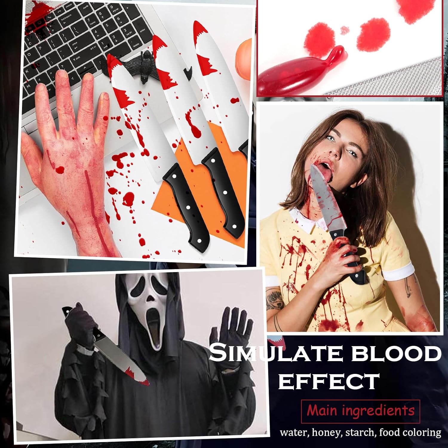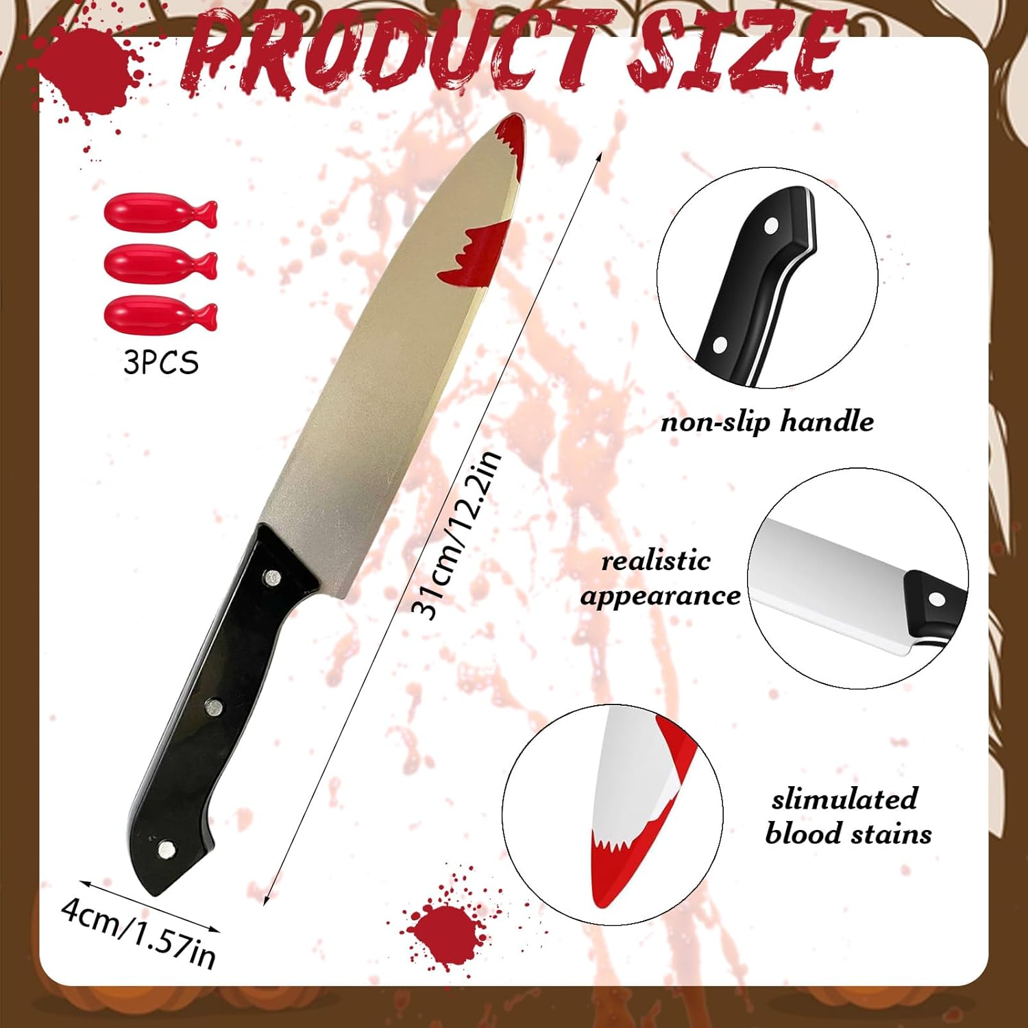 Materiale di Alta Qualità: Coltello finto è realizzato in plastica e soddisfa gli standard di sicurezza pertinenti. Durante il processo di produzione, i bordi e le punte di sono appositamente trattati per renderli lisci e arrotondati, e non presentano lame affilate come i veri coltelli, in modo da evitare graffi accidentali sulla pelle durante l'uso. coltello scream non arreca danni alla salute umana e può garantire la sicurezza anche se i bambini lo toccano o ci giocano Robusto e Durevole: Materiale plastico selezionato da coltello halloween ha una certa durezza e resistenza, può resistere a un certo grado di estrusione, collisione e torsione, non si rompe o si deforma facilmente e può essere riutilizzato più volte per soddisfare le esigenze di varie scene di Halloween. coltello finto halloween non è solo comodo da trasportare e riporre, ma si adatta anche meglio ai movimenti umani durante l'uso, aumentando la naturalezza e il realismo della performance Design Realistico: Coltelli finti halloween, per ottenere un effetto sanguinolento realistico, un liquido o un gel rosso viene applicato sulla punta o sulla lama del coltello per simulare il flusso e la coagulazione del sangue. Queste sostanze rosse hanno solitamente un colore e una consistenza simili al sangue vero. Sotto l'irradiazione luminosa, coltello plastica halloween può produrre un effetto riflettente realistico, dando la sensazione che il coltello sia davvero ricoperto di sangue Manutenzione e Conservazione: Coltello giocattolo halloween Se la parte insanguinata è liquida o gelatinosa, pulire la lama con un panno umido dopo l'uso per evitare residui rossi e macchie a lungo termine; coltello finto halloween testa dovrebbe evitare l'esposizione prolungata alla luce solare o ad ambienti ad alte temperature per prevenire l'invecchiamento e la deformazione dei materiali plastici; si consiglia di utilizzare sacchetti di stoffa o scatole di carta per la conservazione per prevenire l'accumulo di polvere e danni da estrusione della lama Decorazione: Appendere coltelli halloween a pareti, stipiti di porte, rami o ambientazioni horror e abbinarli a sangue finto, bende, teschi e altri oggetti di scena per migliorare l'atmosfera horror. Ad esempio, per decorazioni d'interni a tema Halloween, inserire coltello giocattolo accanto al modello di cadavere finto o fissarlo sulla ragnatela all'ingresso