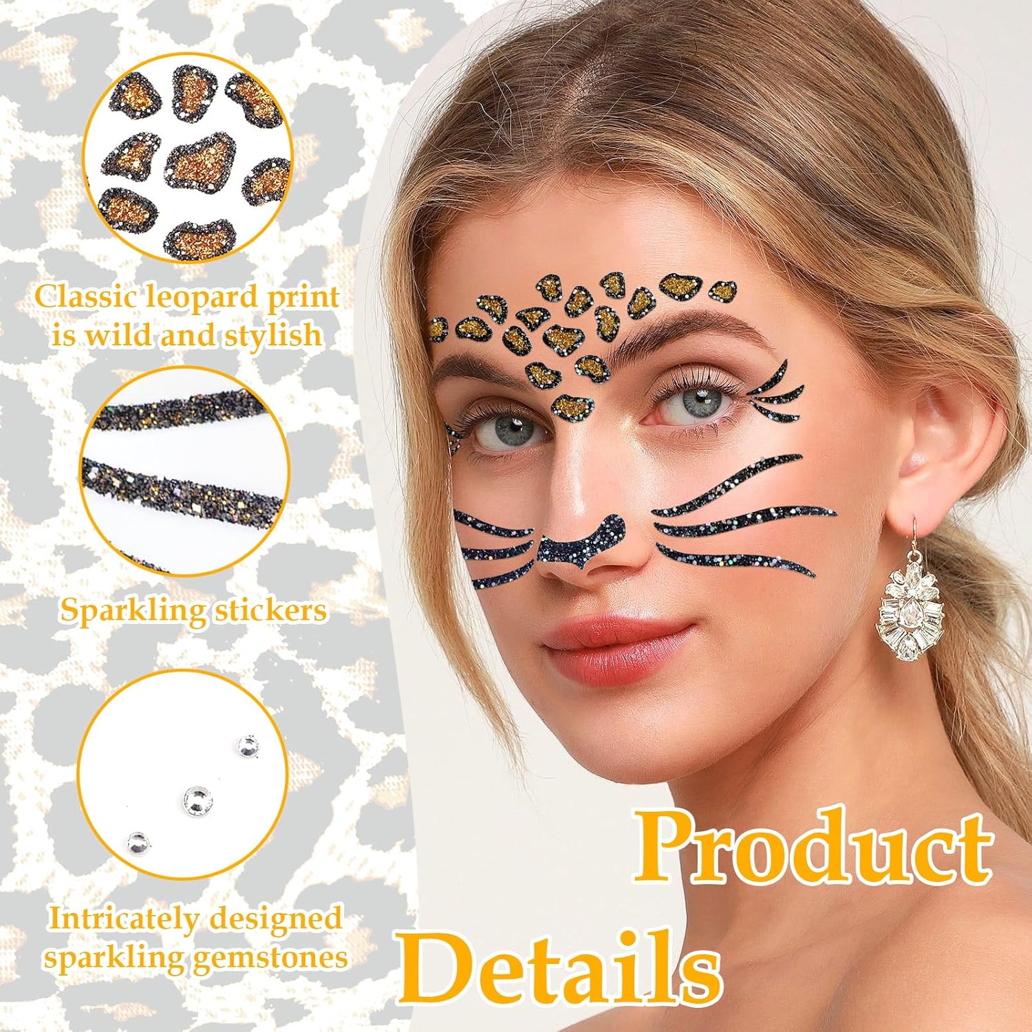 【Realistico e Accattivante】: Questi tatuaggi facciali presentano vivaci stampe leopardate perfette per il Martedì Grasso, Halloween e altri eventi a tema. I sottili motivi leopardati, le macchie con strass e le linee scintillanti creano un look sorprendente, perfetto da abbinare ai costumi animali o al trucco creativo. Molto accattivanti in ogni festa! 【Facile da Applicare e Sicuro】: Grazie alla tecnologia autoadesiva, i tatuaggi possono essere applicati in modo facile e veloce. È sufficiente rimuovere la pellicola protettiva, attaccarla alla pelle, inumidirla con acqua e staccarla per far aderire perfettamente il tatuaggio! Il materiale è delicato sulla pelle e può essere facilmente rimosso senza lasciare residui o irritazioni. 【Anti-fouling di Lunga Durata】: Il tatuaggio è impermeabile, resistente al sudore e dura fino a 24 ore, quindi potete festeggiare in tutta tranquillità. Che si balli, si sudi o si rida, il tatuaggio rimane al suo posto e non sbiadisce. Quando la festa è finita, basta rimuoverlo con uno struccante o con acqua e sapone. 【Perfetto per i Festival】: Che si tratti di un rave, di una mascherata, di un cosplay, di una festa a tema o di un festival, questi tatuaggi sono l'accompagnamento perfetto per qualsiasi outfit creativo. Aggiungono un aspetto misterioso e seducente da gatta selvatica al vostro look che piacerà a grandi e piccini. Un must per chi vuole distinguersi dalla massa! 【Versatile】: Questo set contiene due diversi tatuaggi leopardati che possono essere indossati singolarmente o in combinazione. È possibile applicare i tatuaggi su guance, fronte, mento o anche su braccia e collo per creare un look personalizzato. Perfetto per un make-up creativo e per travestimenti di grande effetto!