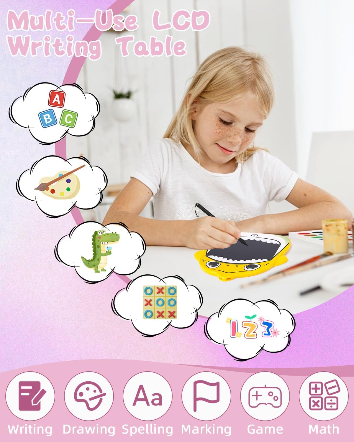 Lavagna magica portatile: la tavola da disegno ha un nastro sulla parte superiore con cordino in modo da poter attaccare la simpatica figuretta a uno zaino, un contenitore per il pranzo o ovunque tu voglia portarla in viaggio. Schermo Ultra HD e più chiaro: questa lavagna per scrittura utilizza uno schermo LCD HD da 4,5 pollici con tecnologia ad alta sensibilità e linee di colore luminose senza radiazioni per evitare luce blu e abbagliamento, riducendo i danni agli occhi dei bambini durante l'uso. È un giocattolo educativo sicuro e perfetto per i bambini. Uso più creativo e versatile: questa lavagna per la scrittura può essere utilizzata per scrivere, dipingere, contare, giocare e fare graffiti. Può migliorare l'immaginazione, la capacità di apprendimento e l'espressione dei bambini ed è un giocattolo sensoriale. È leggero e portatile, facile da usare a casa, a scuola o all'aperto. Facile da usare, comoda: questa lavagna LCD è facile da scrivere e cancellare con una sola pressione grazie alla penna in plastica inclusa. Facile da usare, niente più disordine, polvere di gesso e rumore in casa. Con la lavagna per graffiti i genitori possono godersi dei meravigliosi momenti tra genitori e figli con i propri figli. Regalo di Natale creativo: regalo perfetto per ragazzi e ragazze di 3, 4, 5, 6, 7, 8 anni per Capodanno, compleanno, festa dei bambini, Pasqua, Ringraziamento, Natale, ritorno a scuola, scuola a casa e ogni occasione!