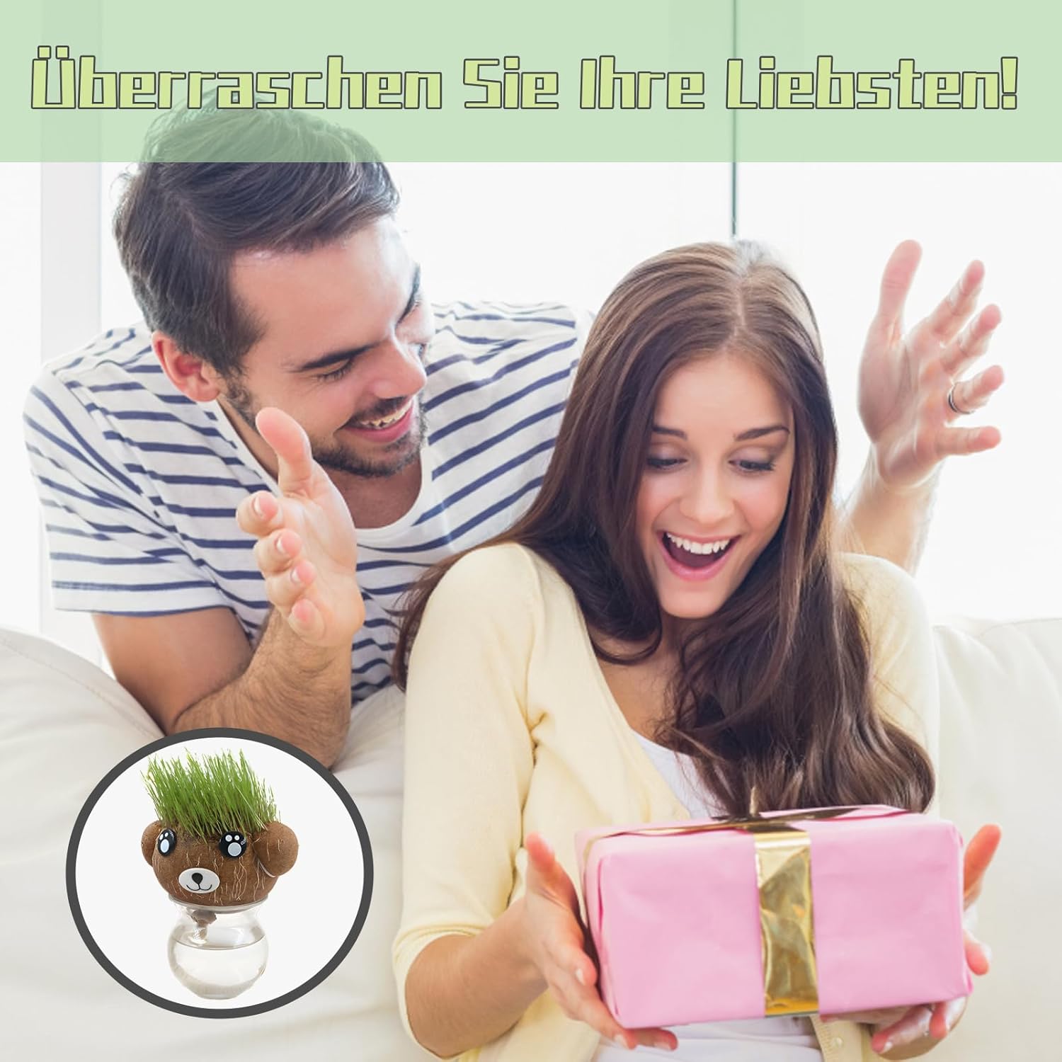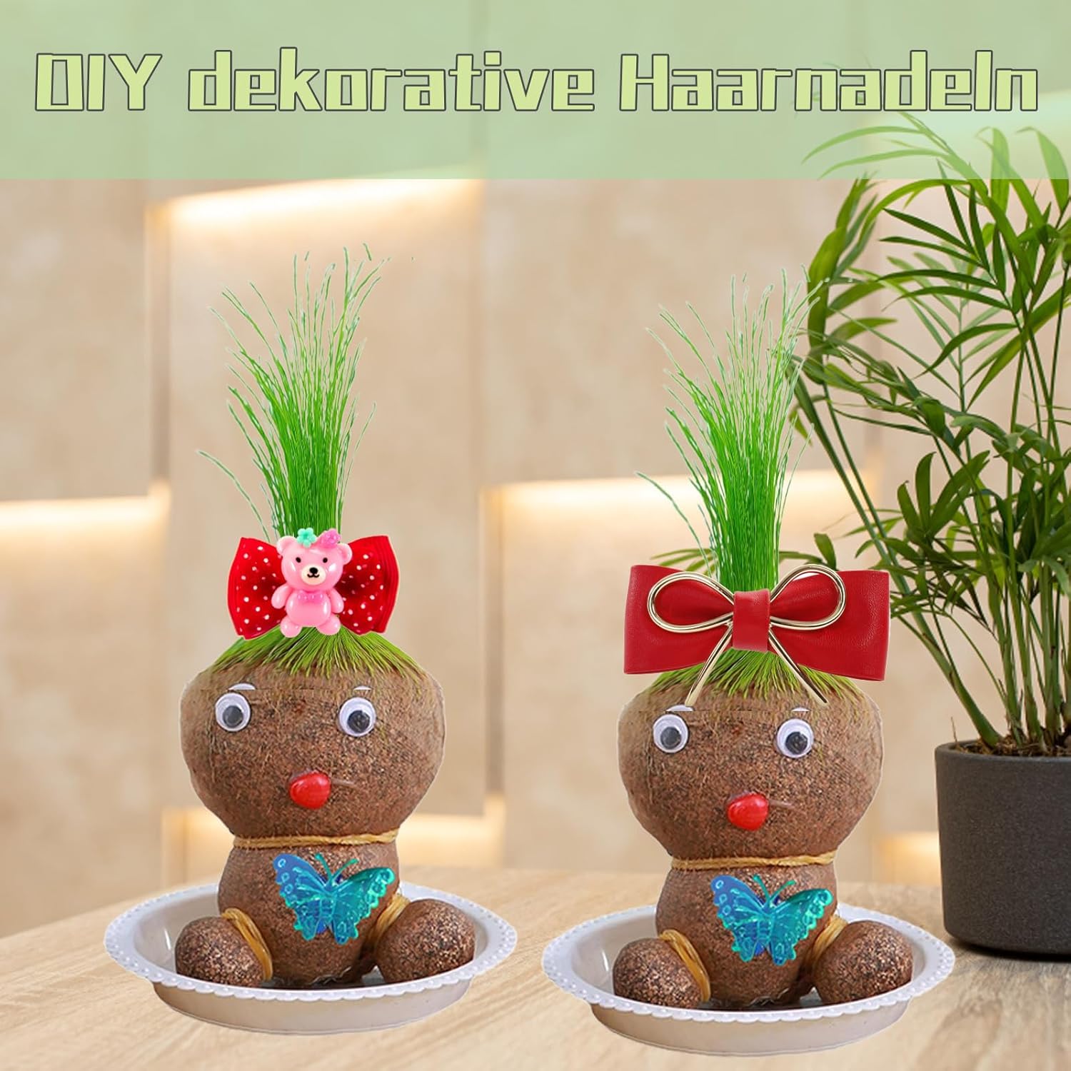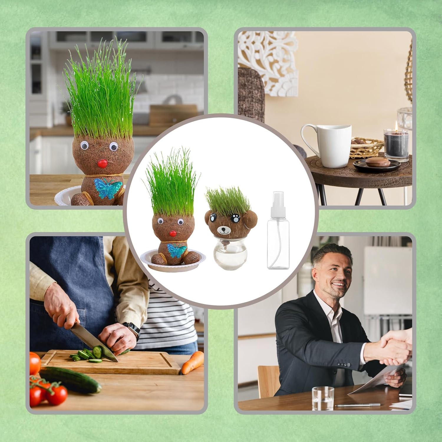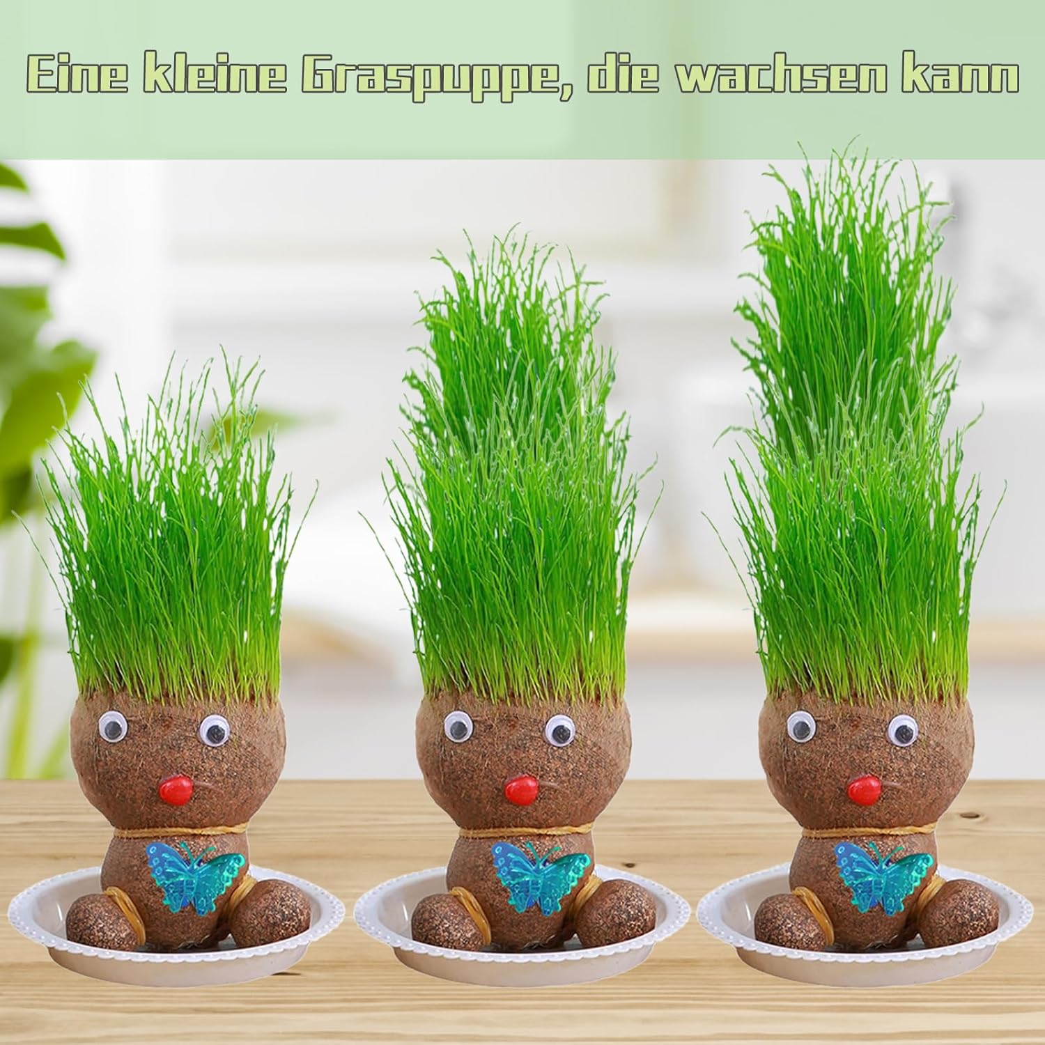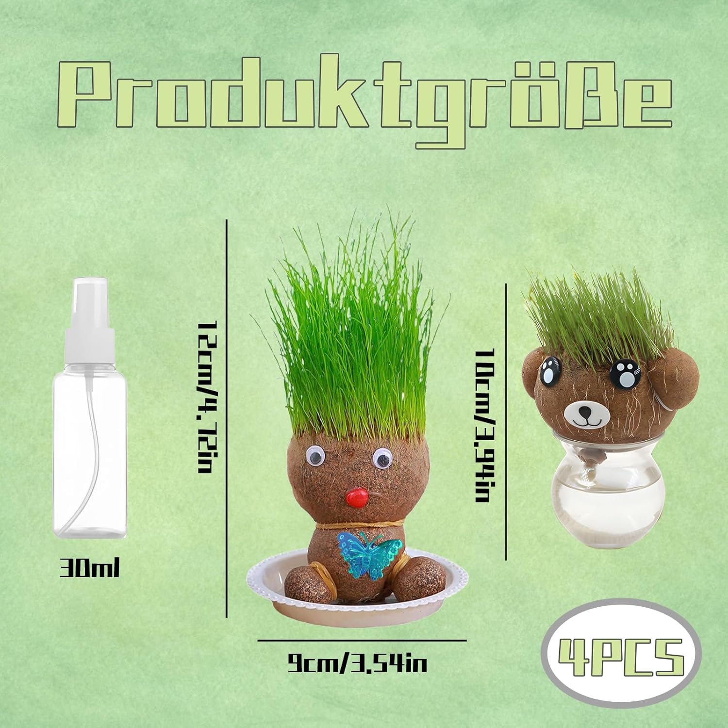 Materiali di alta qualità: la testa dell'erba è realizzata con materiali di alta qualità durevoli e durevoli, che offrono un bell'aspetto e non sbiadiscono facilmente, mantenendo la bellezza della vostra stanza per un lungo periodo di tempo. Facile da usare: basta immergere la testa d'erba in acqua per 30 minuti per migliorare le tue abilità di giardinaggio. Mantieni le piante umide spruzzandole delicatamente con un flacone spray regolarmente, la cura non è mai stata così facile! Il pacchetto include: ogni set di 4 paglia contiene due bambole da prato, un vassoio e un flacone spray con tutto il necessario per il tuo giardino. Rendi le bambole da prato il tuo compagno quotidiano e sperimenta la felicità sempre e ovunque! Esperienza creativa fai da te: innaffia la testa (schiena) delle piante e guarda come i bei "capelli" verdi (erba) crescono in pochi giorni. Puoi tagliare e modellare liberamente queste piante, perché le teste d'erba si rigenerano costantemente e rimangono verdi tutto l'anno. Multiuso: la testa del vaso di fiori è la decorazione perfetta per case, uffici o giardini, aggiungendo decorazioni vivaci e naturali a qualsiasi stanza, sia alla moda che rilassante.