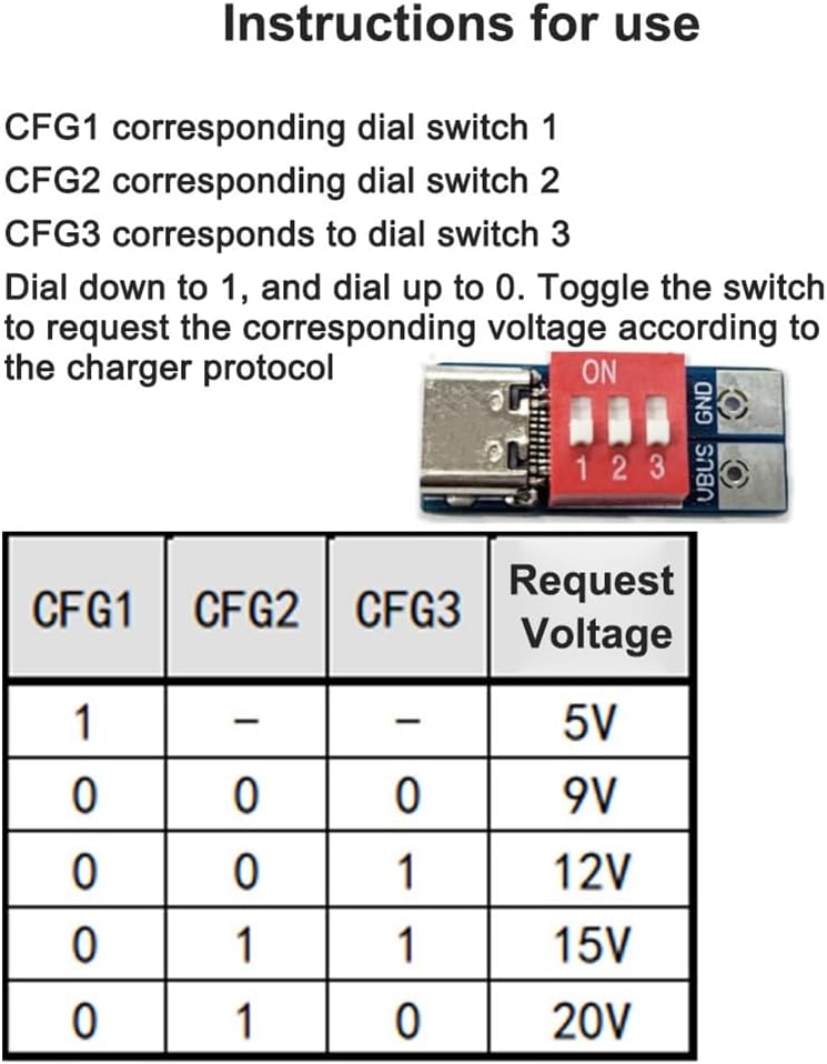 Supporta USB Type-C PD, supporta il rilevamento 'inserimento avanti e indietro e commutazione automatica La tensione può essere regolata tramite l'interruttore DIP e la tensione di uscita massima è di 20 V. Il decoy PD supporta i protocolli Boost Fast Charging come PD3.0/2.0 e BC1.2 con una potenza massima di 10 watt e offre funzionalità come il surriscaldamento e . Supporta protocolli di ricarica rapida come PD3.0/2.0 e BC1.2 Supporta tensioni di ingresso da 4 V a 22 V