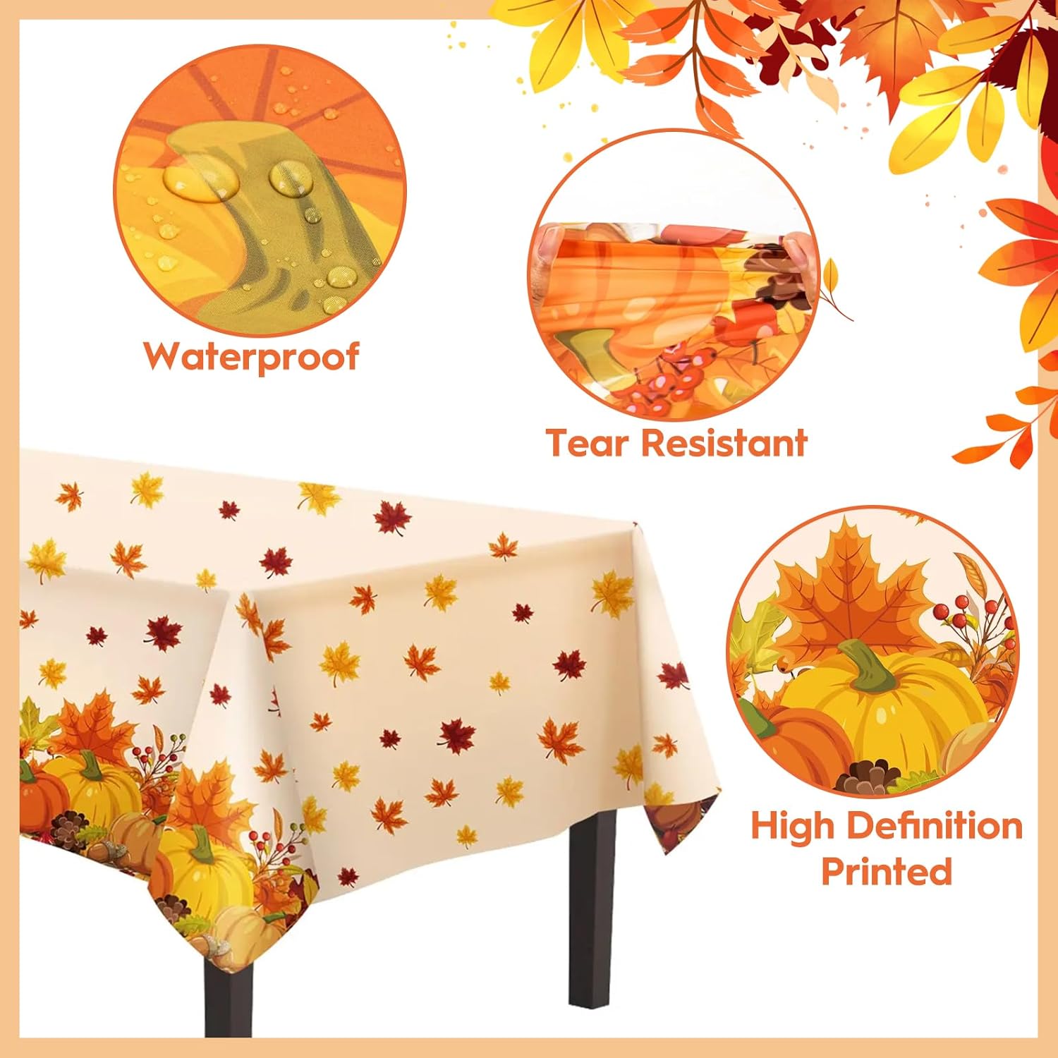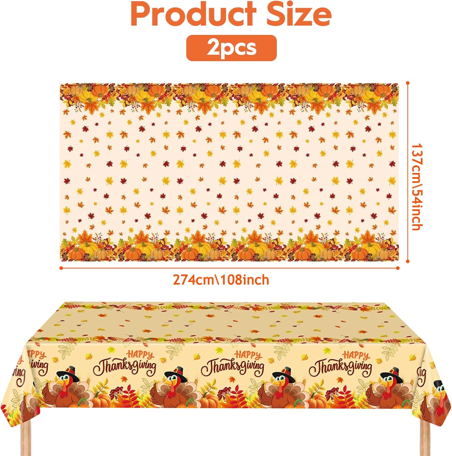 Tovaglia del Ringraziamento: Riceverai due Tovaglia Ringraziamento con fantasie diverse: una con una zucca e foglie d'acero, e l'altra con un tacchino e foglie d'acero. Misurando circa 274 x 137 cm, questeTovaglia usa e Getta per il Ringraziamento sono perfette per intrattenere gli ospiti alla tua festa del Ringraziamento in famiglia Materiale di Alta Qualità: Realizzate in plastica di alta qualità, le nostre Tovaglie per Feste Autunnali sono leggere, impermeabili e resistenti all'olio, il che le rende resistenti e robuste. Proteggono il tavolo da bevande e cibo rovesciati e sono facili da pulire, rendendole adatte a tutti i tipi di feste al chiuso e all'aperto Design del Ringraziamento: Questa Tovaglia del Ringraziamento in Plastica è ricca di elementi autunnali, con l'arancione come colore principale e fantasie classiche come foglie d'acero, zucche e tacchini. È perfetta per feste a tema autunnale o per il Ringraziamento, aggiungendo un tocco di charme alla tua casa e creando un'atmosfera festosa Facile da Pulire: Questa Tovaglia Monouso del Ringraziamento è veloce e facile da pulire, risparmiando tempo ed energie preziose e permettendoti di trascorrere più tempo a goderti la festa con la famiglia e gli amici. Dopo la festa, è sufficiente pulirla con un panno umido per riutilizzarla o smaltirla per una facile pulizia Ampia Applicazione: Questa Tovaglia a Tema Autunno Foglie D'acero è ideale per decorare e mantenere pulita la tavola. È perfetta per feste del Ringraziamento, picnic all'aperto, feste autunnali e cene di tutti i giorni. In alternativa, puoi appendere questa splendida tovaglia a una parete, una porta o in giardino come sfondo decorativo per lasciare un'impressione duratura