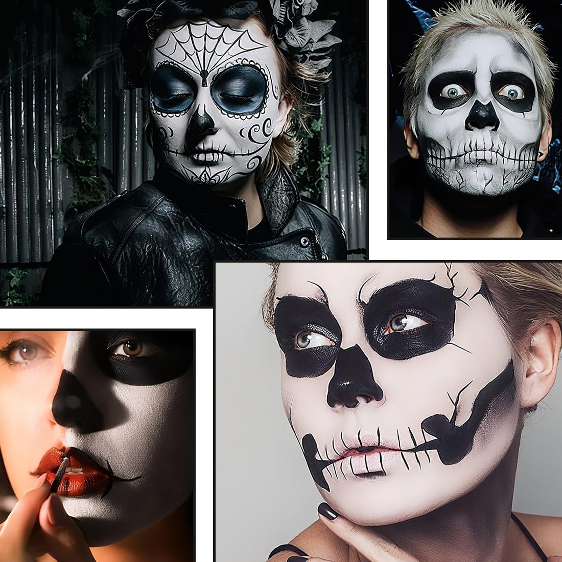 Trucco in bianco e nero di Halloween: il set include una pittura per il viso in bianco e nero, che lo rende un must per le feste di Halloween. In questo modo è facile creare look classici come vampiri, zombi, fantasmi e altro ancora. Ti piace, perfetto per il trucco e il body painting Sicuro/Non tossico: la vernice per il viso di carnevale è realizzata con ingredienti di alta qualità, sicura, non tossica, priva di parabeni, delicata e rispettosa dell'ambiente, offrendoti l'esperienza più sicura e divertente Facile da applicare e rimuovere: il trucco teatrale di Halloween è incredibilmente facile da applicare e rimuovere e può essere facilmente applicato con una spugna, un pennello o le dita. Rimuovi facilmente il colore con gli struccanti professionali Comodo e delicato sulla pelle: questo set per il trucco di Halloween è realizzato con ingredienti di alta qualità e ha una consistenza morbida e delicata che può facilmente coprire l'intero viso. Prima dell'uso, si consiglia di eseguire un test allergologico dietro l'orecchio Molteplici occasioni: la pittura del viso di carnevale per bambini adulti è adatta per una varietà di occasioni, come feste di carnevale, Halloween, spettacoli teatrali, eventi scolastici o dell'asilo, ecc. Crea il look perfetto per le tue feste a tema, cosplay, feste di compleanno, spettacoli teatrali e altro ancora