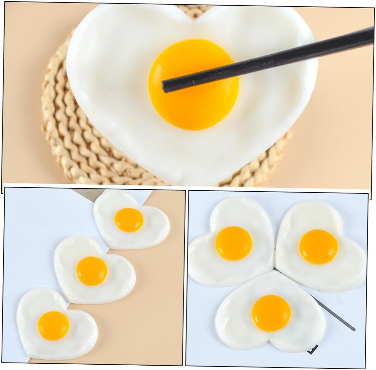 Cibo simulato: con il design a forma di fritto, potrebbe aggiungere un tocco di decorazione, può essere utilizzato come decorazione, cibo simulato realistico Uova artificiali di plastica: dotate di resistenza alla rottura, molto pratiche, con un'eccellente consistenza, finte decorazioni a forma di fritto Uova gourmet simulate: l'aspetto realistico ' fritto aggiungerà uno stile vivido e naturale alla tua casa, può essere utilizzato come oggetto di scena per foto, decorativo di fritto Finto fritto di scena: questo fritto è dotato di colori vivaci e forma realistica, che lo rendono molto attraente e , molto decorativo, di cibo finto Fritto - adatto per decorazioni da cucina, decorazioni per ristoranti, oggetti di scena per la fotografia, cucina, pubblicità, simulazione di fritto