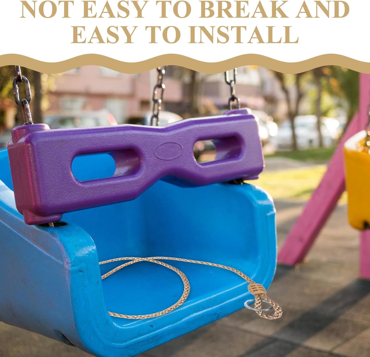 regolabile: progettato per adattarsi a diverse altezze, garantendo un'esperienza di oscillazione confortevole per utenti di tutte le età Ottima qualità: realizzato con materiali resistenti in PP, PE e metallo, che garantiscono prestazioni durature e una ridotta frequenza di sostituzione di oscillazione migliorata: il design della corda estesa consente un'installazione flessibile in spazi più ampi, perfetto per l'uso esterno o Adatto al fai da te: il semplice processo di installazione consente ai genitori di installare l'altalena in modo rapido e comodo, creando momenti di gioia per i bambini Applicazione versatile: compatibile con un'ampia di altalene, il che lo rende una scelta ideale per l'aggiornamento di parchi giochi o