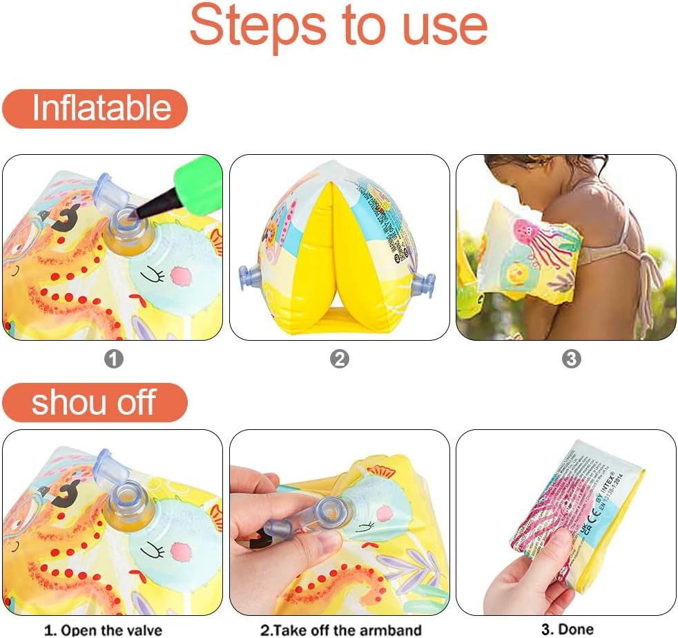 Materiale: realizzato in PVC ispessito con grande capacità anti-compressione, l'anello da nuoto è ecologico, durevole e raliabile da usare, garantendo la sicurezza dei bambini in piscina Grande design di sicurezza: le fasce gonfiabili per il nuoto sono disponibili in colori vivaci con airbag a doppia tenuta per evitare perdite d'aria che forniscono una doppia sicurezza Come indossare - 1. Gonfiare gli airbag al 70% pieno; 2. Metti il braccio del tuo bambino e regola la posizione;3. Continuare a gonfiare fino al 90% pieno; 4. Fatto. Non riempire completamente al 100% Portatile: occupa pochissimo spazio. Facile da portare in piscina, parco acquatico o spiaggia. Prenditi qualche minuto per gonfiare e sgonfiare Un regalo estivo perfetto per i bambini: i bambini possono muoversi liberamente senza restrizioni, la migliore posizione in acqua migliora la sicurezza di bambini e bambini negli sport acquatici. Costruisce la fiducia dei bambini e consente lo sviluppo delle abilità di nuoto iniziali