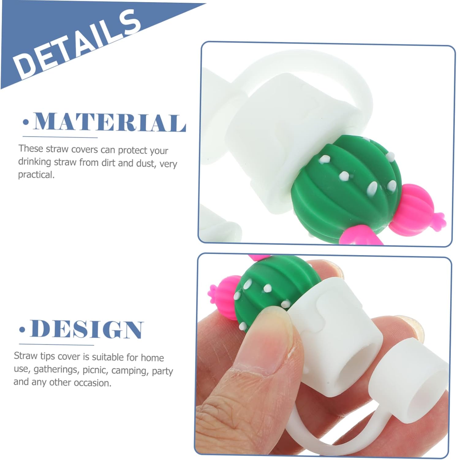 Ciondoli in paglia: realizzati in materiale siliconico e riutilizzabili, il cappuccio di copertura in paglia protegge la cannuccia in modo efficace, cappuccio in paglia Punte di paglia: il coperchio della punta di paglia con un design colori vivaci, molto pratico da usare, può offrirti una buona esperienza di utilizzo, tappi di paglia riutilizzabili Tappi di paglia in silicone: la copertura delle punte di paglia è adatta per uso domestico, riunioni, picnic, campeggio, feste e qualsiasi occasione, coperture protettive per le punte di paglia Simpatico copricapo in paglia: di piccole dimensioni, facile da trasportare in borsa e adatto per feste, ufficio, viaggi, campeggio, ecc., tappi per cannucce in silicone Coperture per cannucce - e questi tappi per cannucce a forma di cactus possono aiutarti a distinguere le tue cannucce da quelle degli altri, tappi per cannucce in silicone